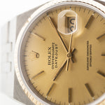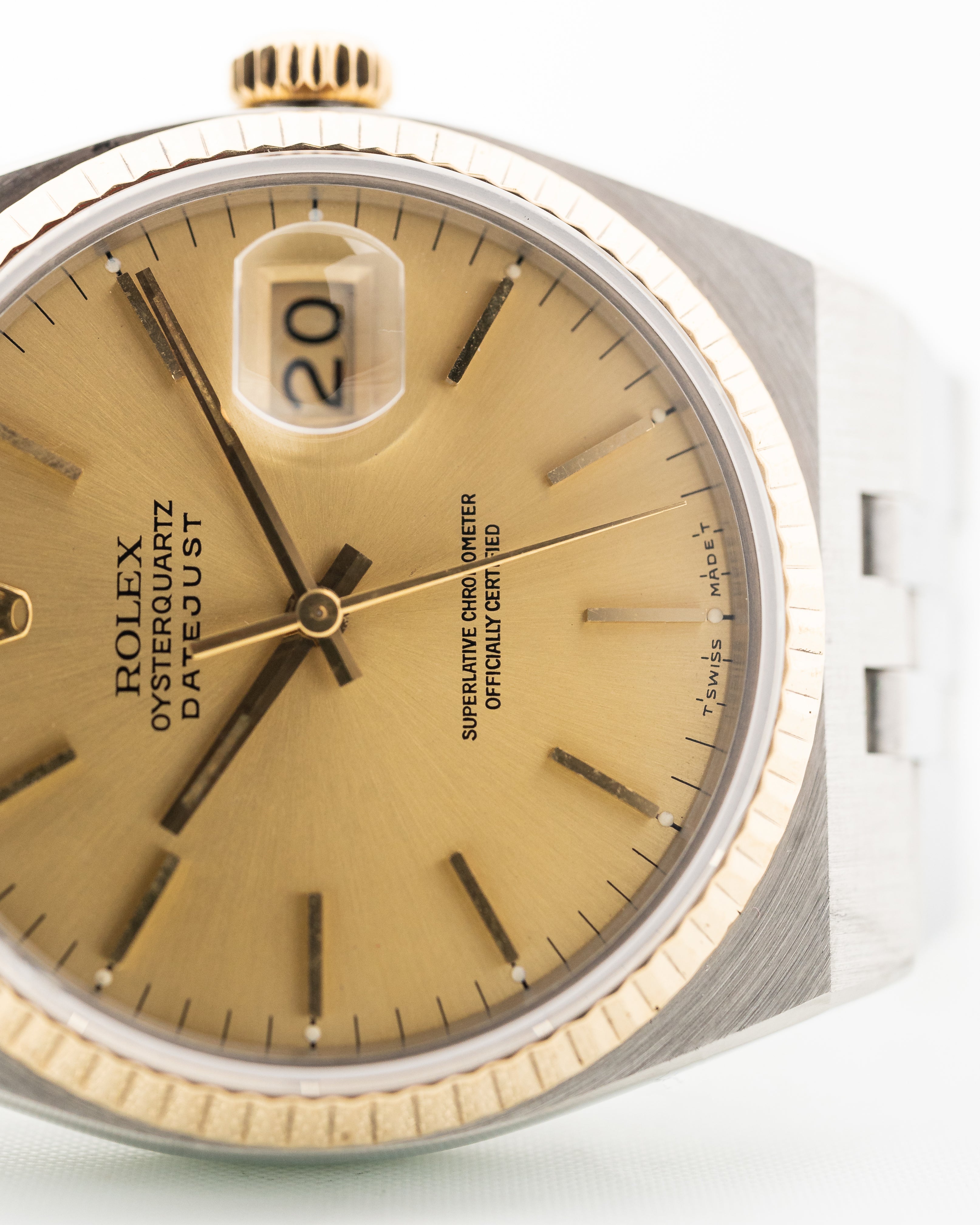 The condition of the case is the most important thing to look at on Oysterquartz models, they are more rare and it's near impossible to find them in the condition like our example.