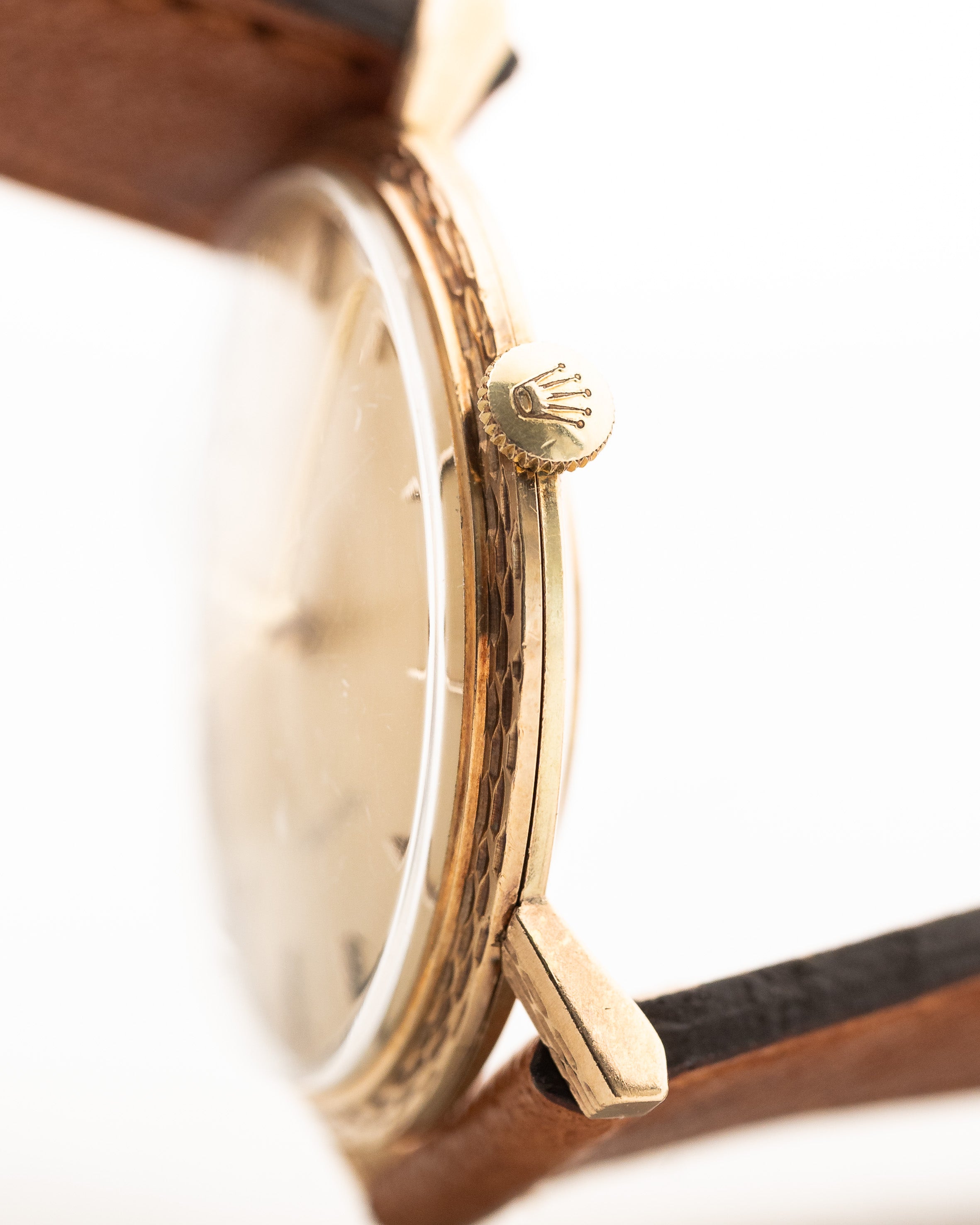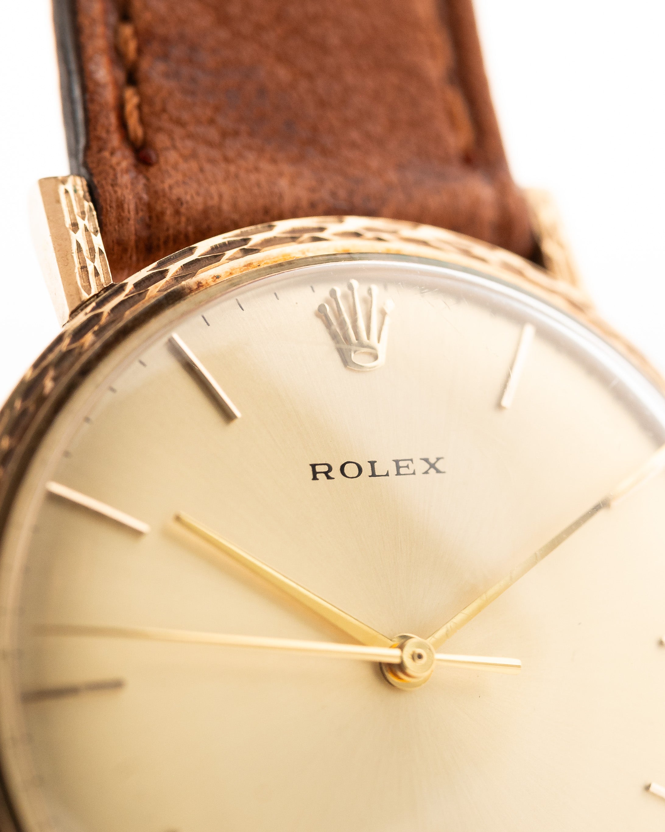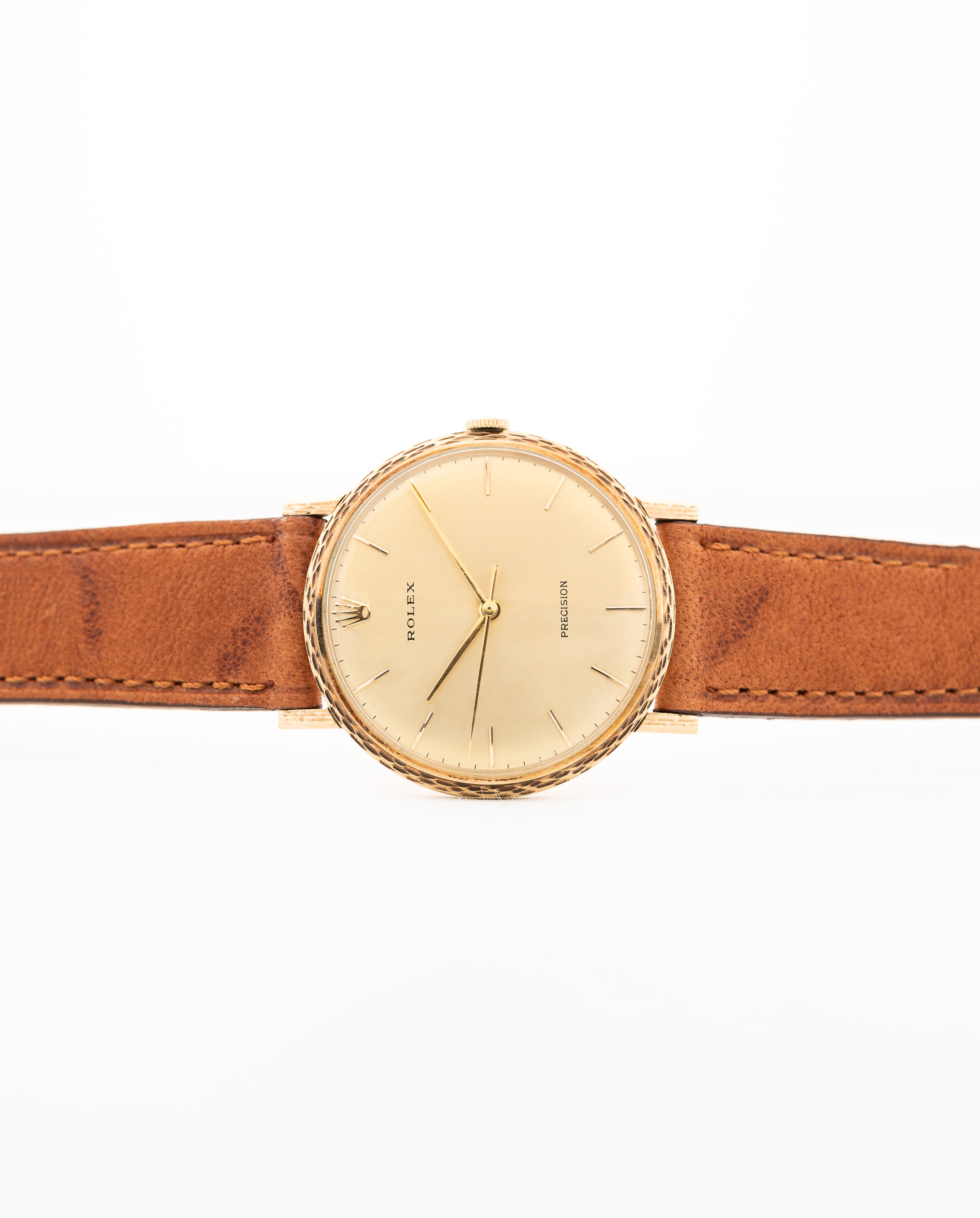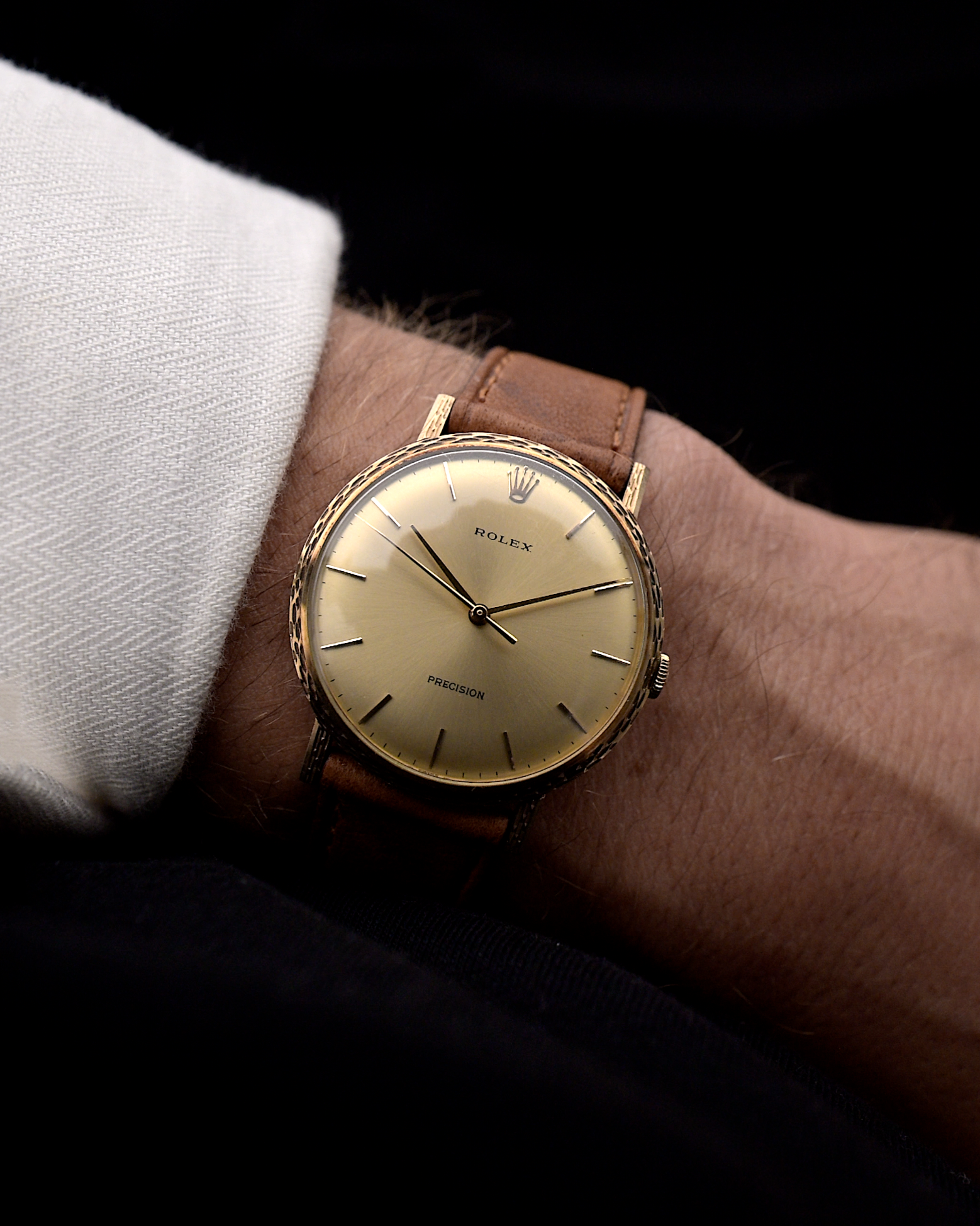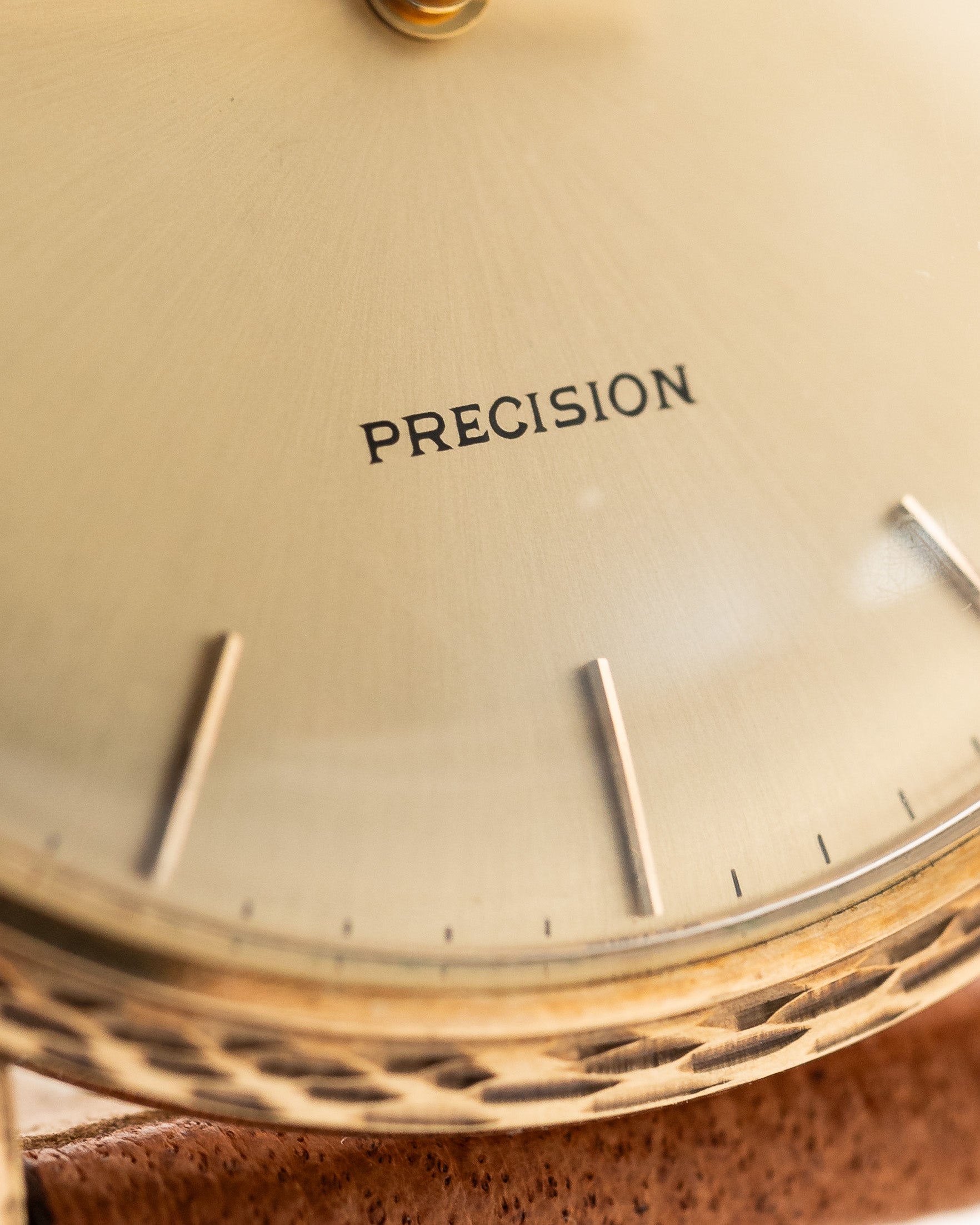 Among vintage Rolex, the Precision line remains under-appreciated. Our Precision comes in great condition with a good-preserved case and dial, especially with this nicely stick hour markers and hands. The punched bezel is leveling up the overall appearance even more.