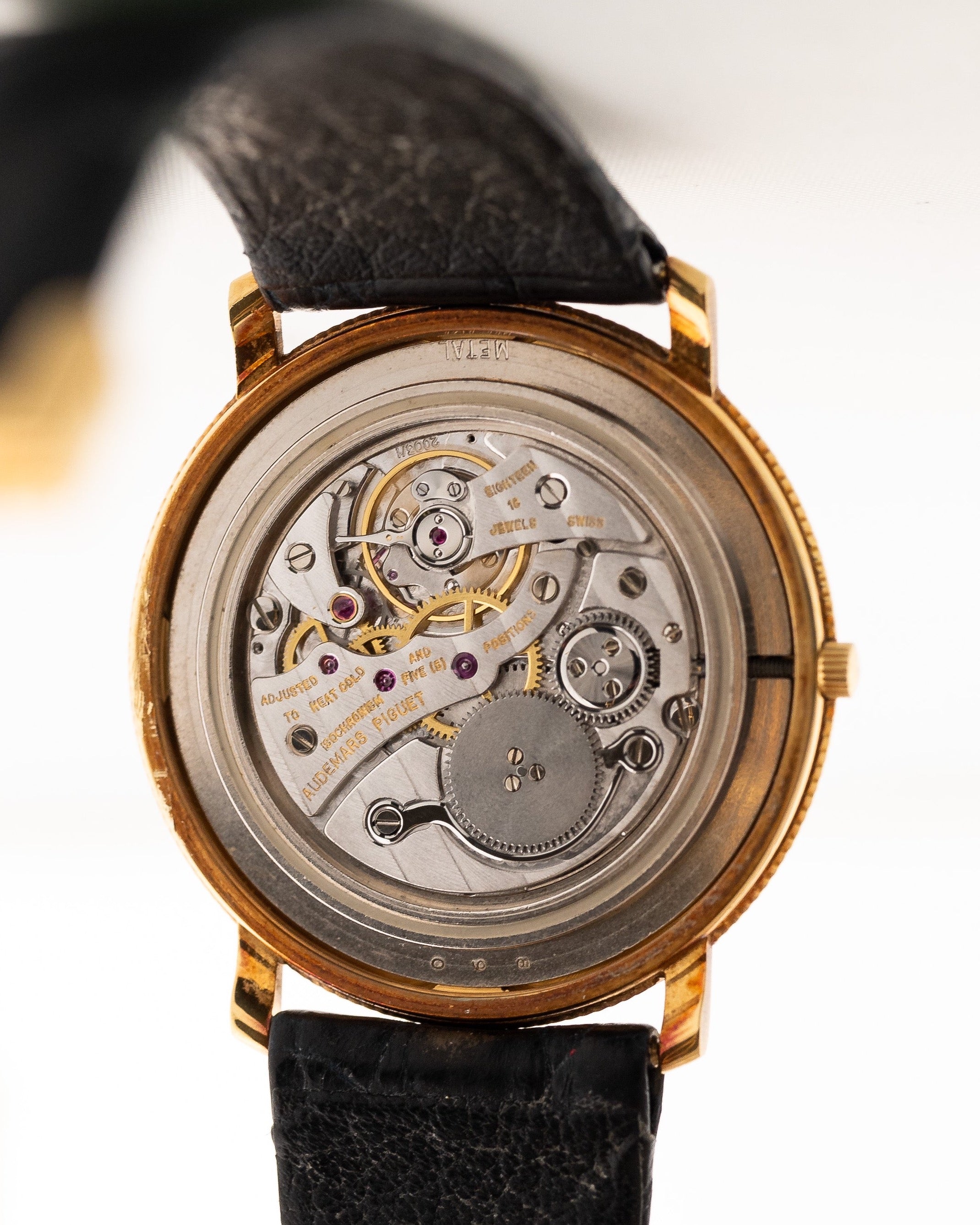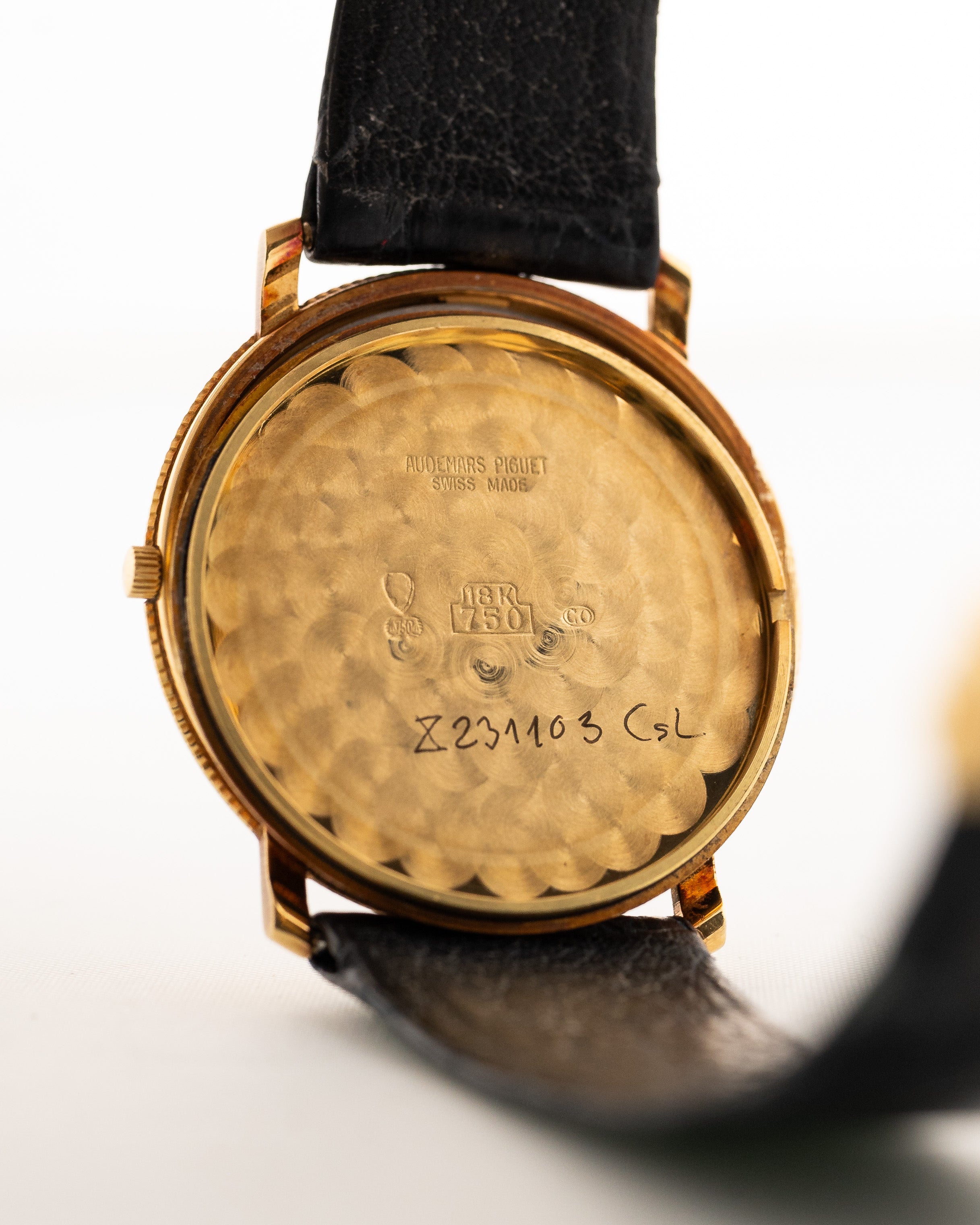 • original Audemars Piguet leather strap and 18k yellow gold AP buckle