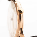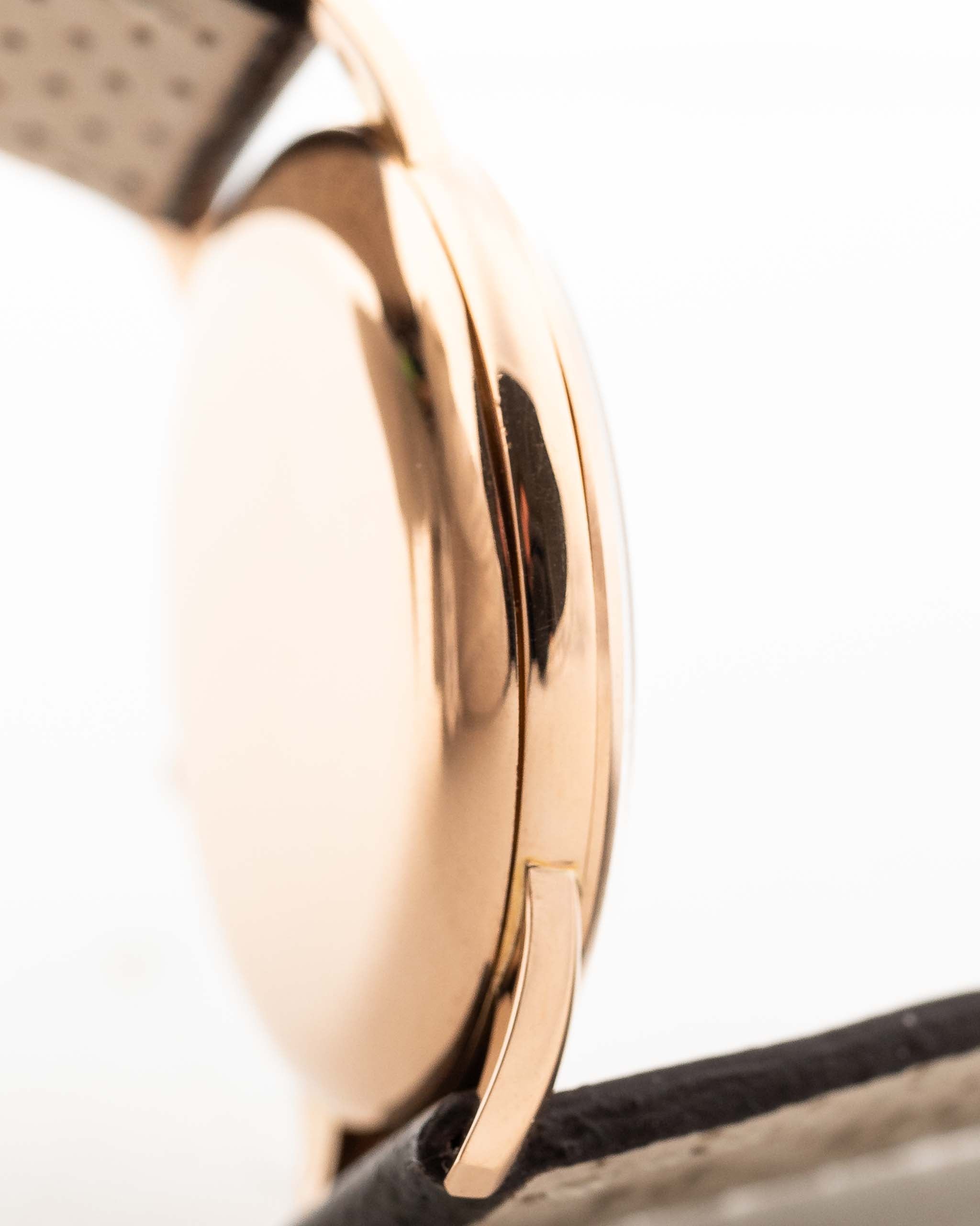 • 3- body 18k rose gold case with snap-on case back from case maker Charles Dubois & Cie