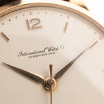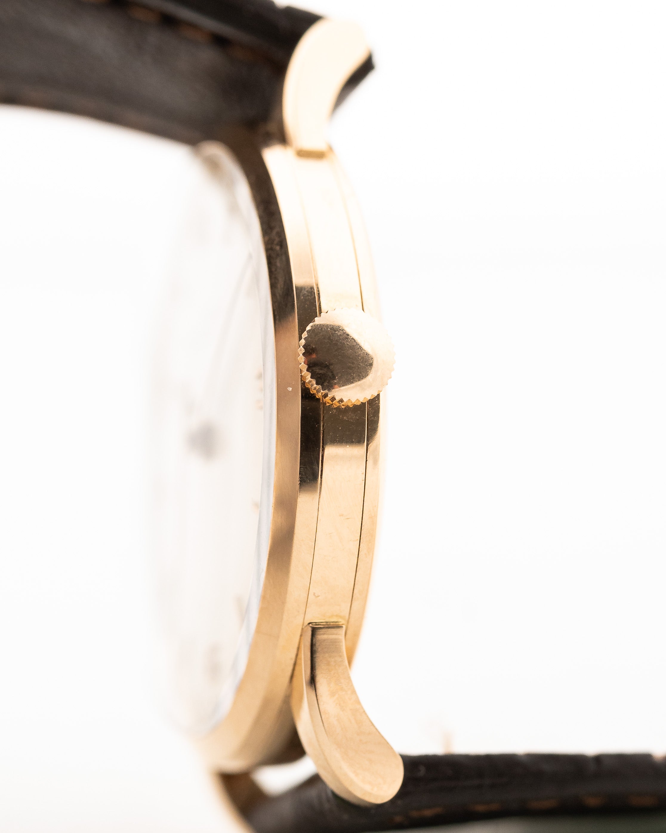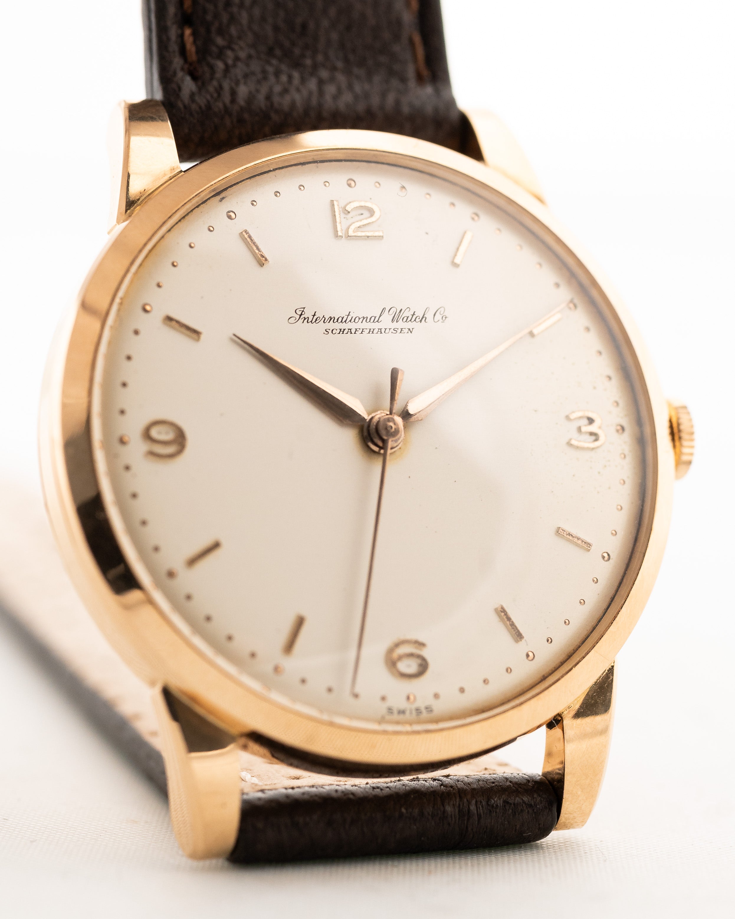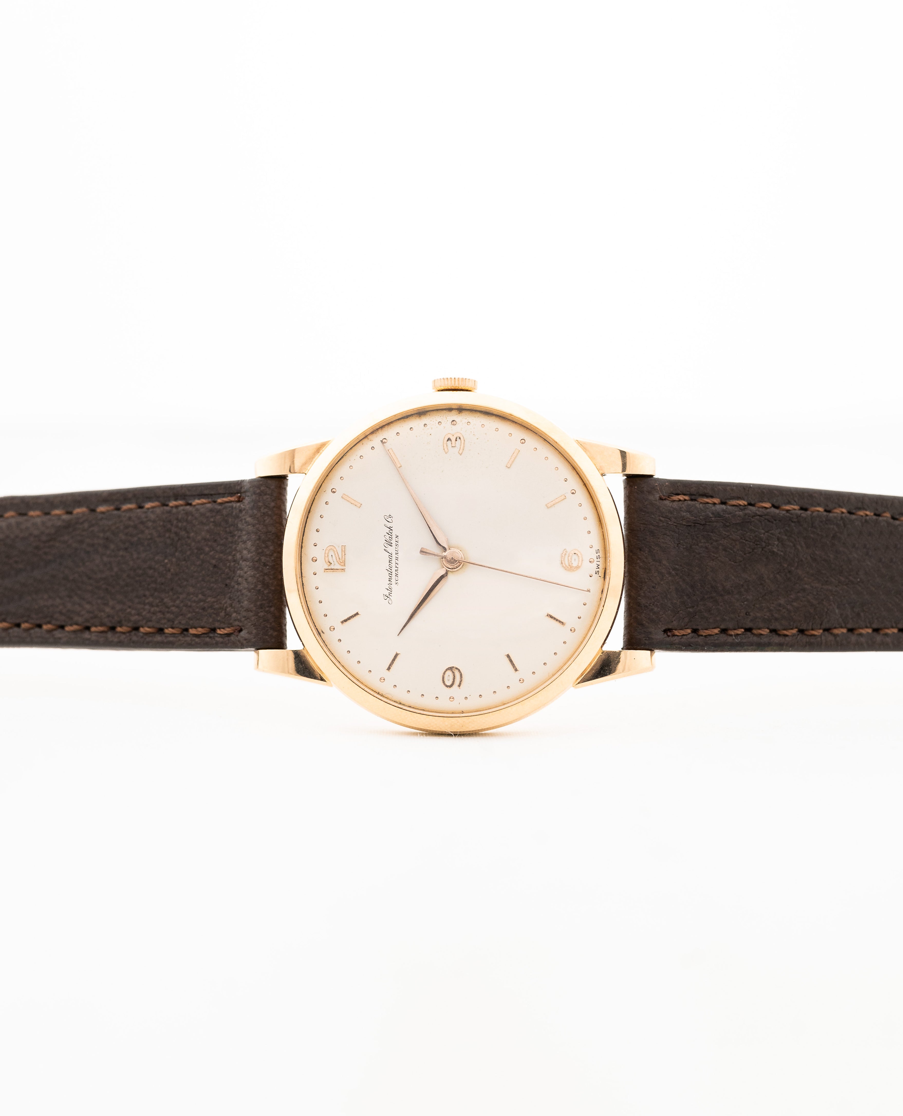 IWC has produced a very wide variety of wristwatches from an early time ranging from dress watches to aviation watches. This example, in 18k rose gold with it's white/silver dial would remain a constant in anyone's collections, especially as it comes with beautiful short down turned lugs.
