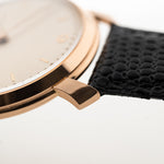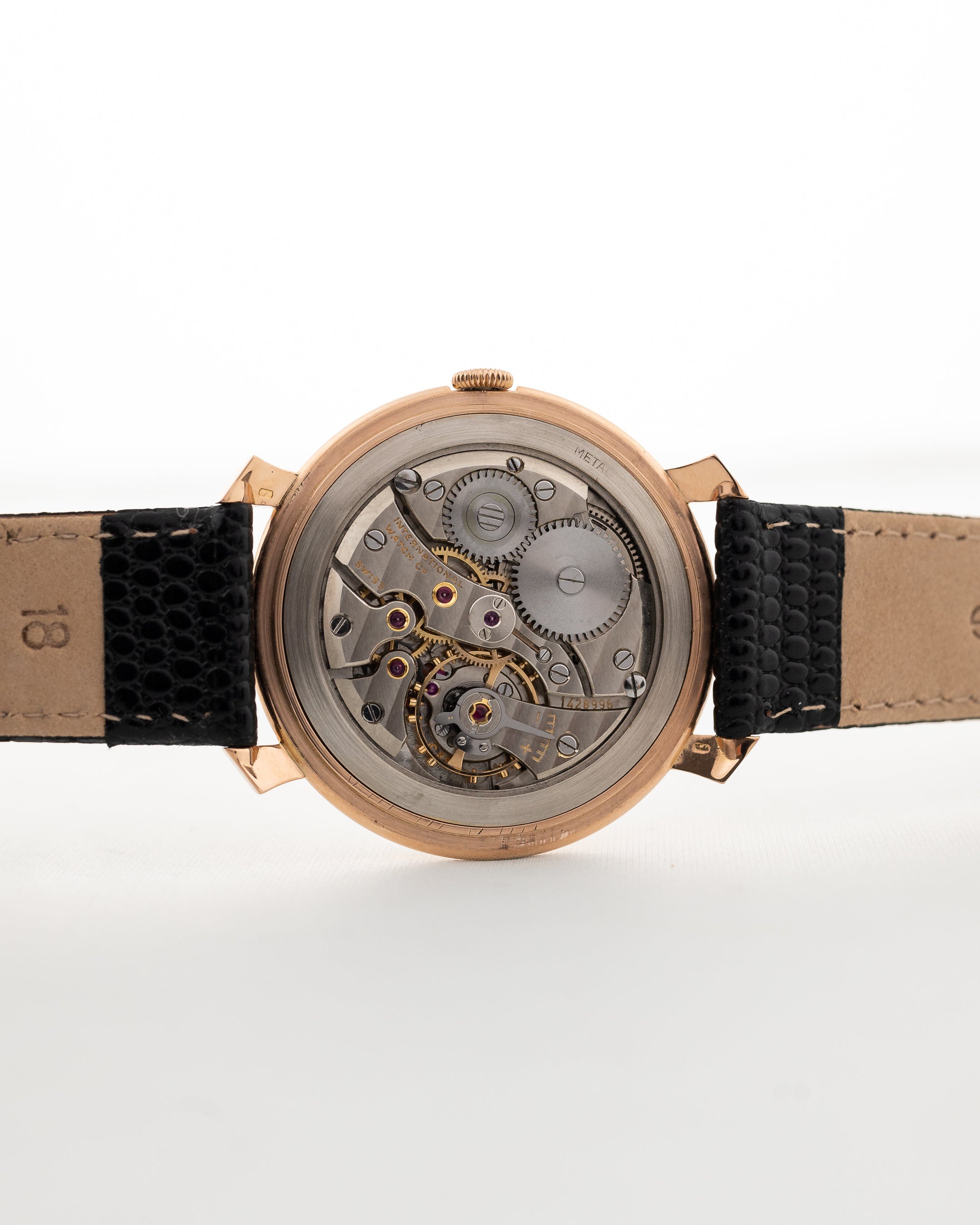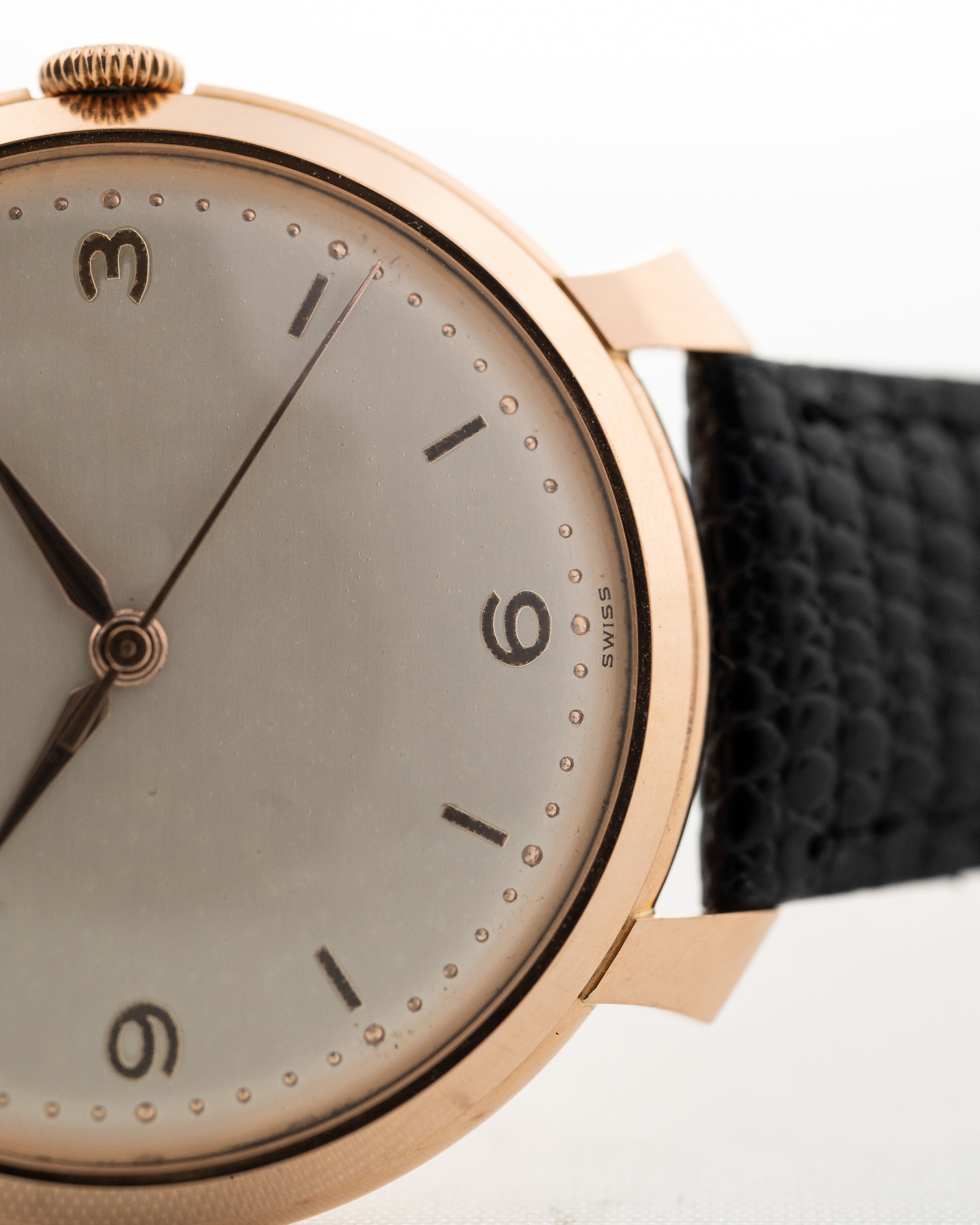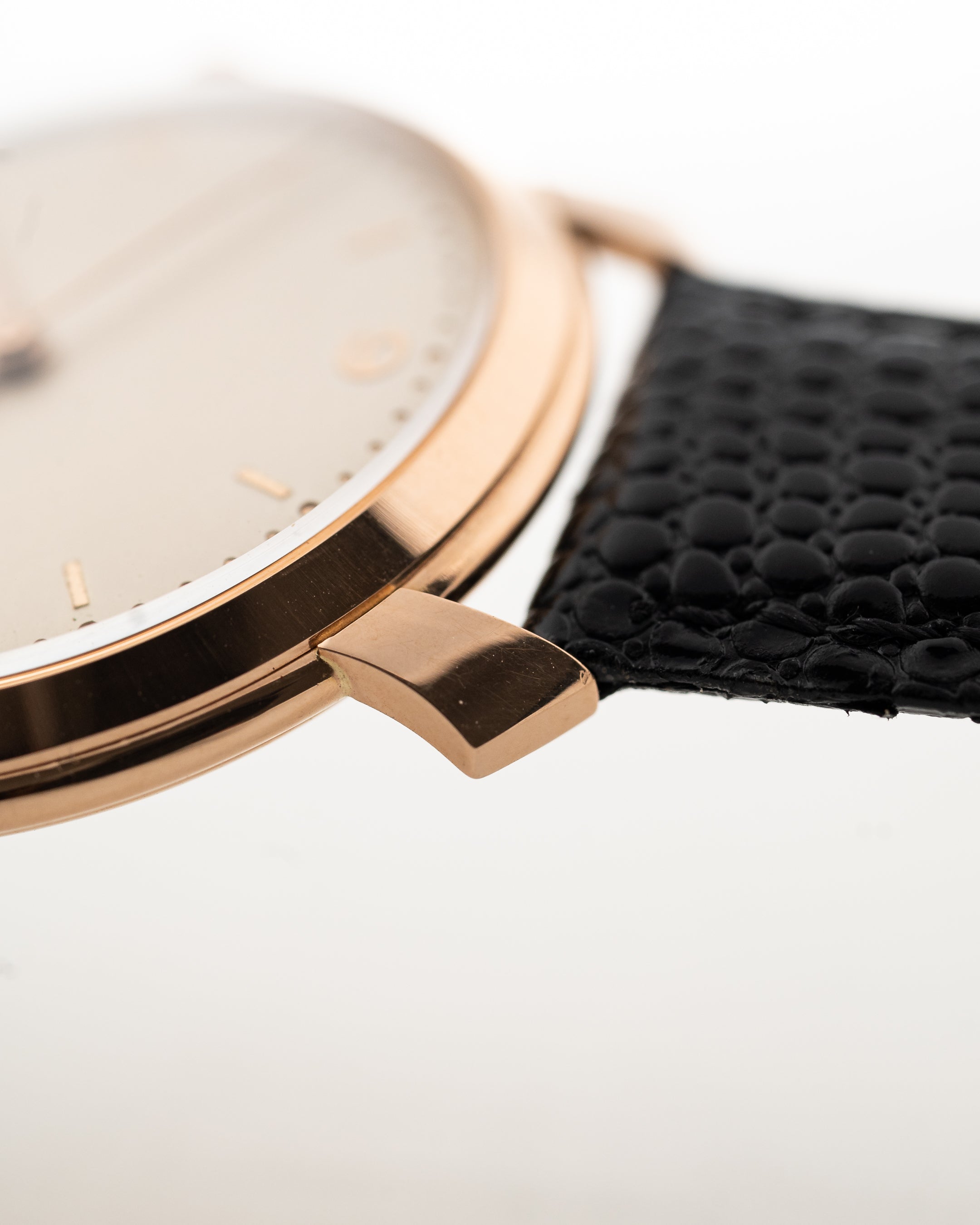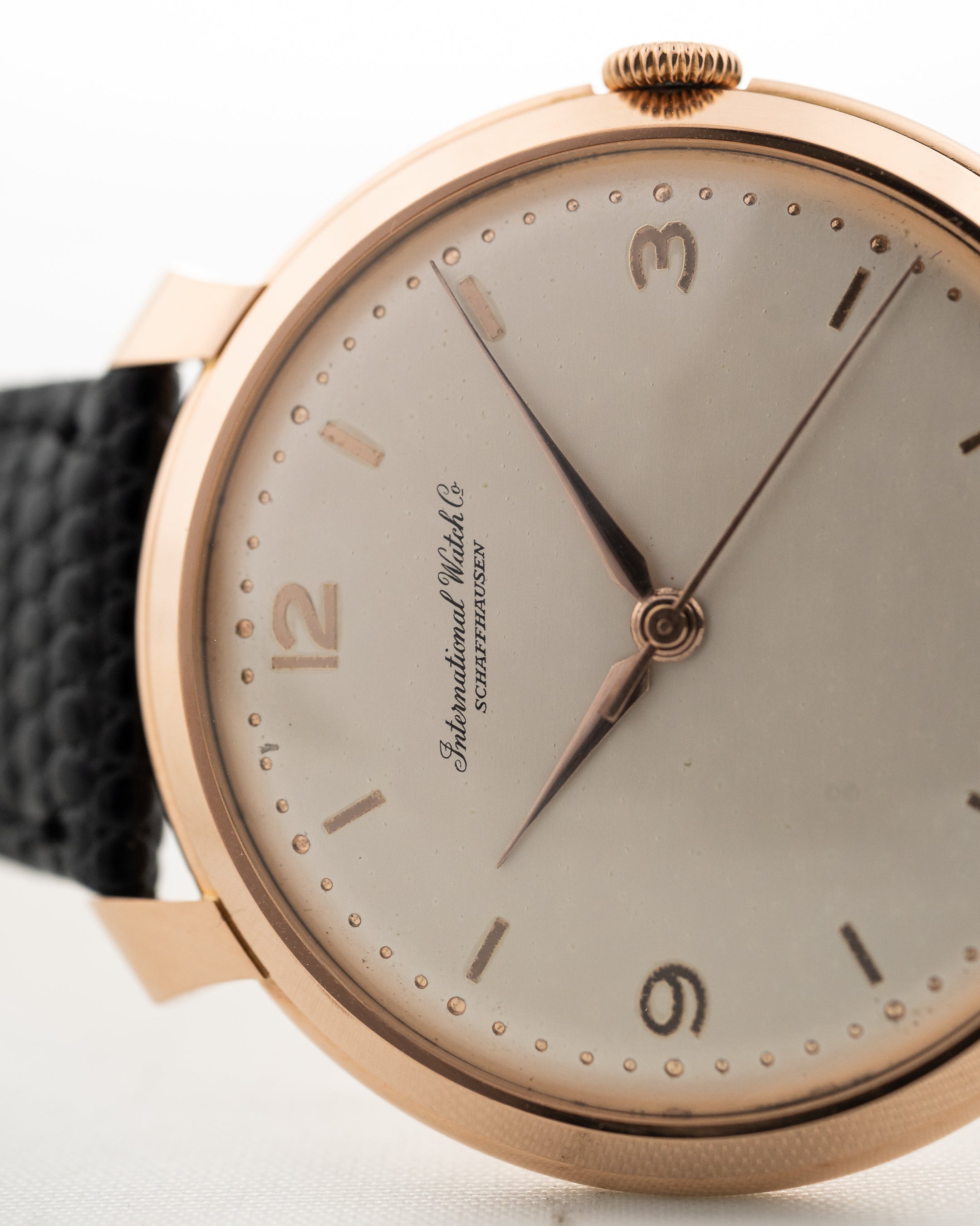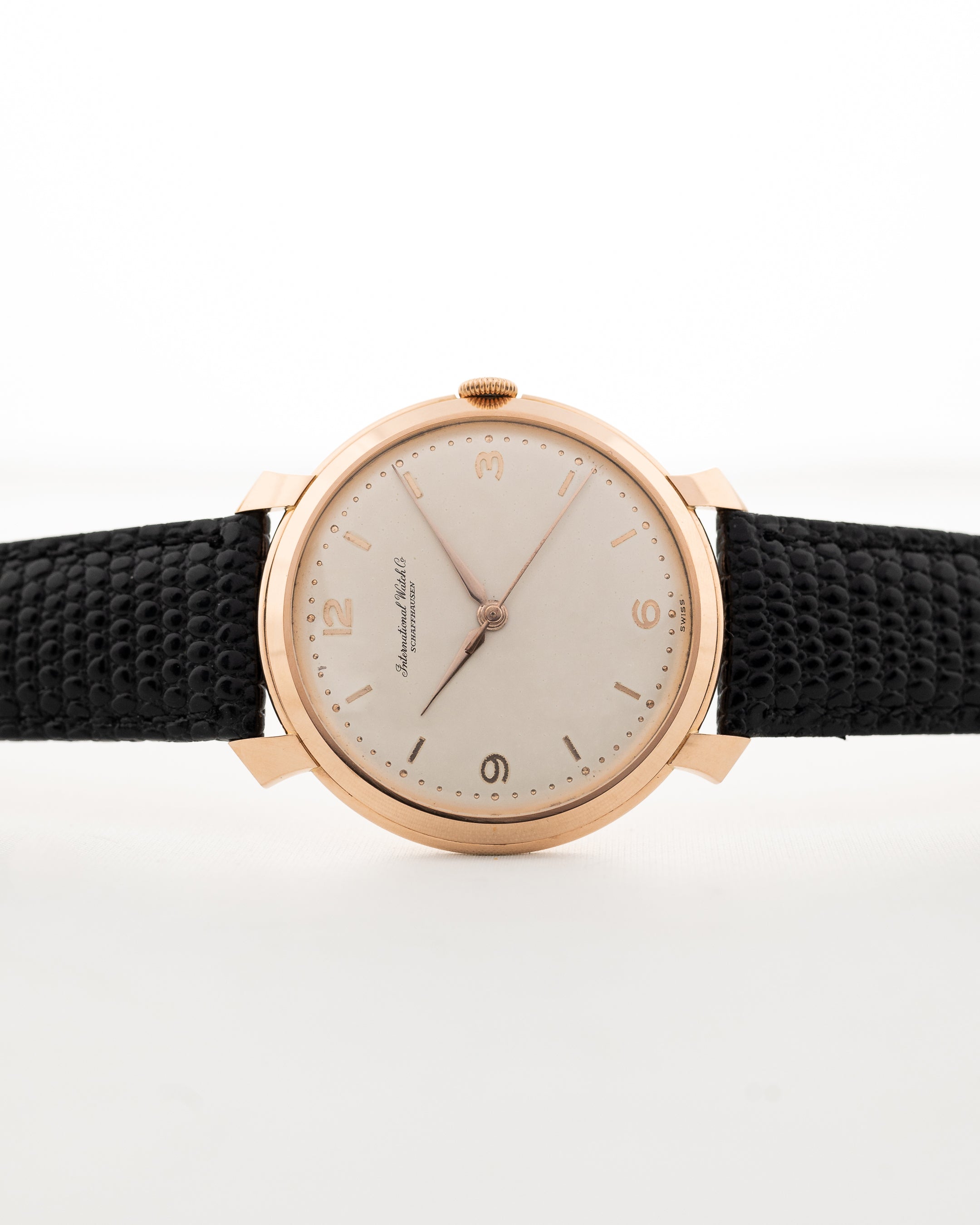 IWC has produced a very wide variety of wristwatches from an early time ranging from dress watches to aviation watches. This example, in 18k rose gold with shark fin lugs would remain a constant in anyone's collections, especially as it comes in NOS condition like our example.