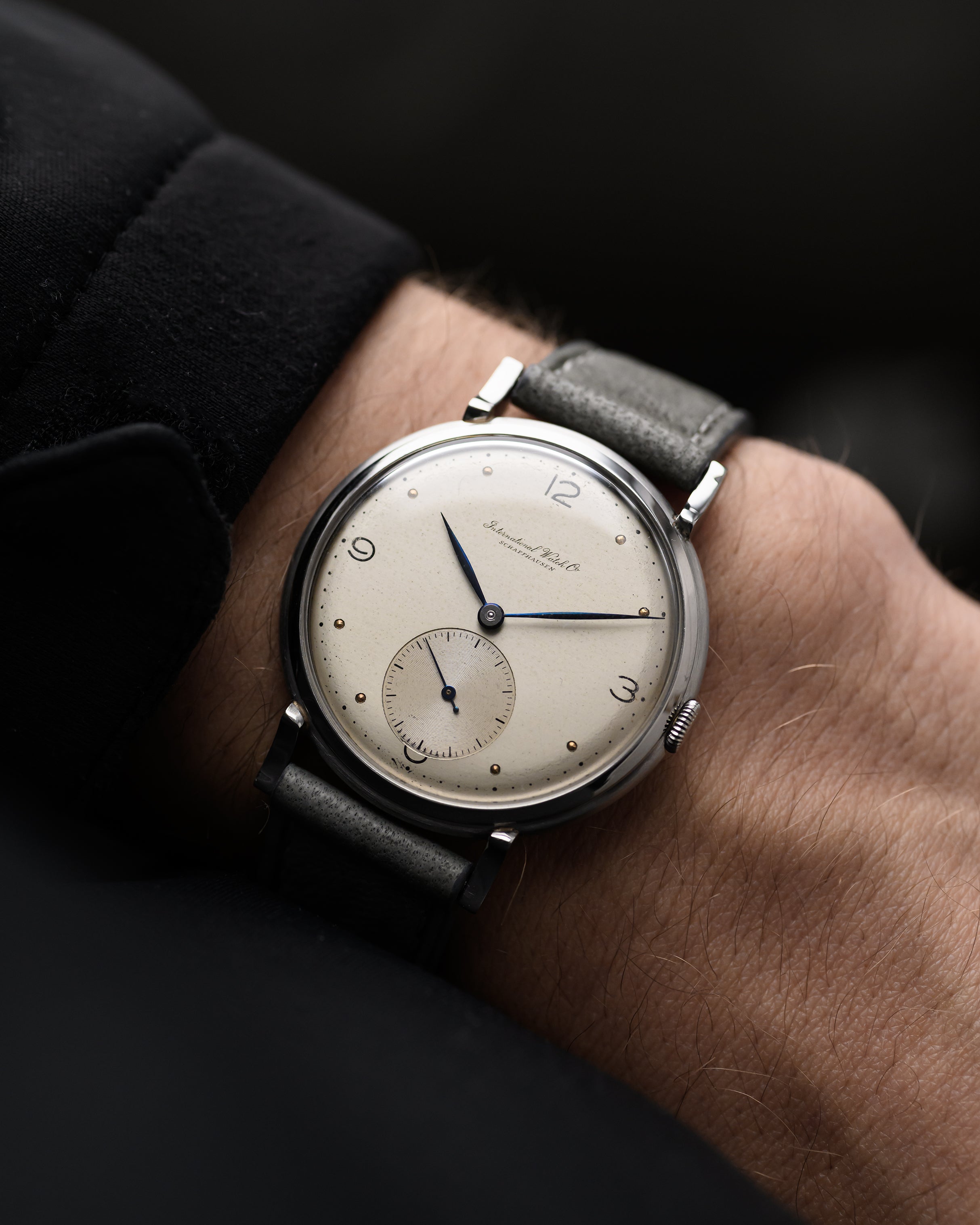 This stunning Iwc dress watch features a classic sub seconds design, blued leaf hands and a fantastic Art Deco dial layout in oversize 36,5mm and is fitted with the much celebrated caliber 88 movement.  IWC has long been synonymous with seeking beauty in simplicity, and this example exemplifies that ethos.