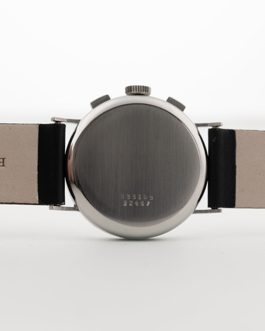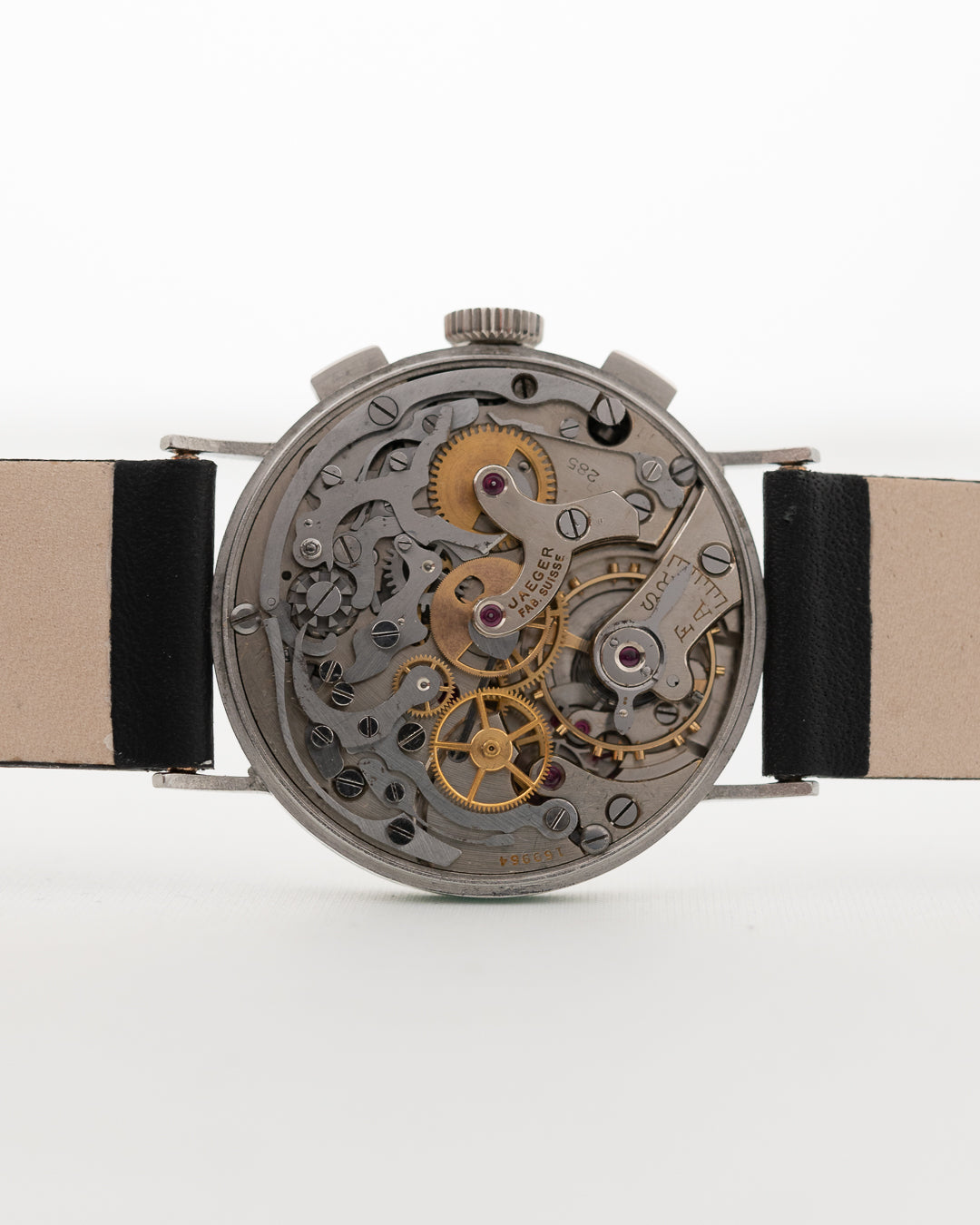 It was produced after Jaeger and LeCoultre had entered into a formal partnership, but while nearly all Jaeger-LeCoultre chronographs were still marketed with the Jaeger name signed dial and on the movement.