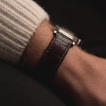 Fitted with a sleek brown leather strap and stainless steel buckle, this watch is an honest and timeless piece of horological history — as stylish today as it was in 1939.