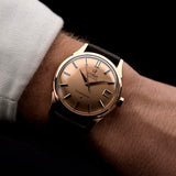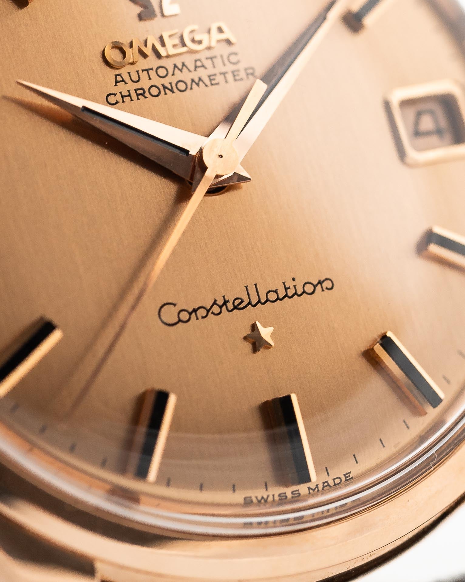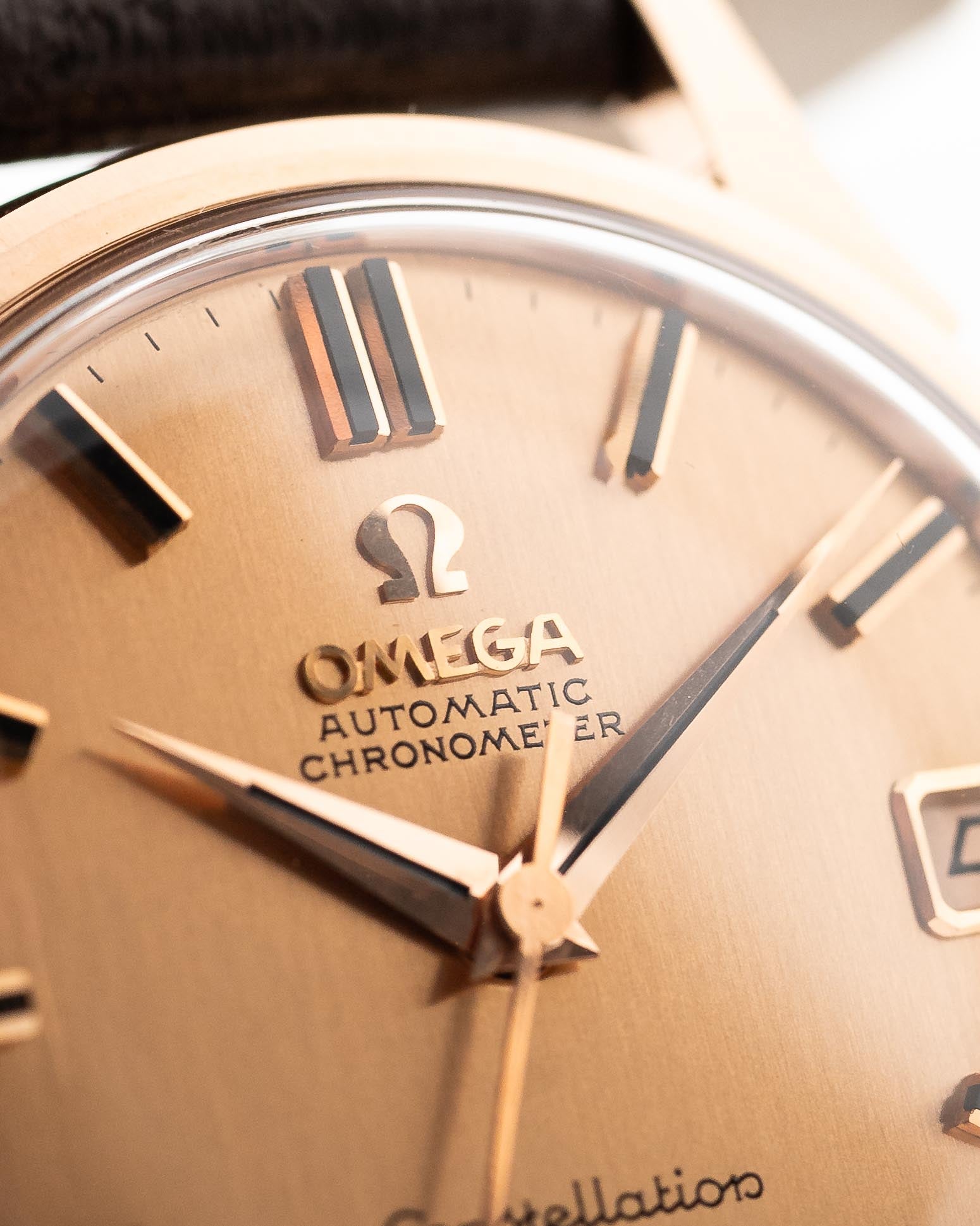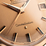 Well-proportioned, simple, and classic, this Constellation features a screw-down case back, Omega automatic chronometer Caliber 561 and great slightly down turned lugs.