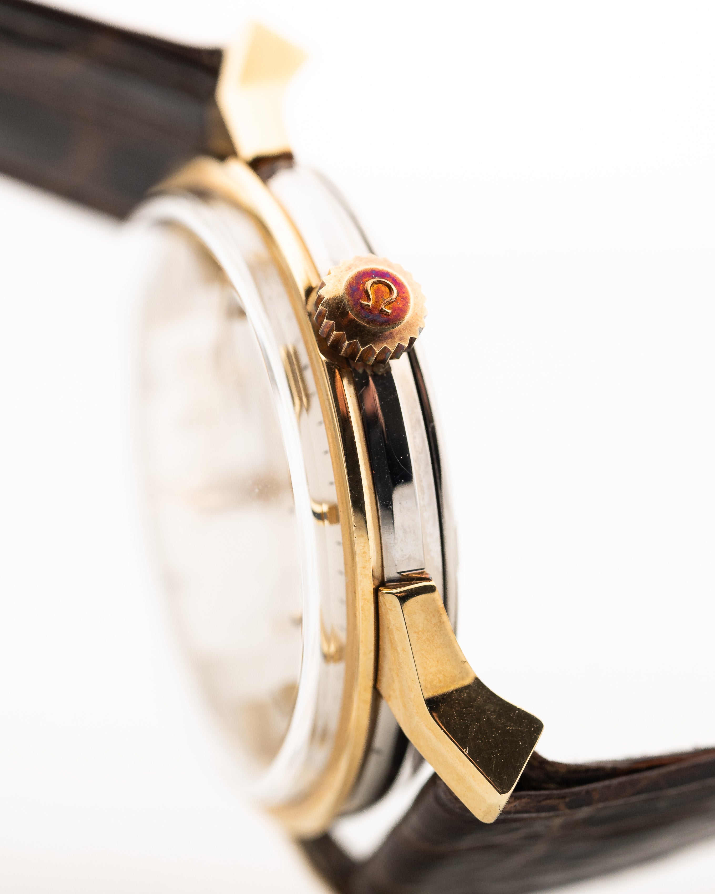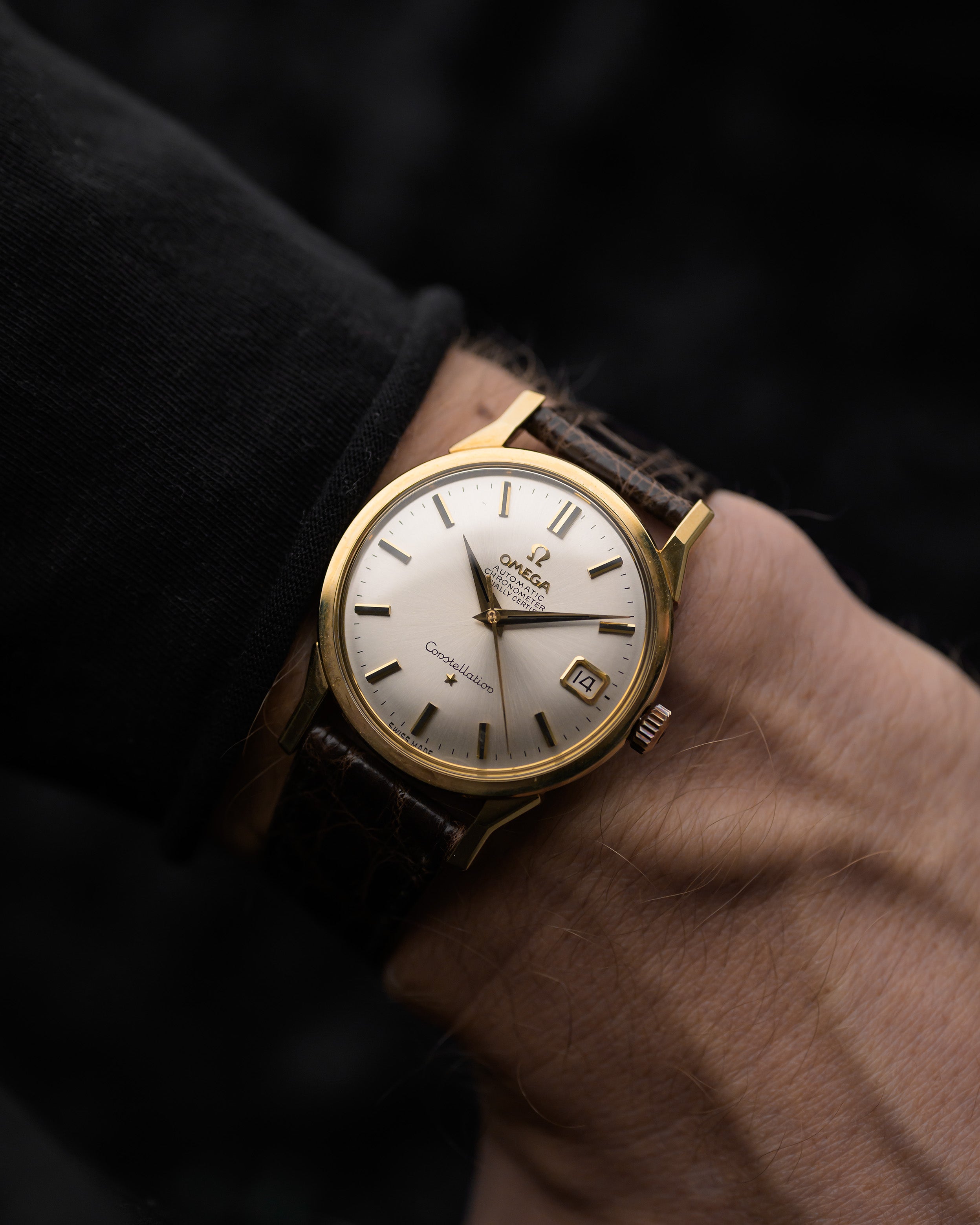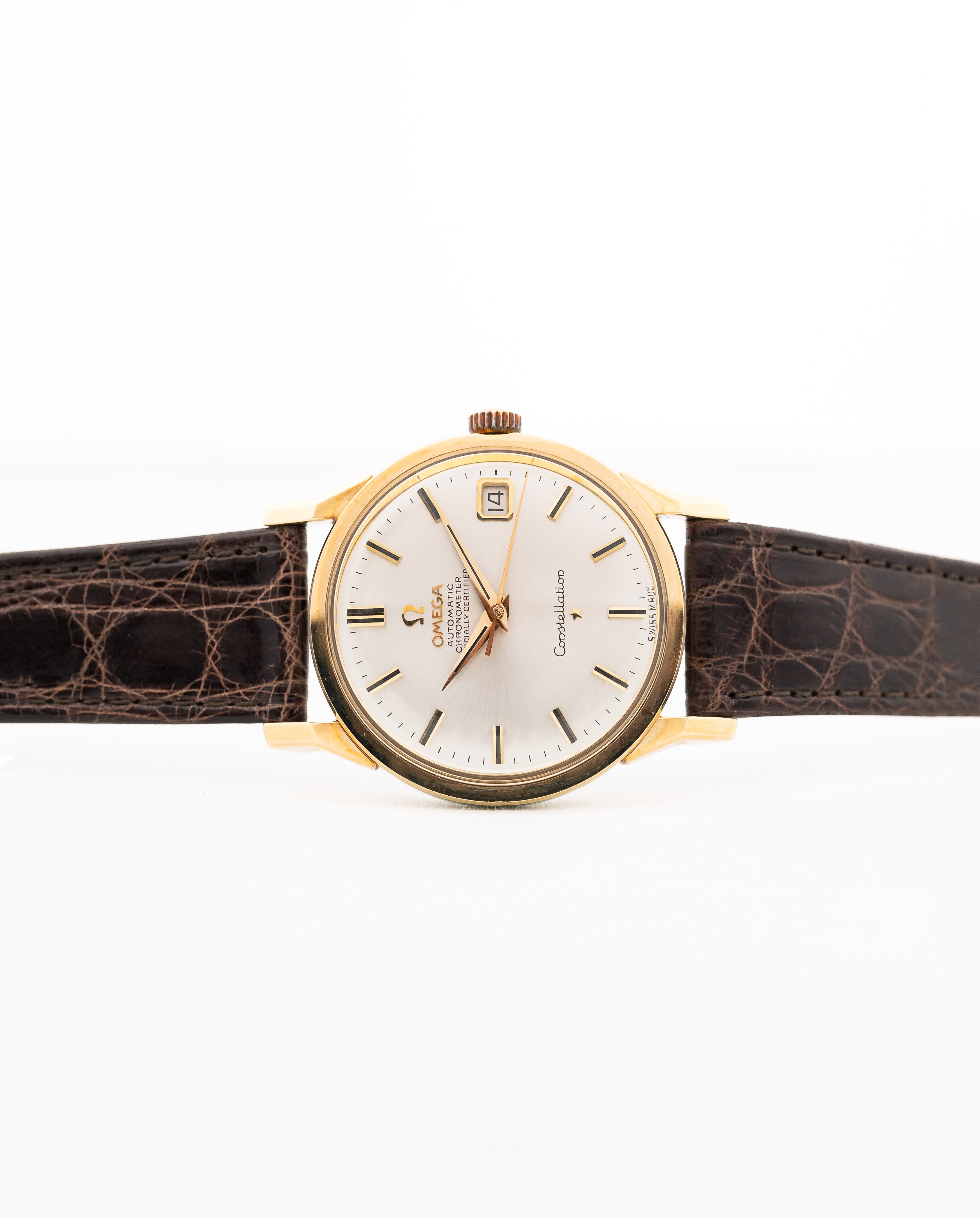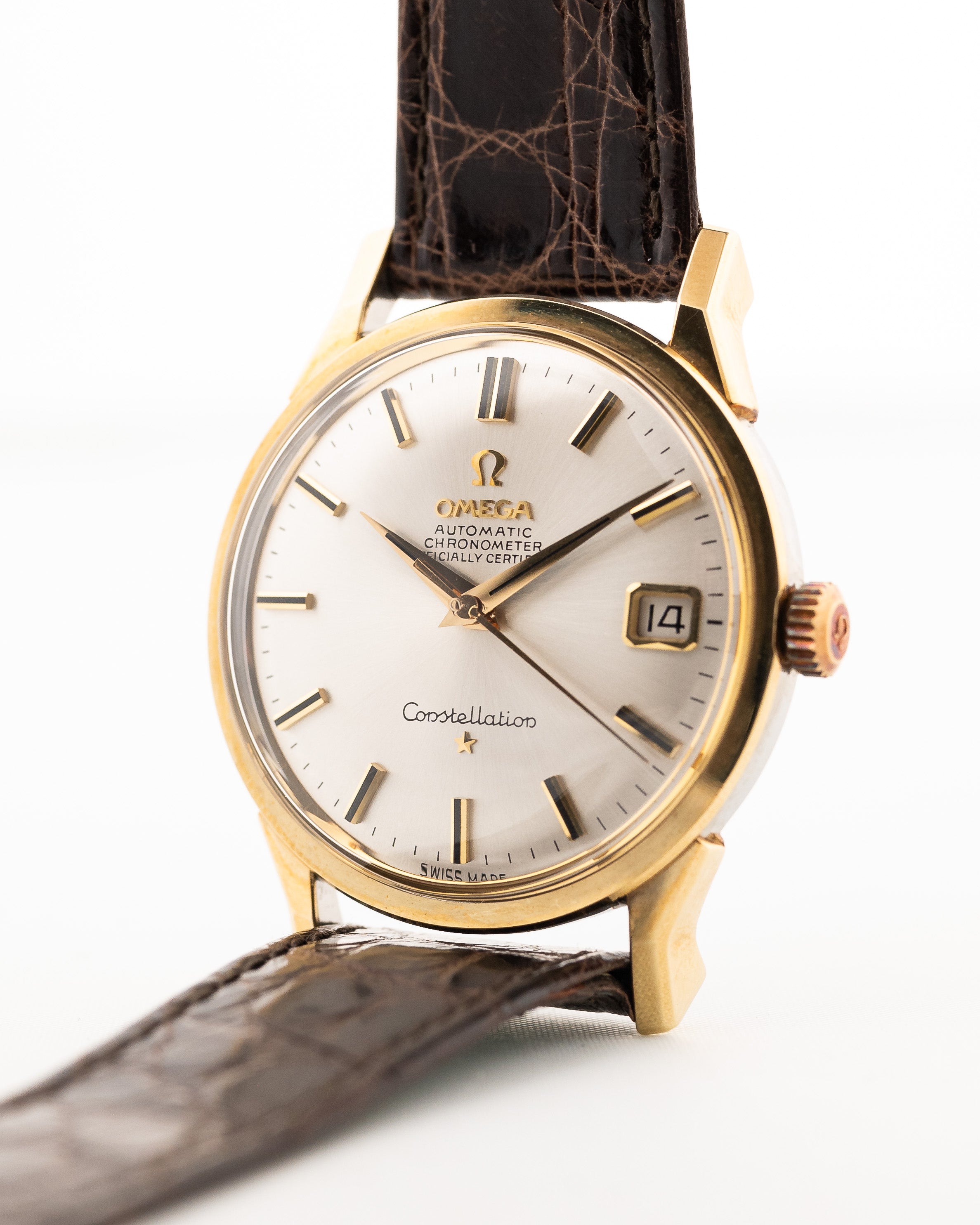 Well-proportioned, simple, and classic, this Constellation features a screw-down case back, Omega automatic chronometer Caliber 562 and great slightly down turned lugs in nearly unworn condition.