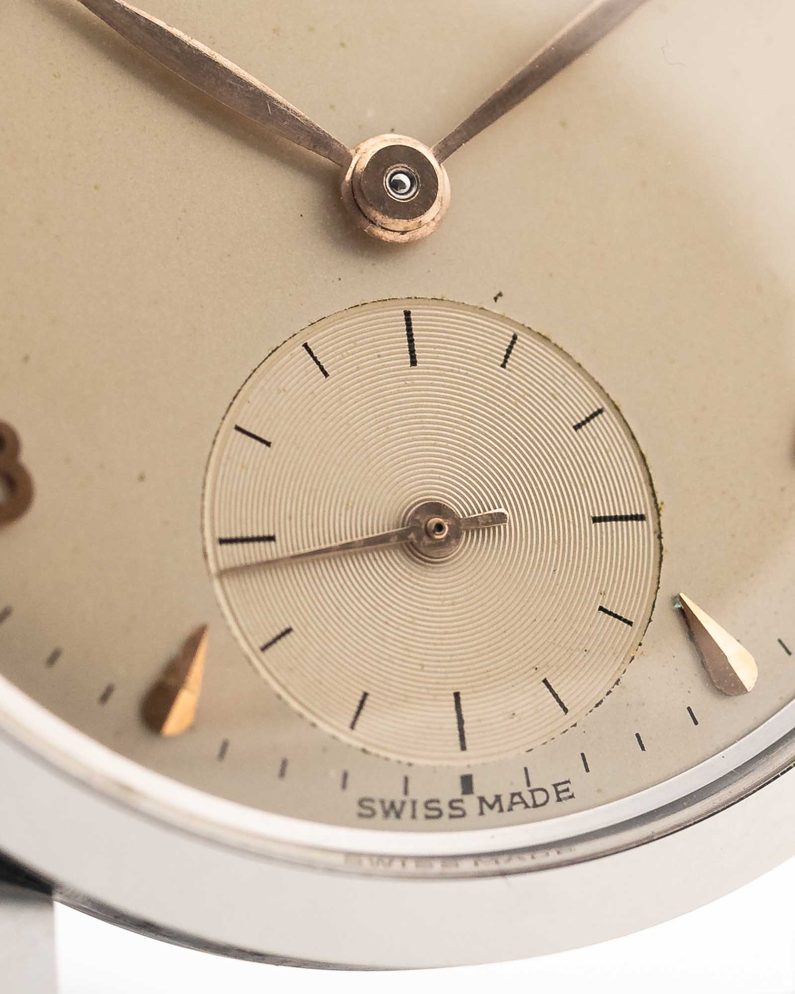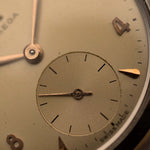 Housed in a sharp stainless steel case, this watch dates to 1952 and measures a perfectly understated 35 mm, making it an ideal vintage dress companion. The proportions are classic, the design timeless, and the overall presence effortlessly elegant.