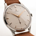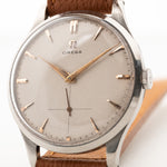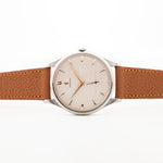 This 1954 Omega has everything you want in a dress watch - an oversized 37,5 mm case, a great honeycomb dial with subsidiary second and beautiful rose gold hands and very elegant overlaid rose gold indexes.