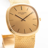 • original Patek Philippe (PPC) integrated 18k yellow gold bracelet fitting up to 20 cm wrist size (adjustable by around 1 cm at the clasp) / 2 mm thick
