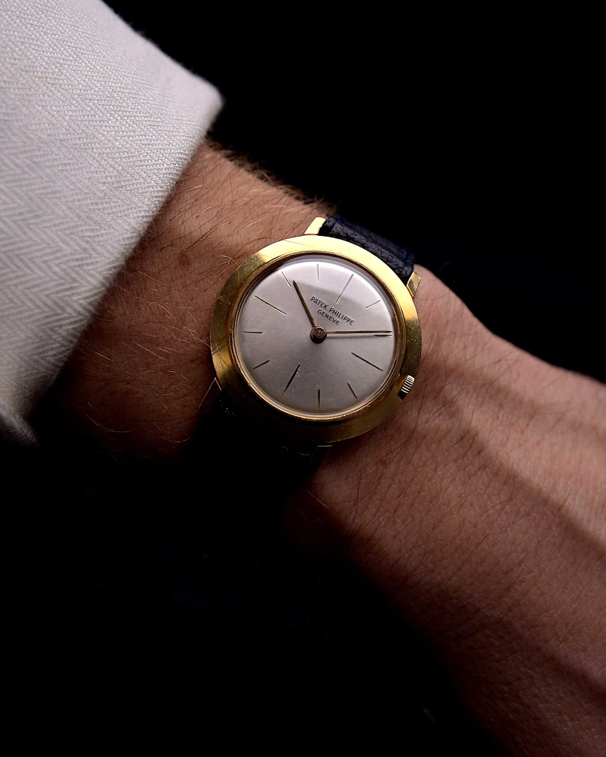 The wide clean bezel is the distinguishing feature of the ref. 2595 and really makes an outsized impact on the wrist presence of the watch especially with this clean silver colored sunburst dial, a stunning combo! Stick hands and hour markers keeping the appearance simple and classic.