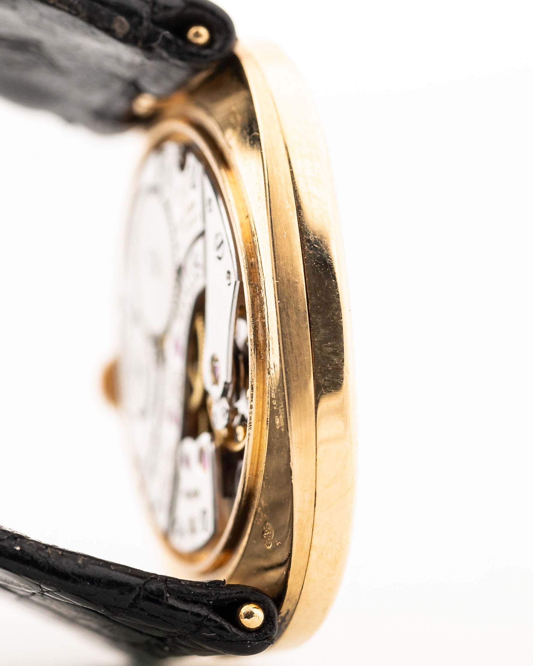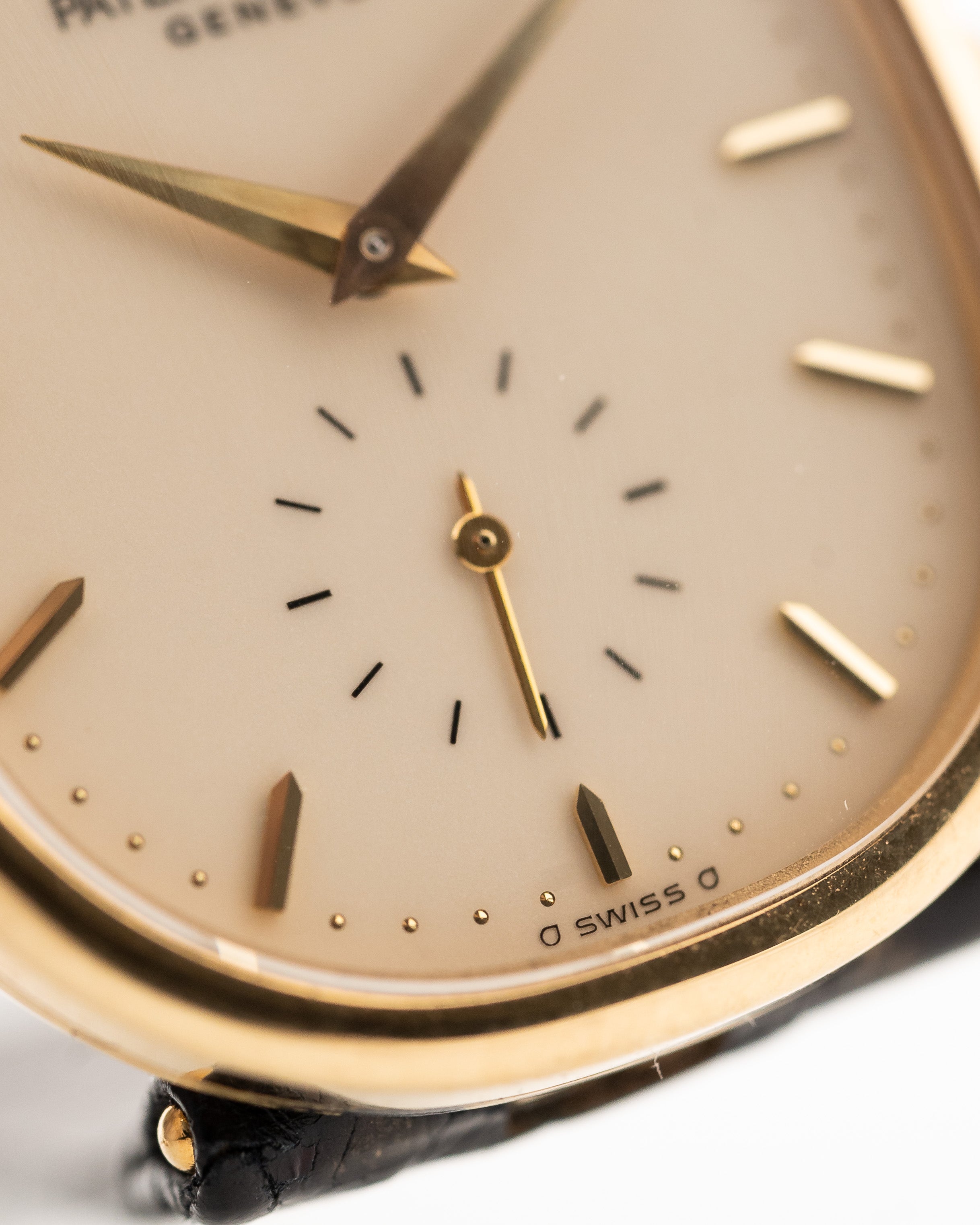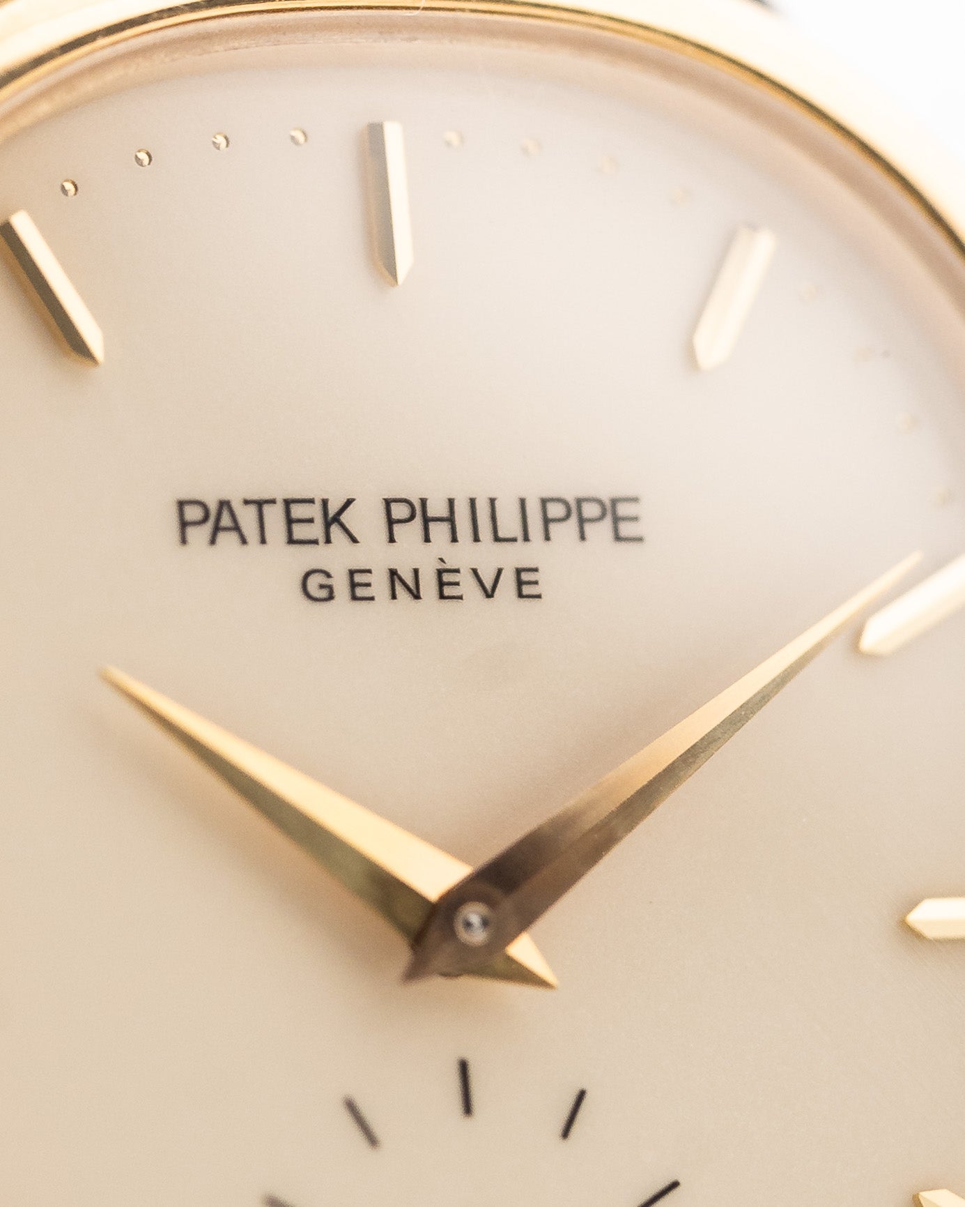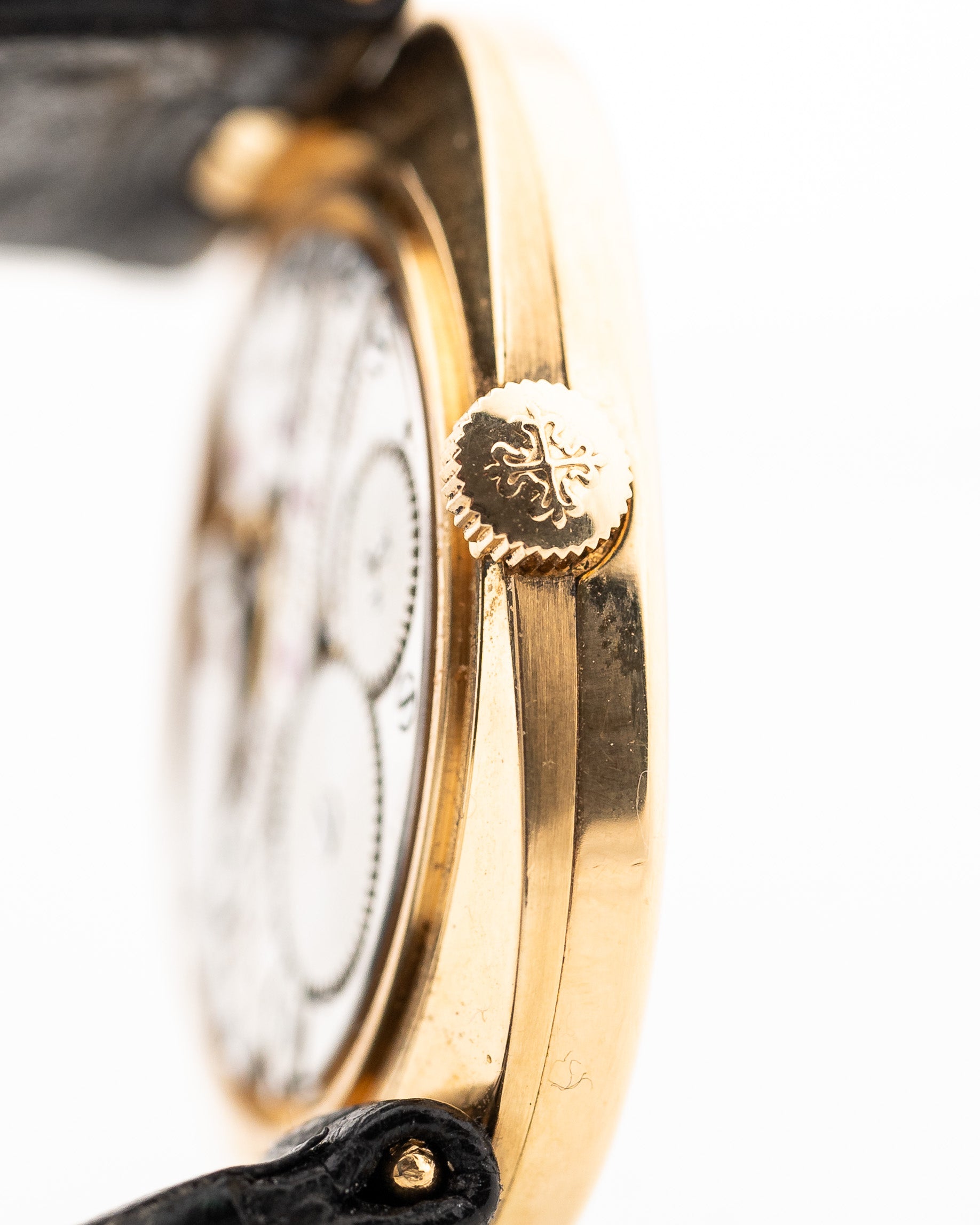 • 3- body 18k yellow gold case (Favre & Perret) with snap-on case back (Patek Philippe sticker on the back)