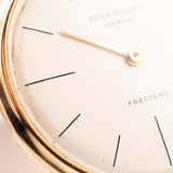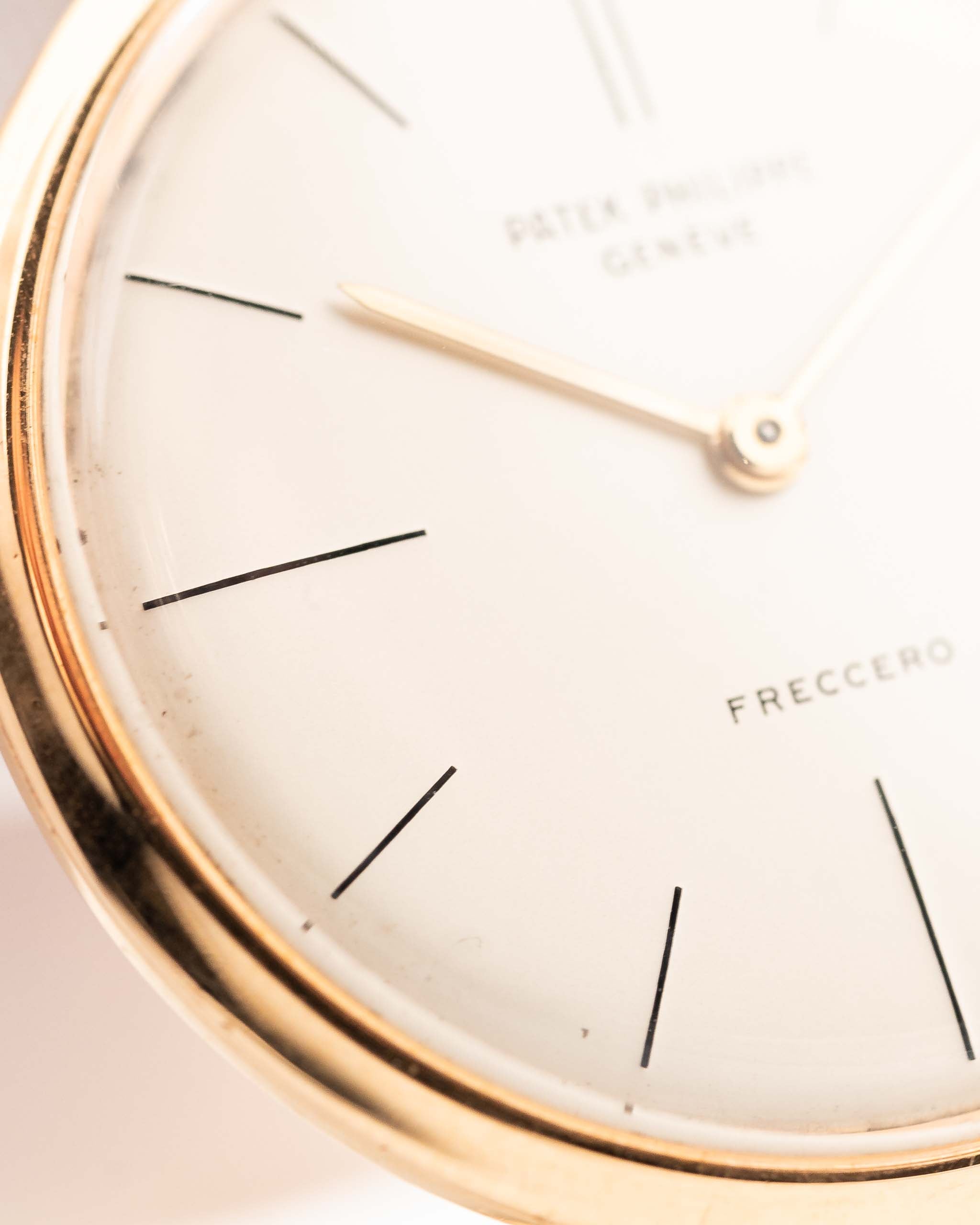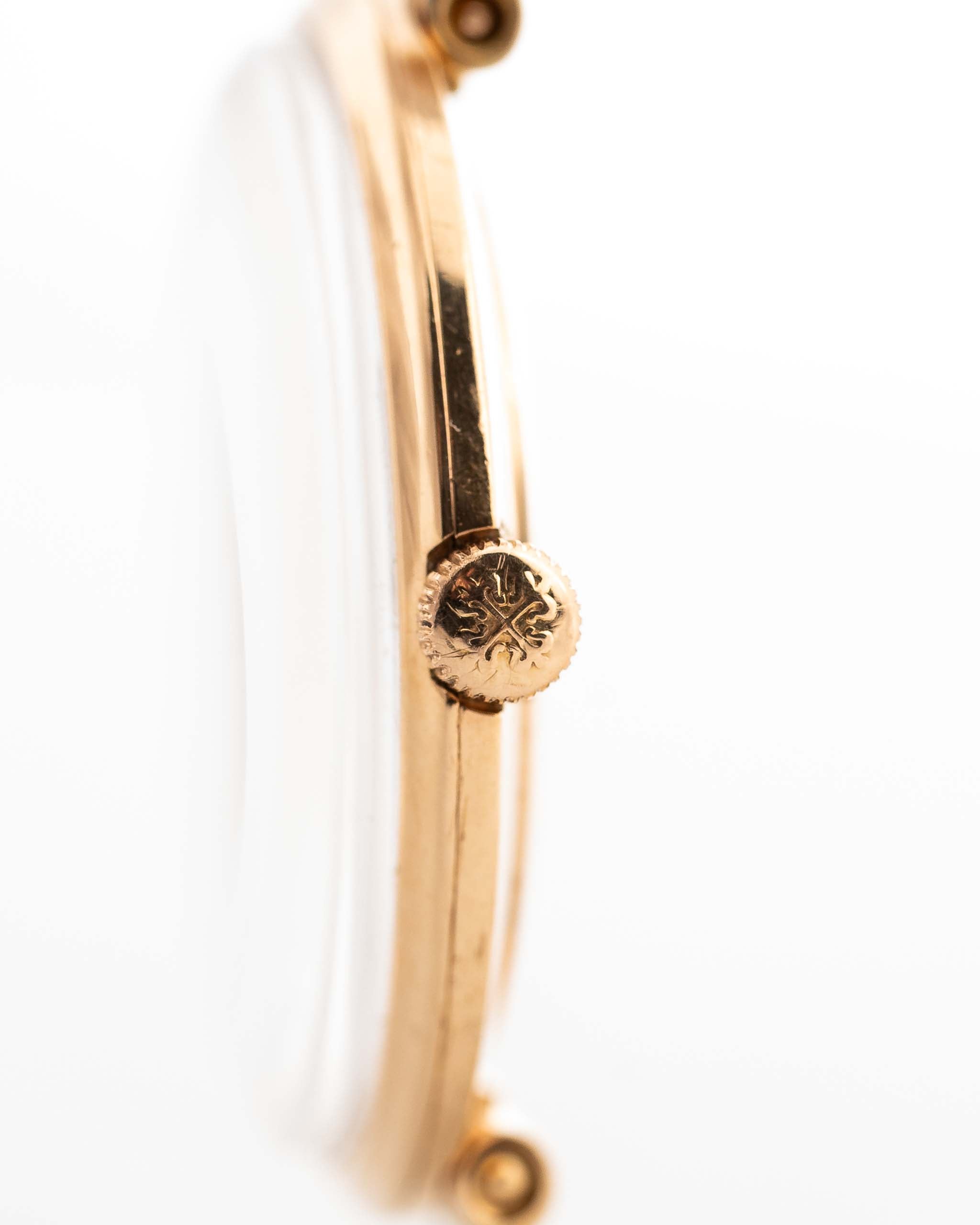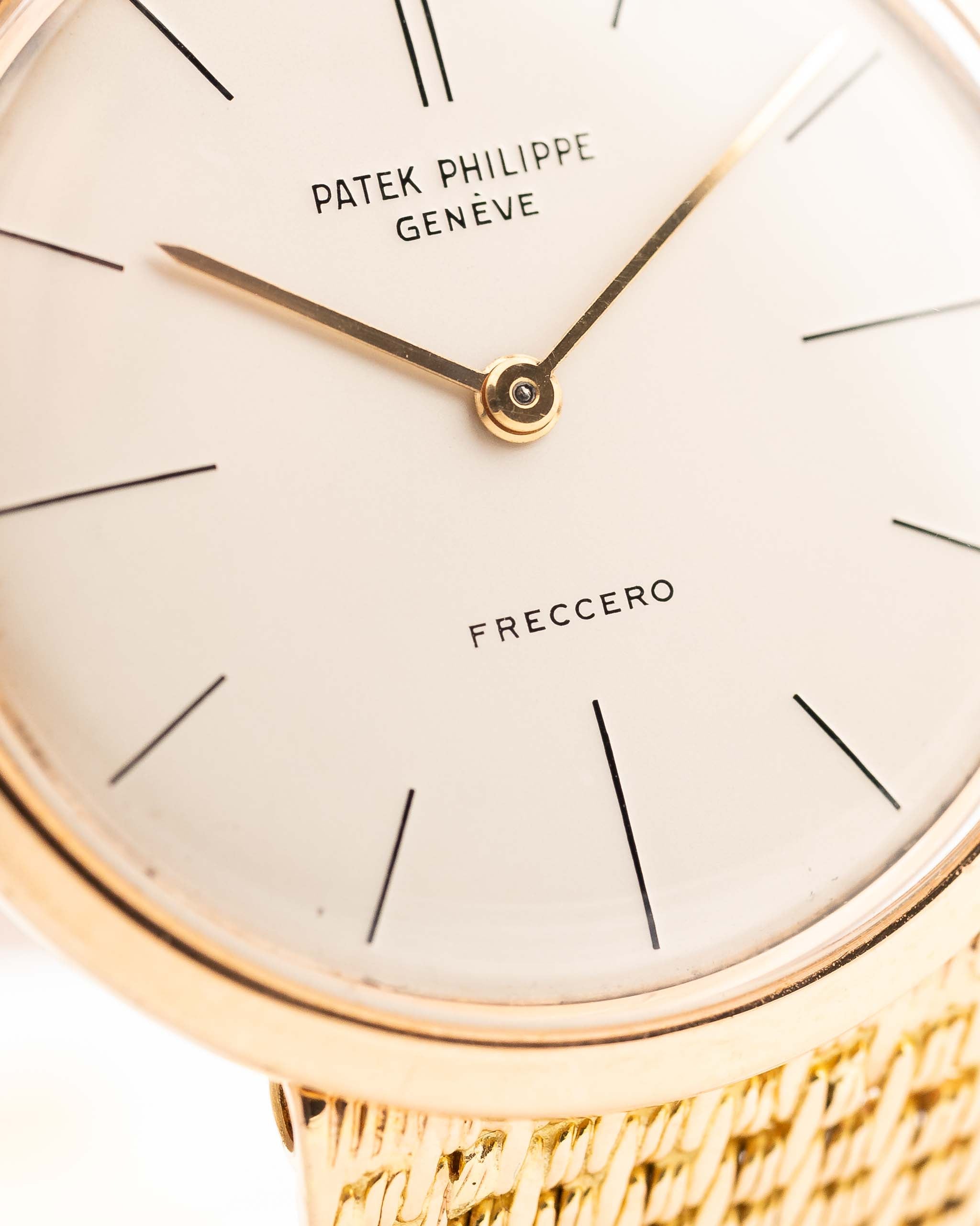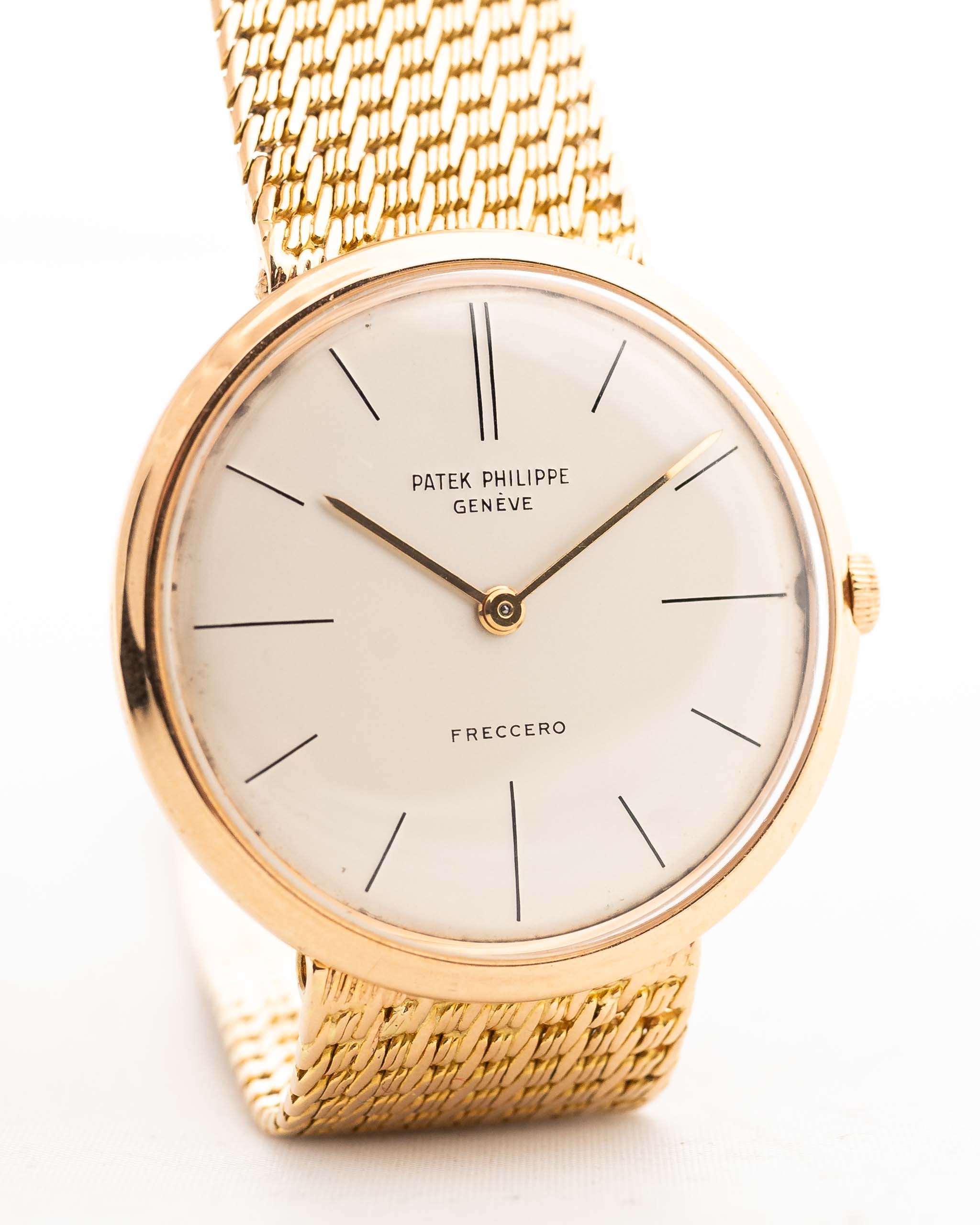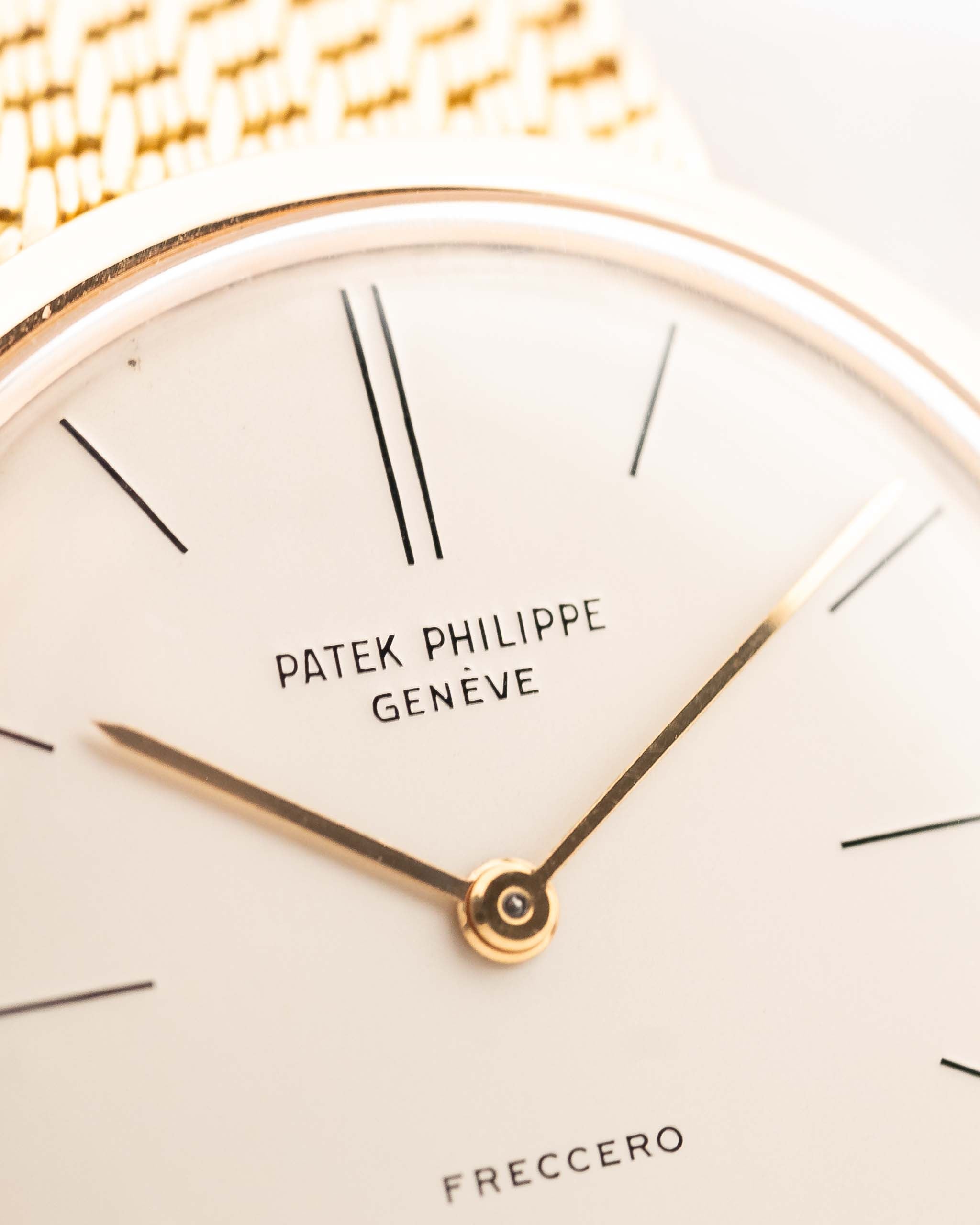 Special on this one is that it has a double signed silver colored dial with the name of jeweler "Freccero" from Montevideo, Uruguay where it was sold in the first place. Also very special on this one is that the 18k bracelet can be exchange and is not fully integrated like usual.