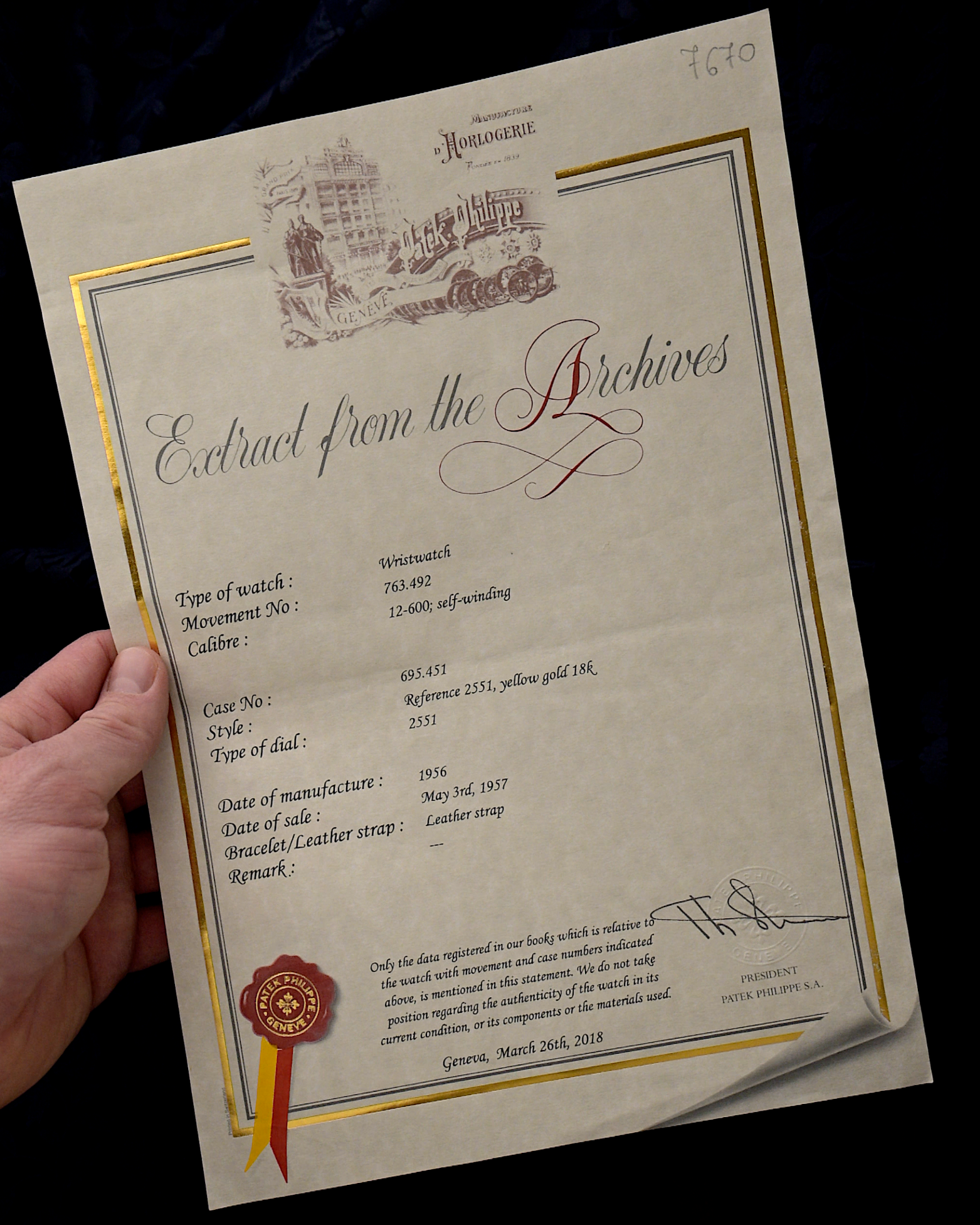 • comes with extract from the archives of Patek Philippe (03/2018)