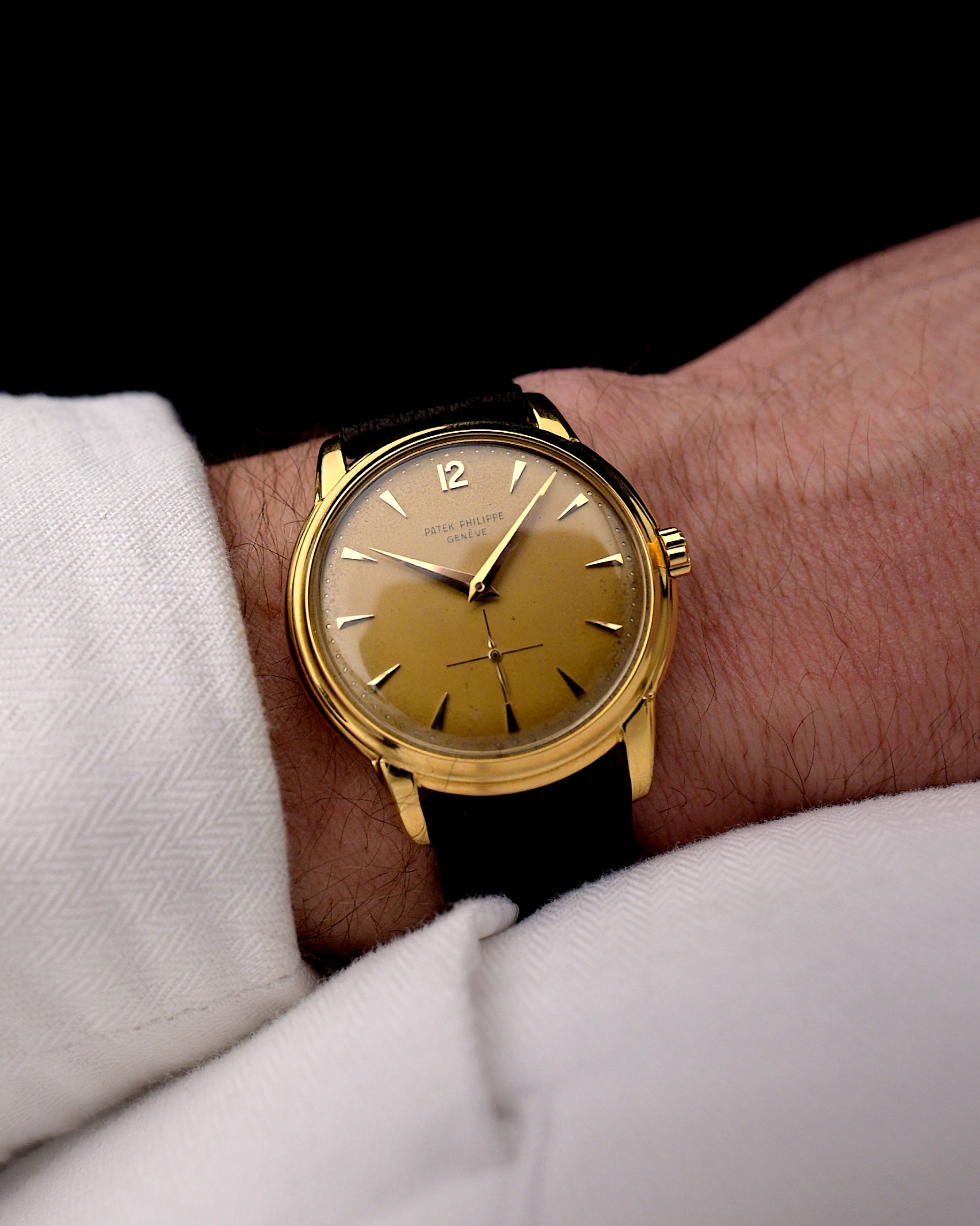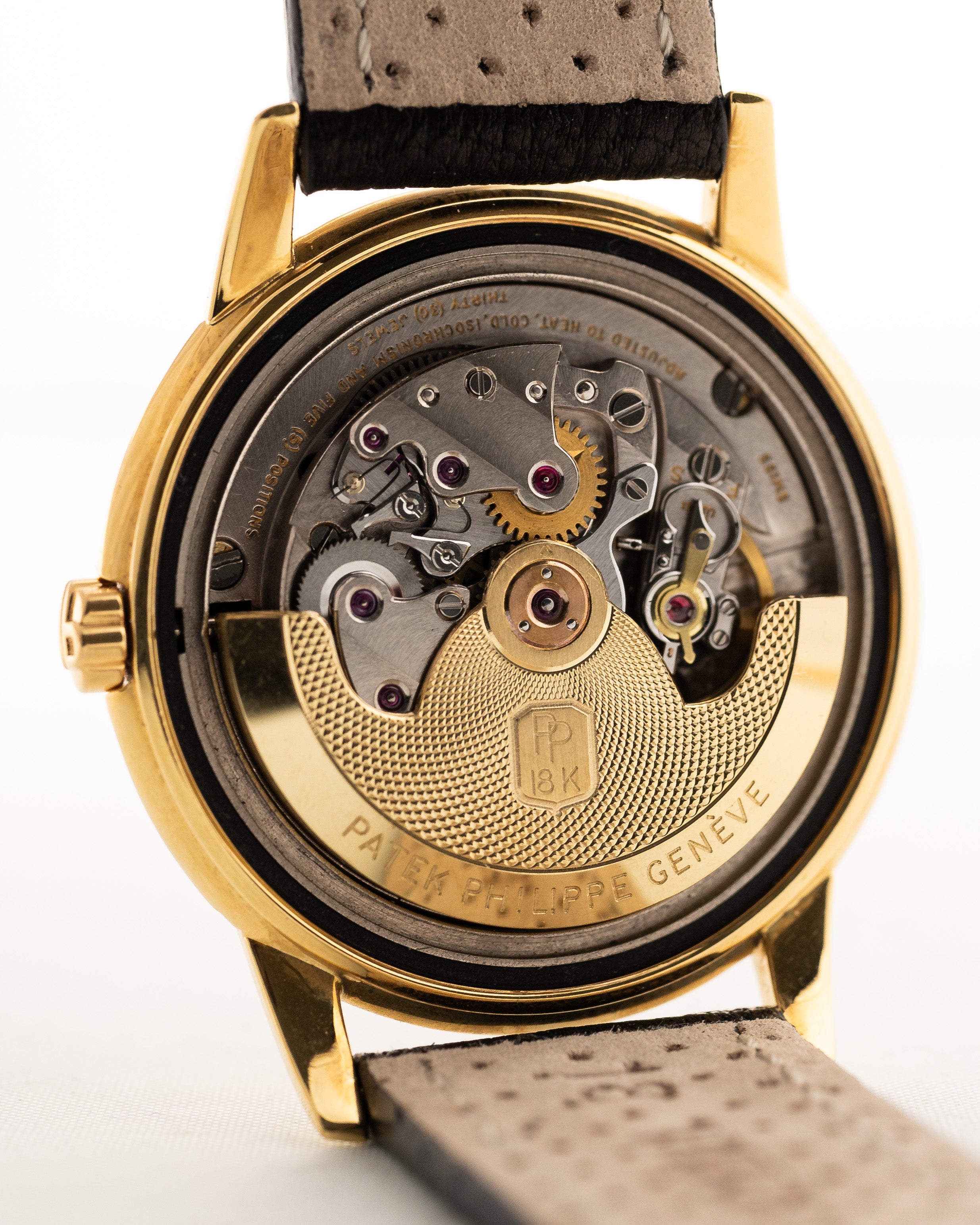 This Patek Philippe Calatrava is a self-winding watch. Sounds not spectacular but this fact makes this watch so special, because the caliber 12-600 AT was Patek Philippe’s very first automatic movement, which is considered by collectors to be the finest automatic movement in the watch industry. Icing on the cake is the incredible finished 18k yellow gold rotor.