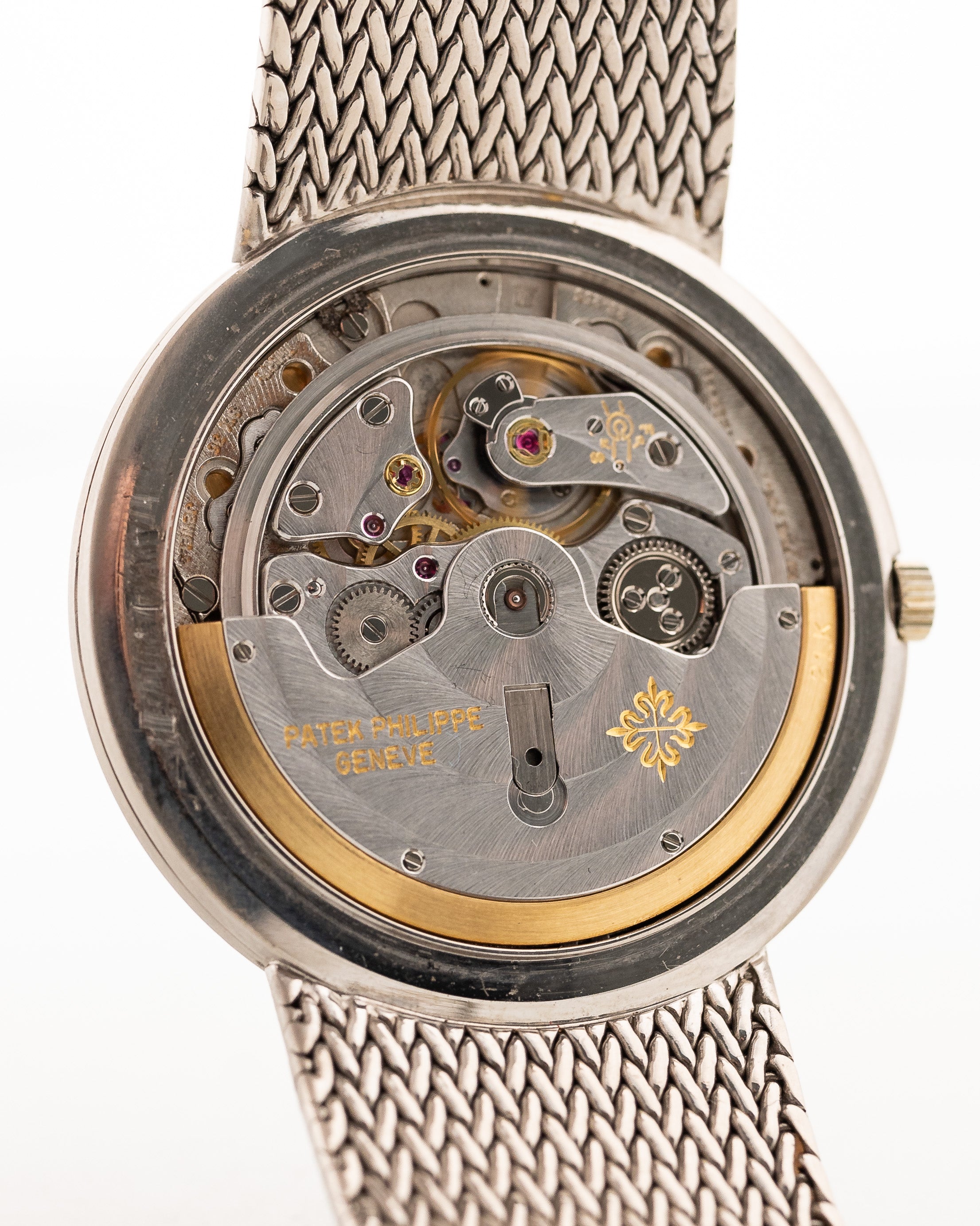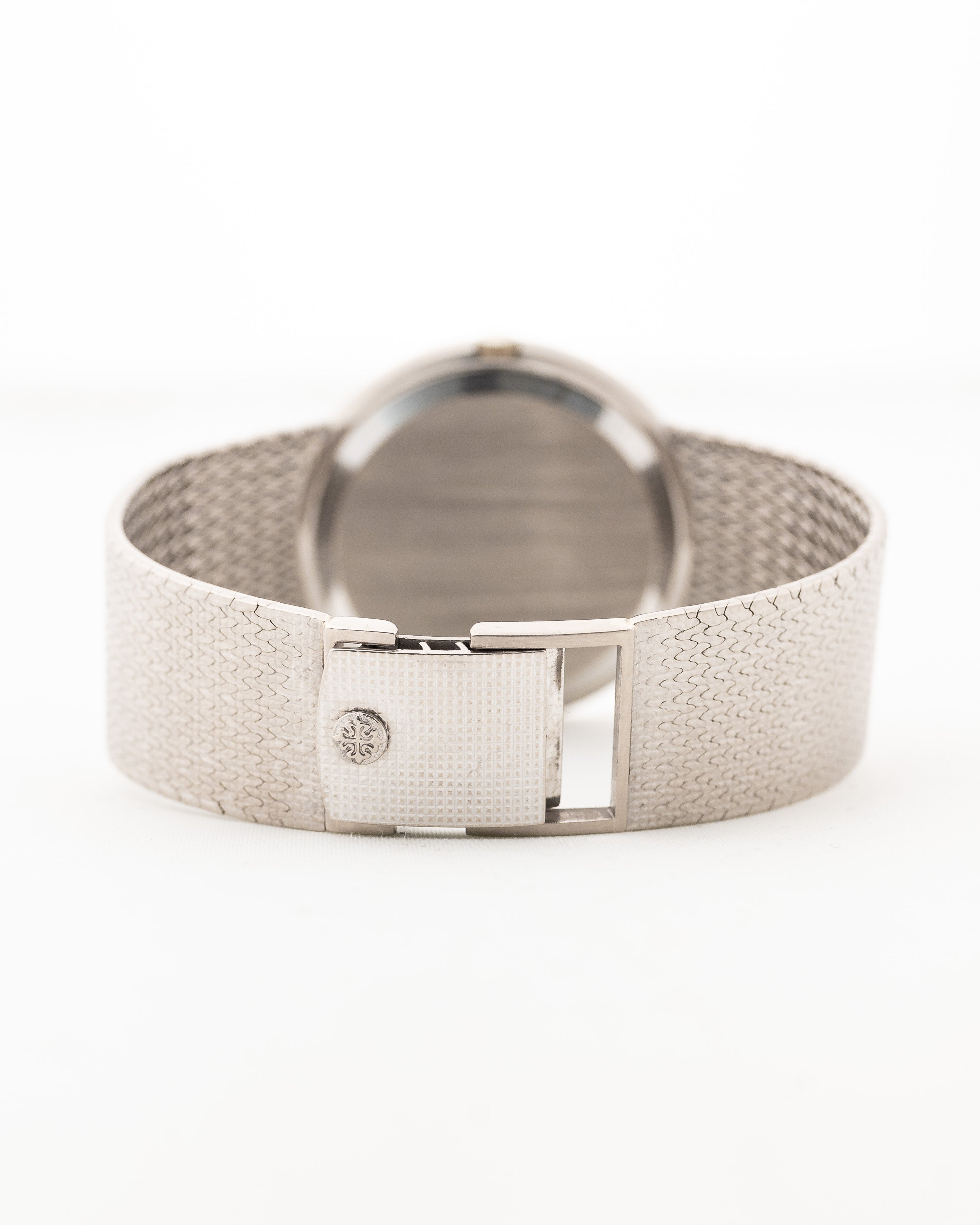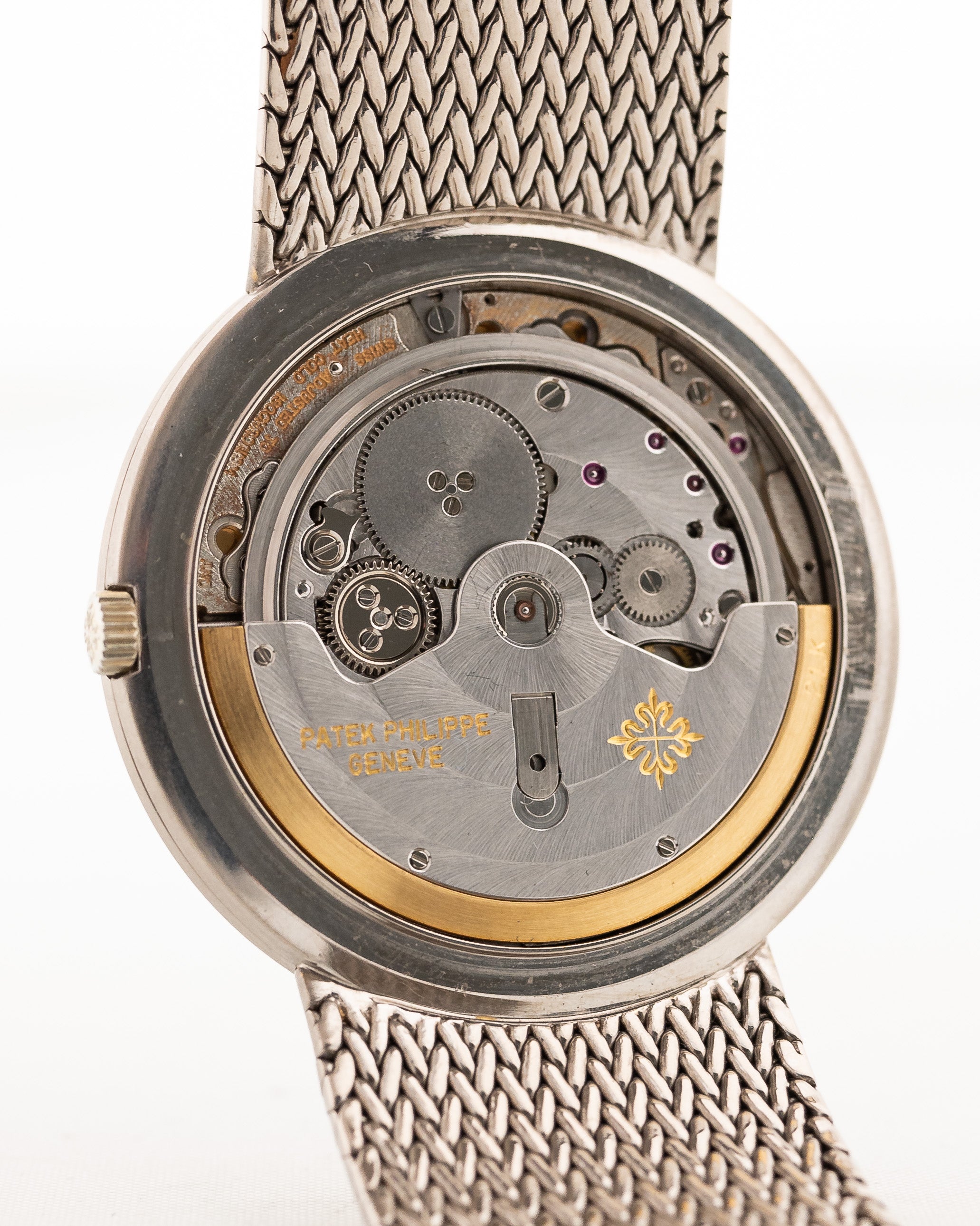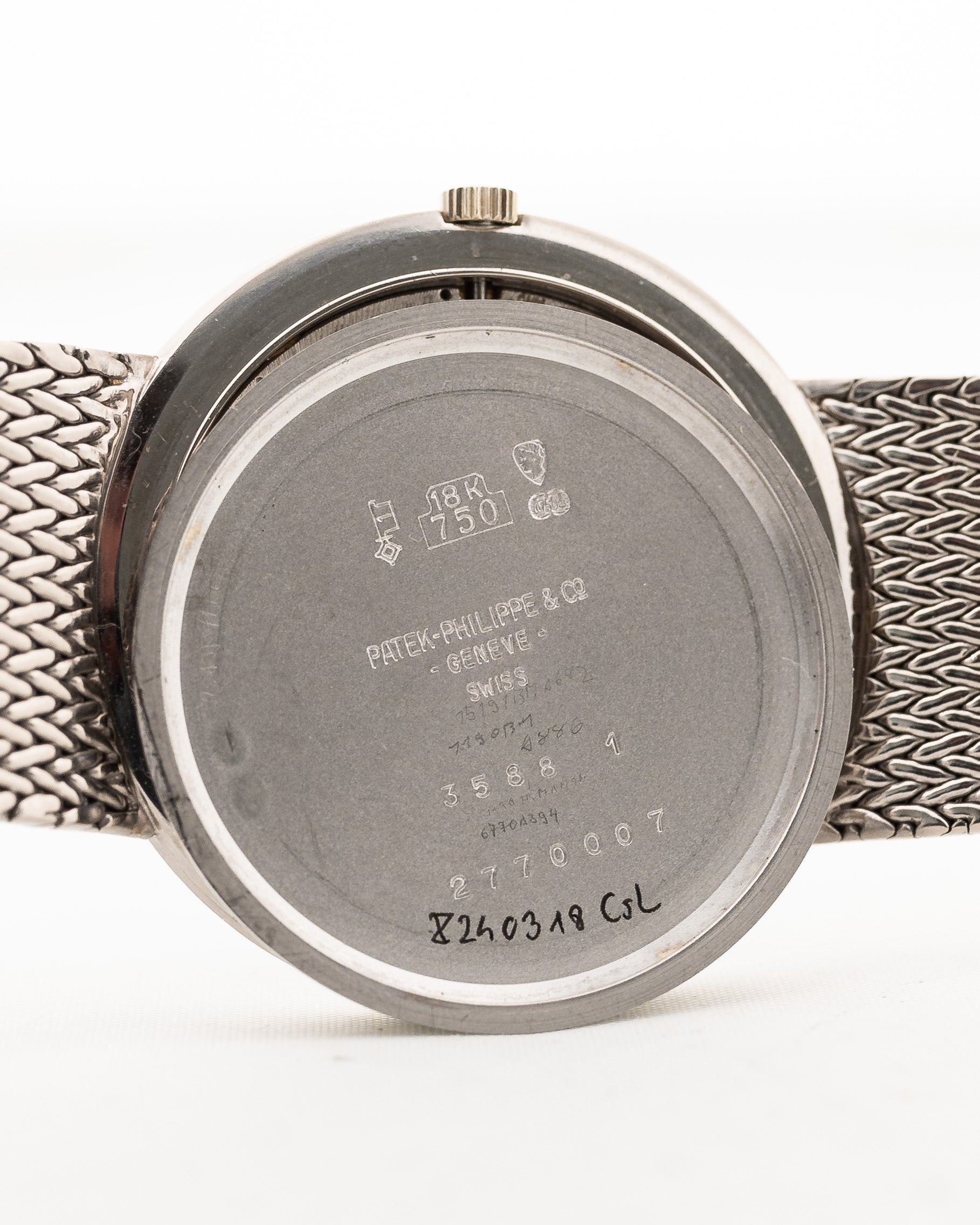 • the original Patek Philippe integrated 18k white gold bracelet is fitting up to 17,5 cm wrist size and can be adjusted by around 0.5 cm at the clasp / 1.4 mm thick