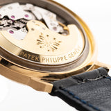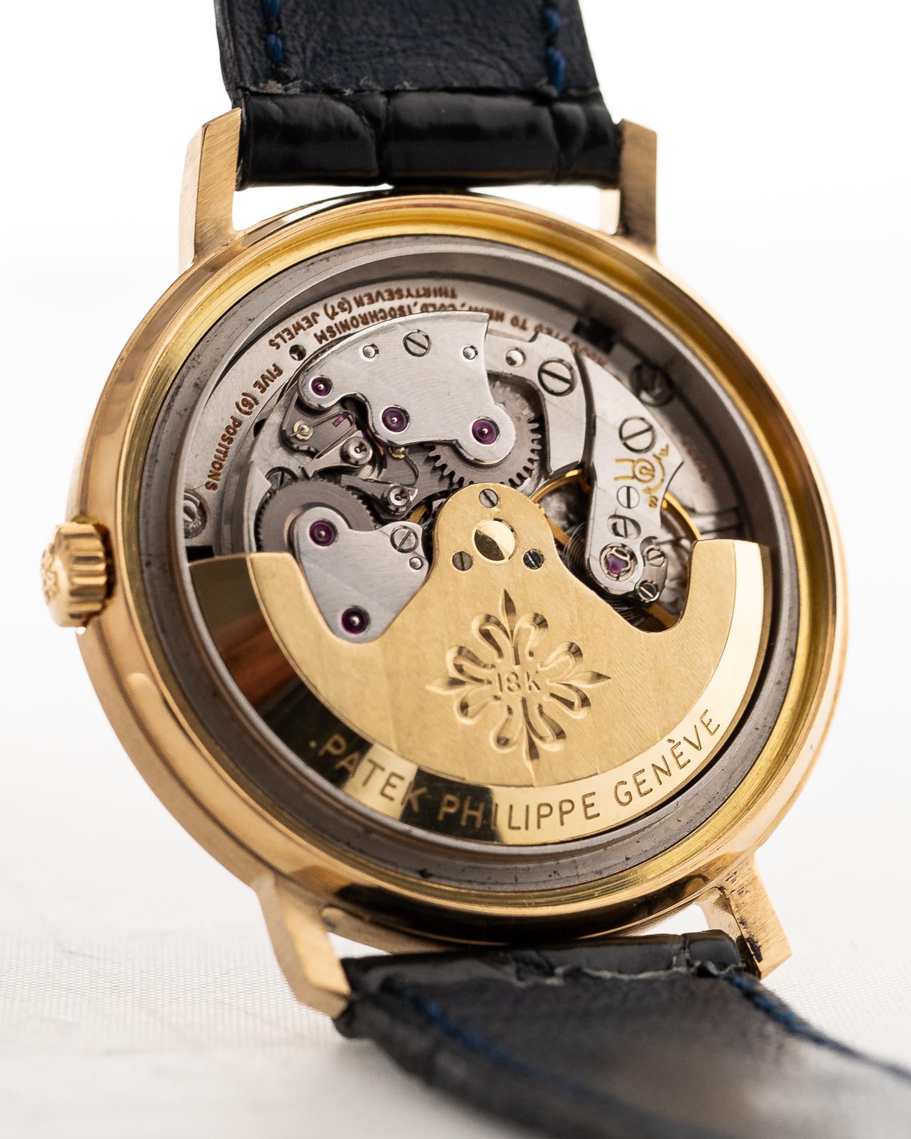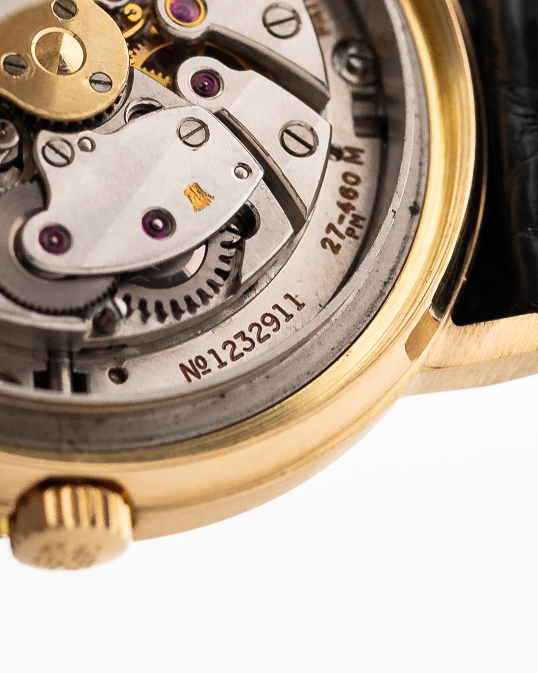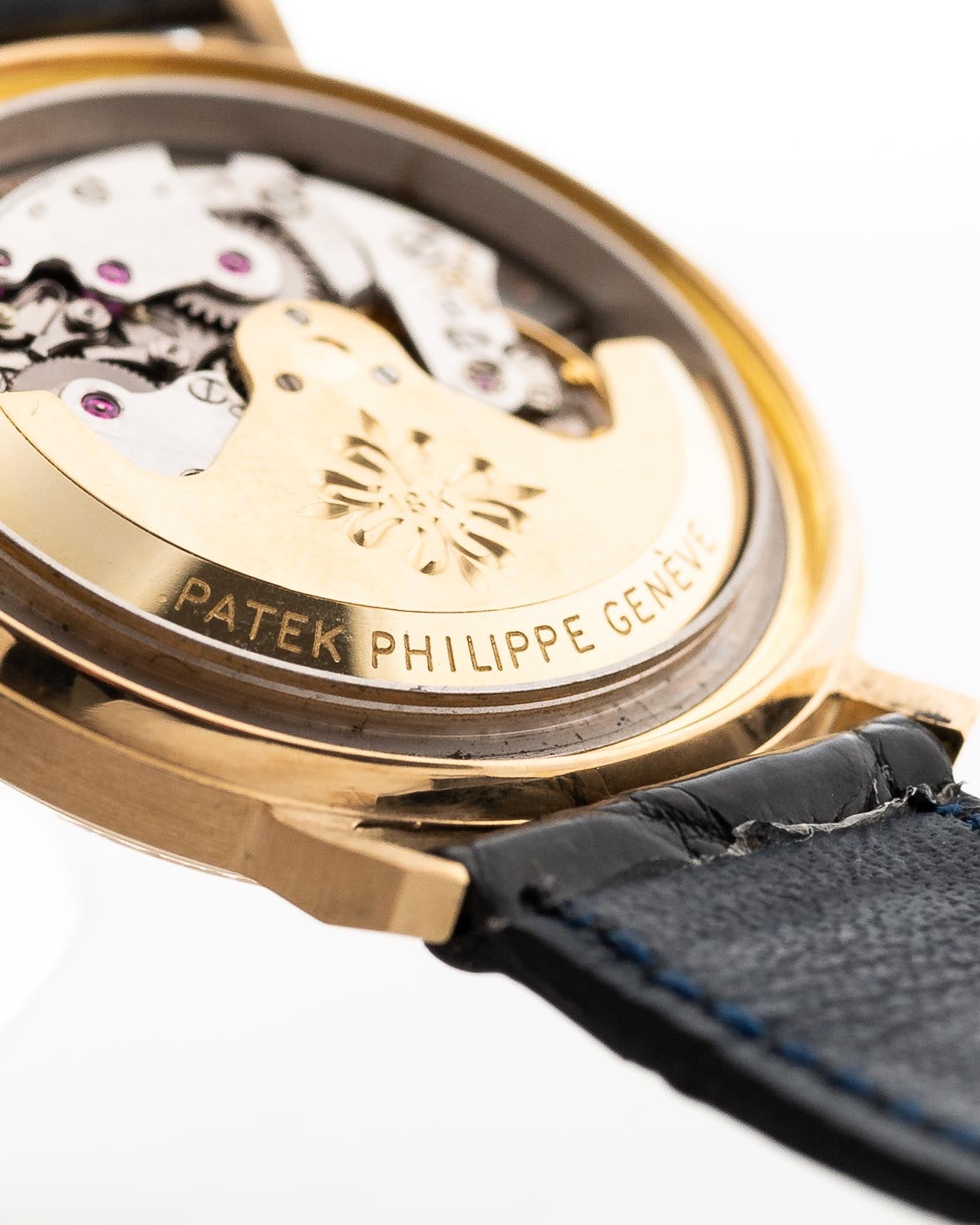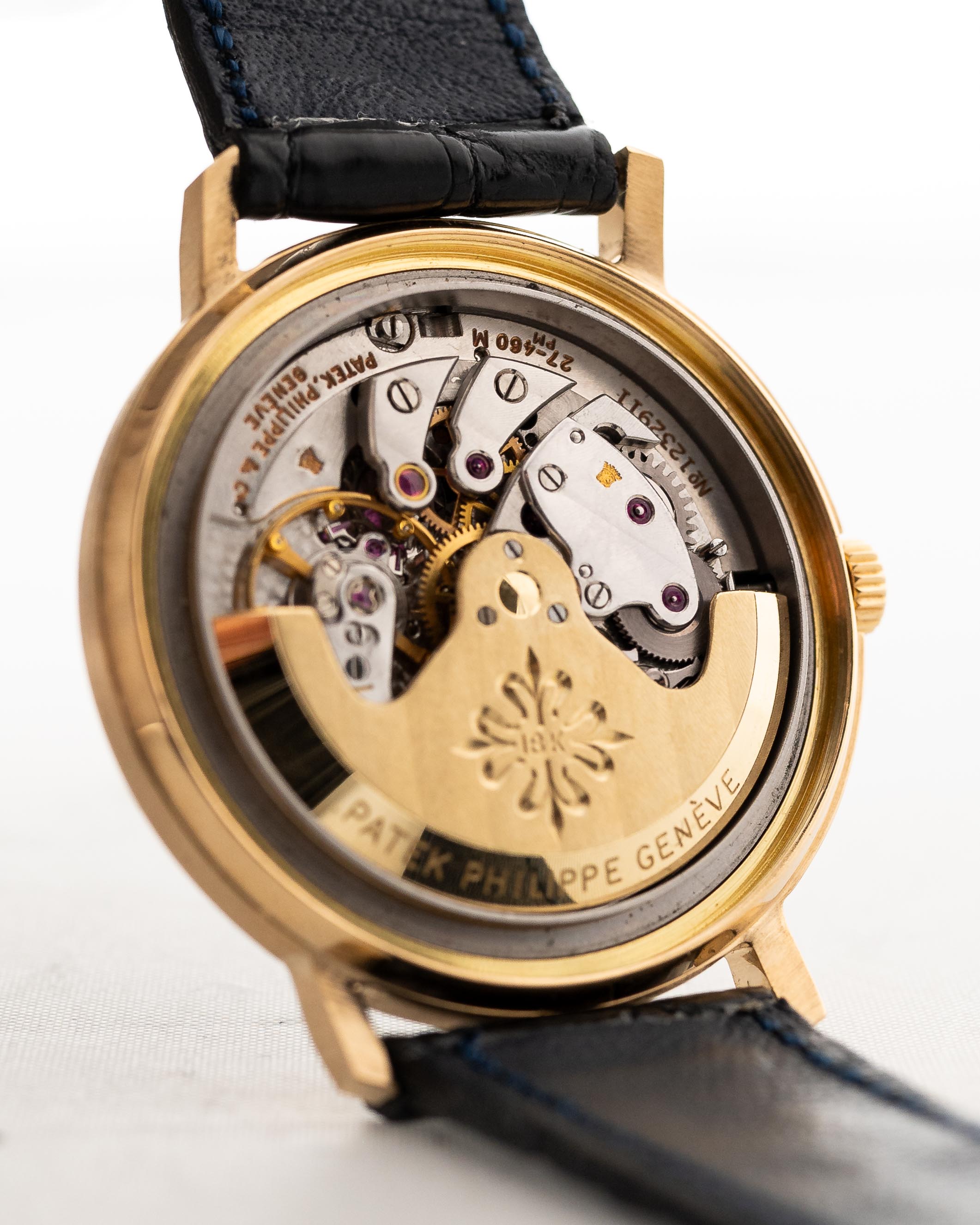 The reference 3445 was launched almost a decade after the legendary Calatrava reference 2526, and its caliber 27-460M offers the same exquisite finishing as the 12-600 AT movement in the 2526 with an 18k yellow gold rotor.