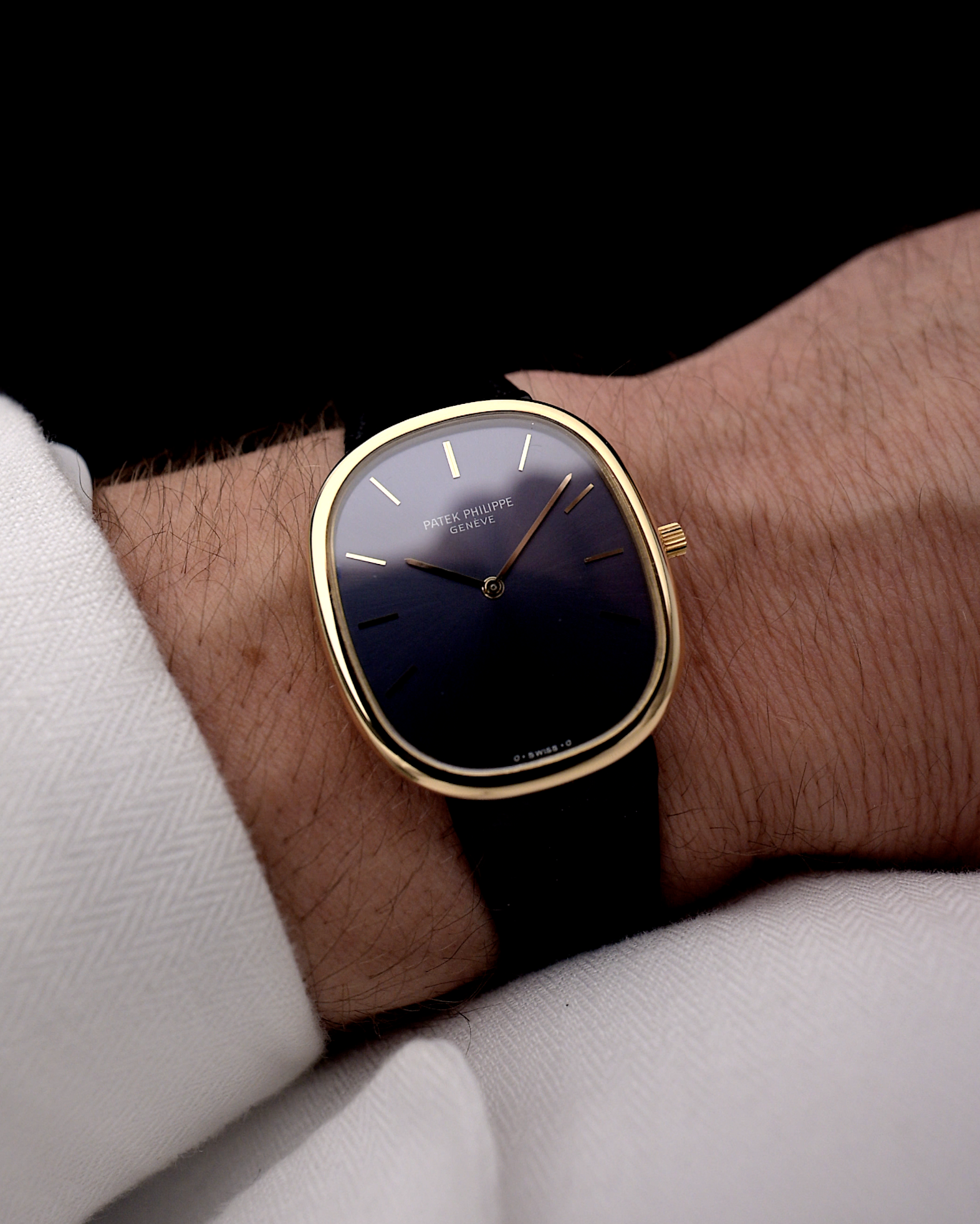Originally debuted in 1968, the Golden Ellipse model designed by Patek Philippe has transcended the formality of employing only traditional shaped wristwatches. Its bold case design of balancing between roundness and rectangularity have led to what watch connoisseurs consider as a golden ratio.