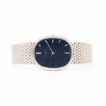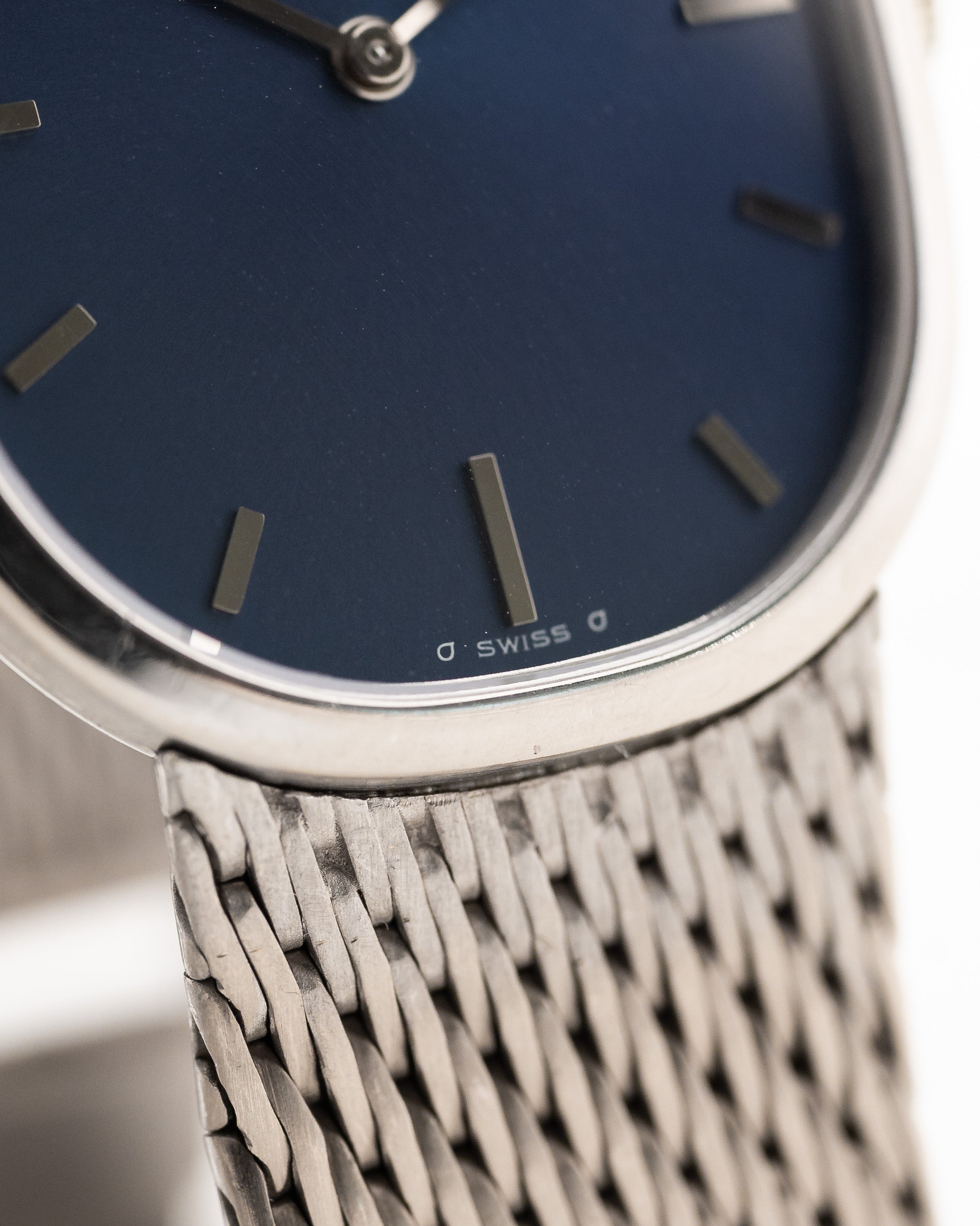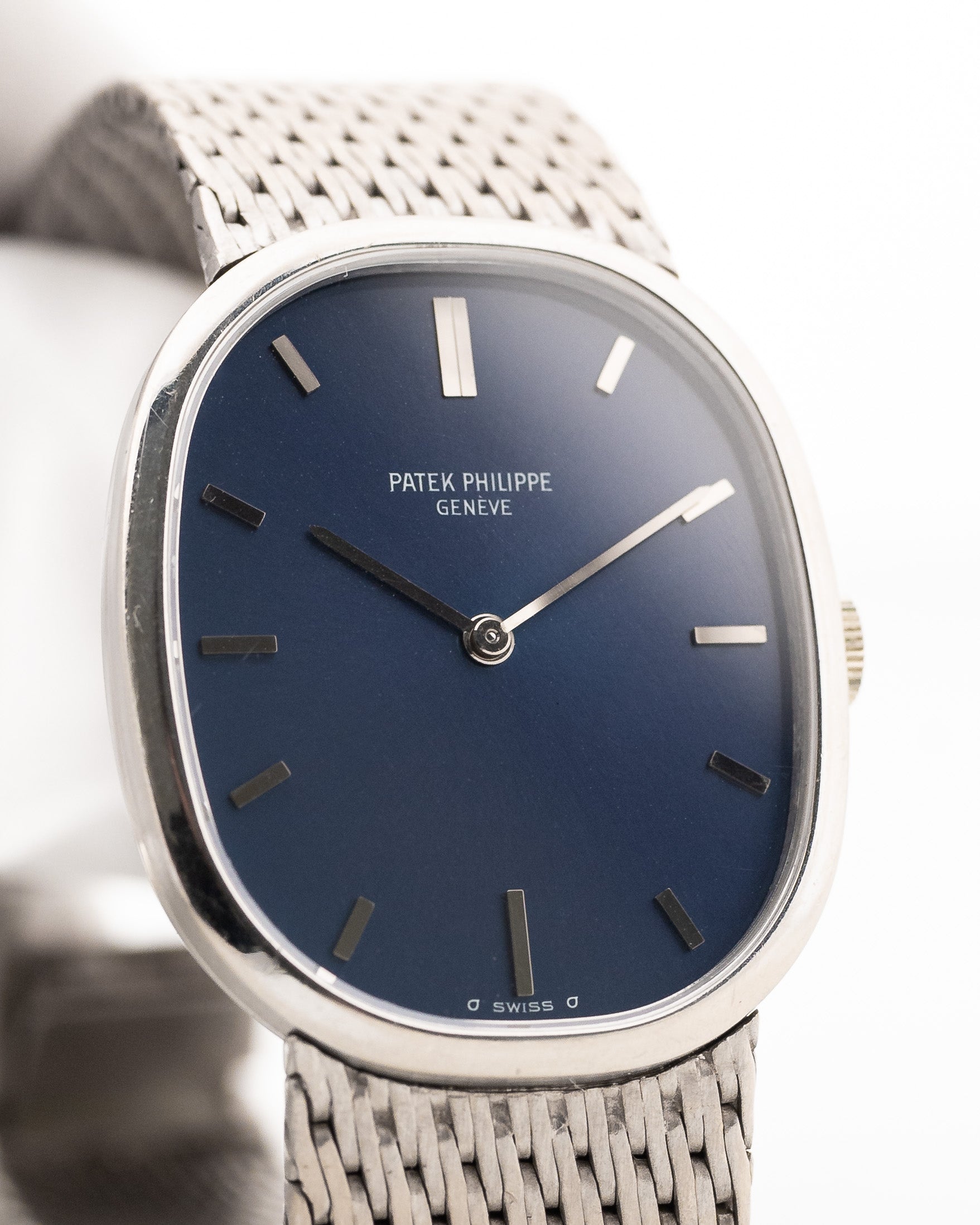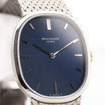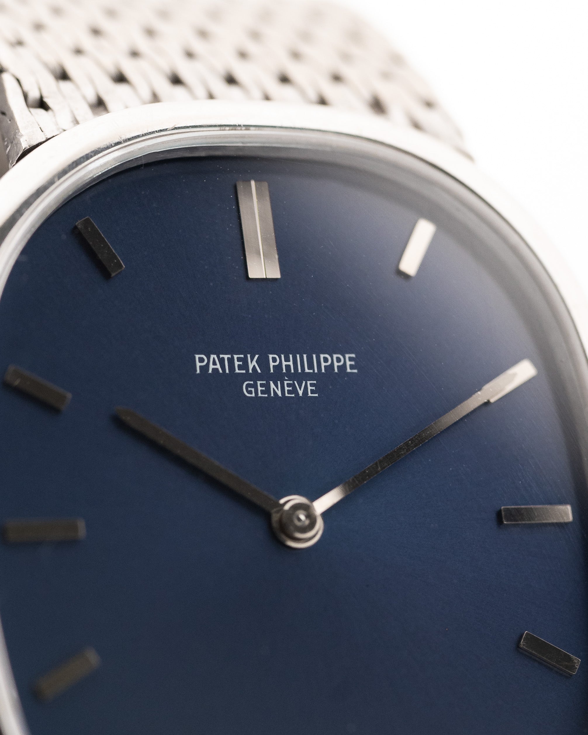 Here we have an excellent representation of Patek Philippes Ellipse dress watches, this ref. 3548 / 1 hit all the high notes with an 18k white gold case with a very rare integrated white gold bracelet, and a wonderful blue Sigma dial in flawless condition.