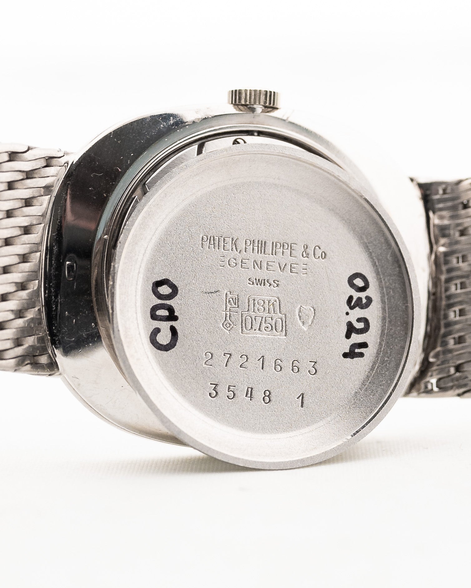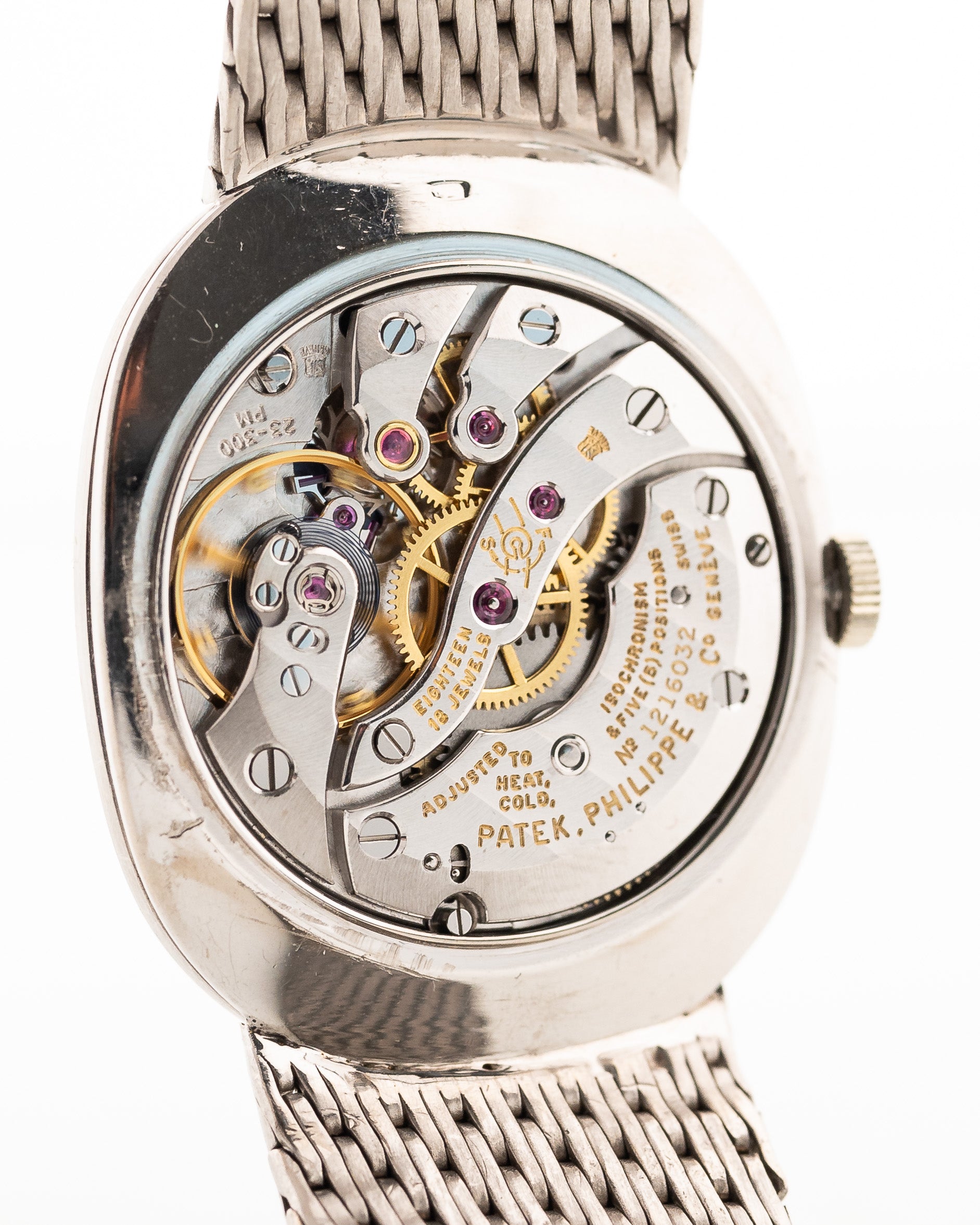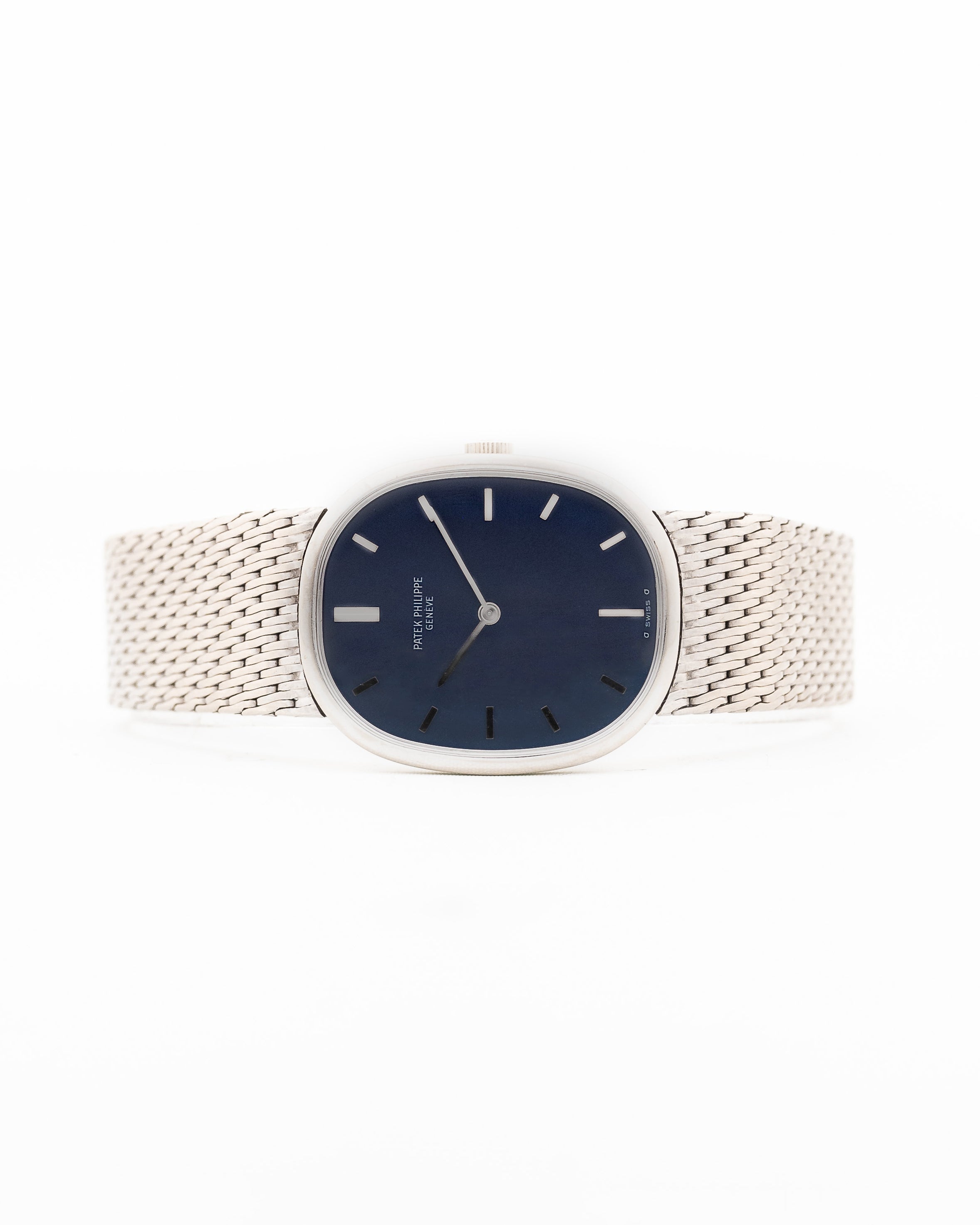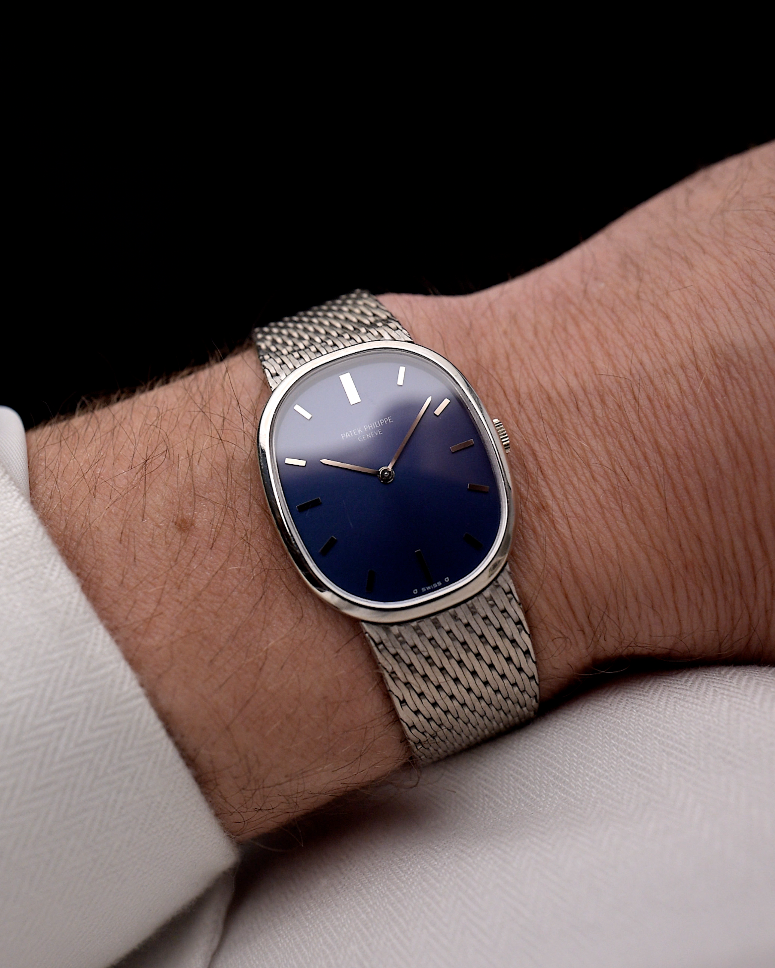 Here we have an excellent representation of Patek Philippes Ellipse dress watches, this ref. 3548 / 1 hit all the high notes with an 18k white gold case with a very rare integrated white gold bracelet, and a wonderful blue Sigma dial in flawless condition.