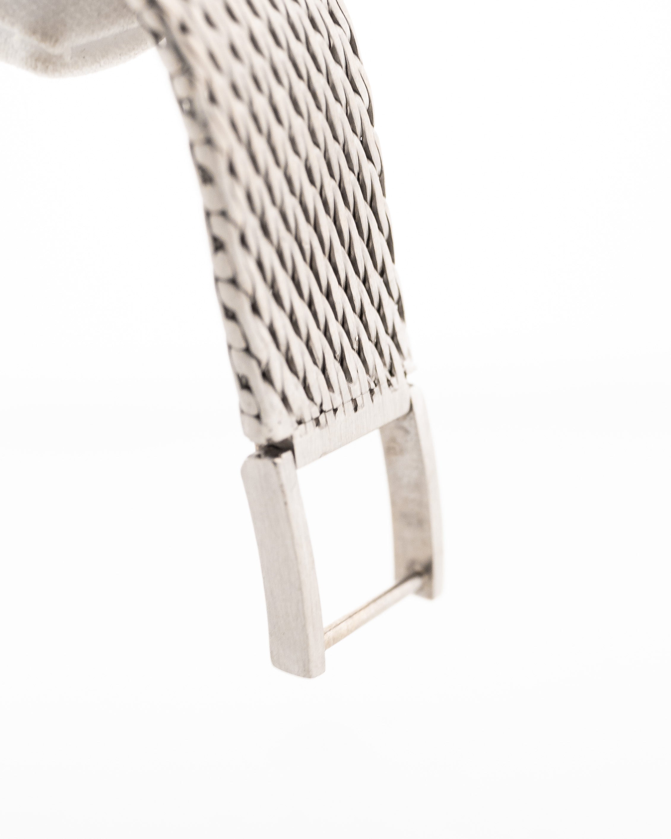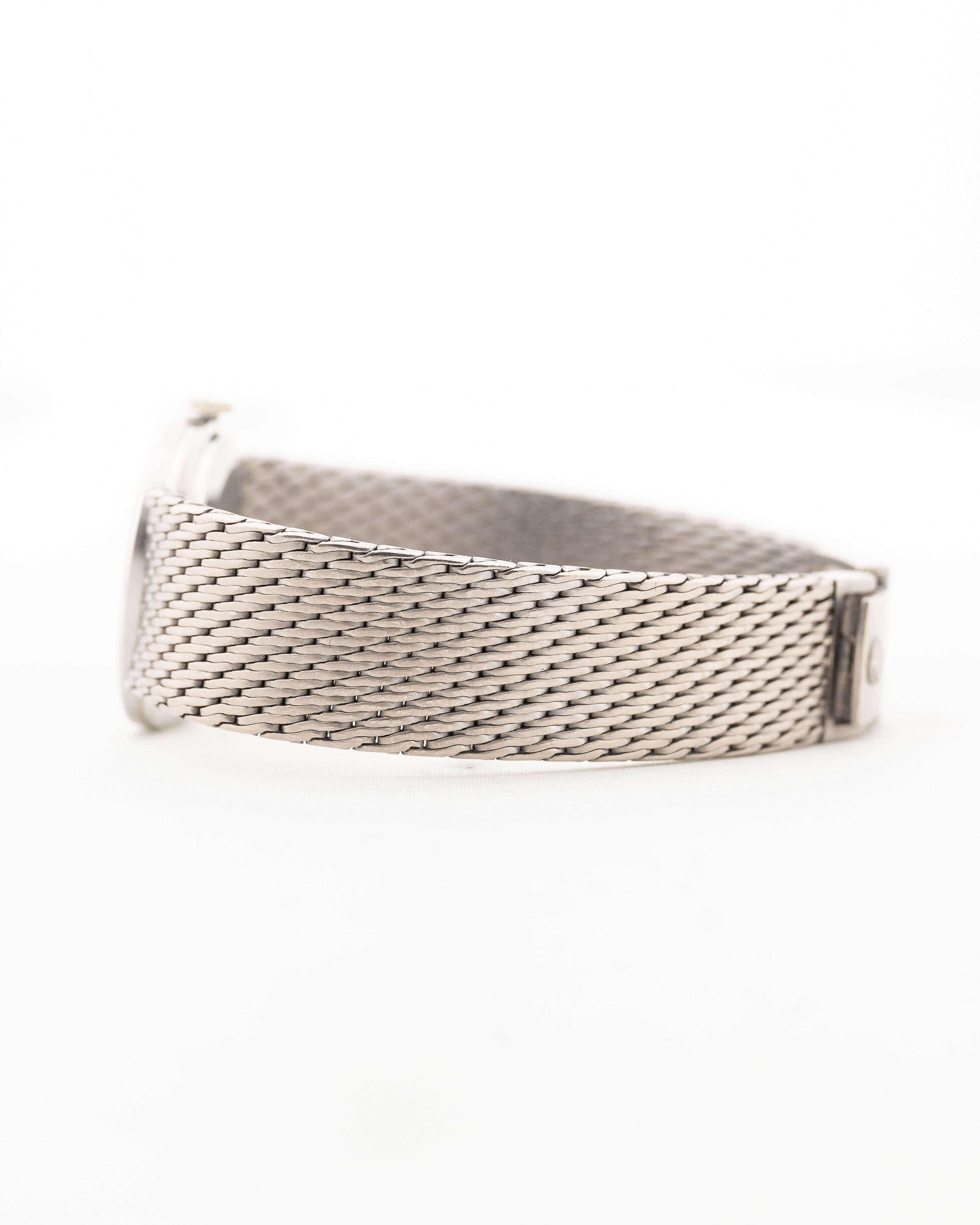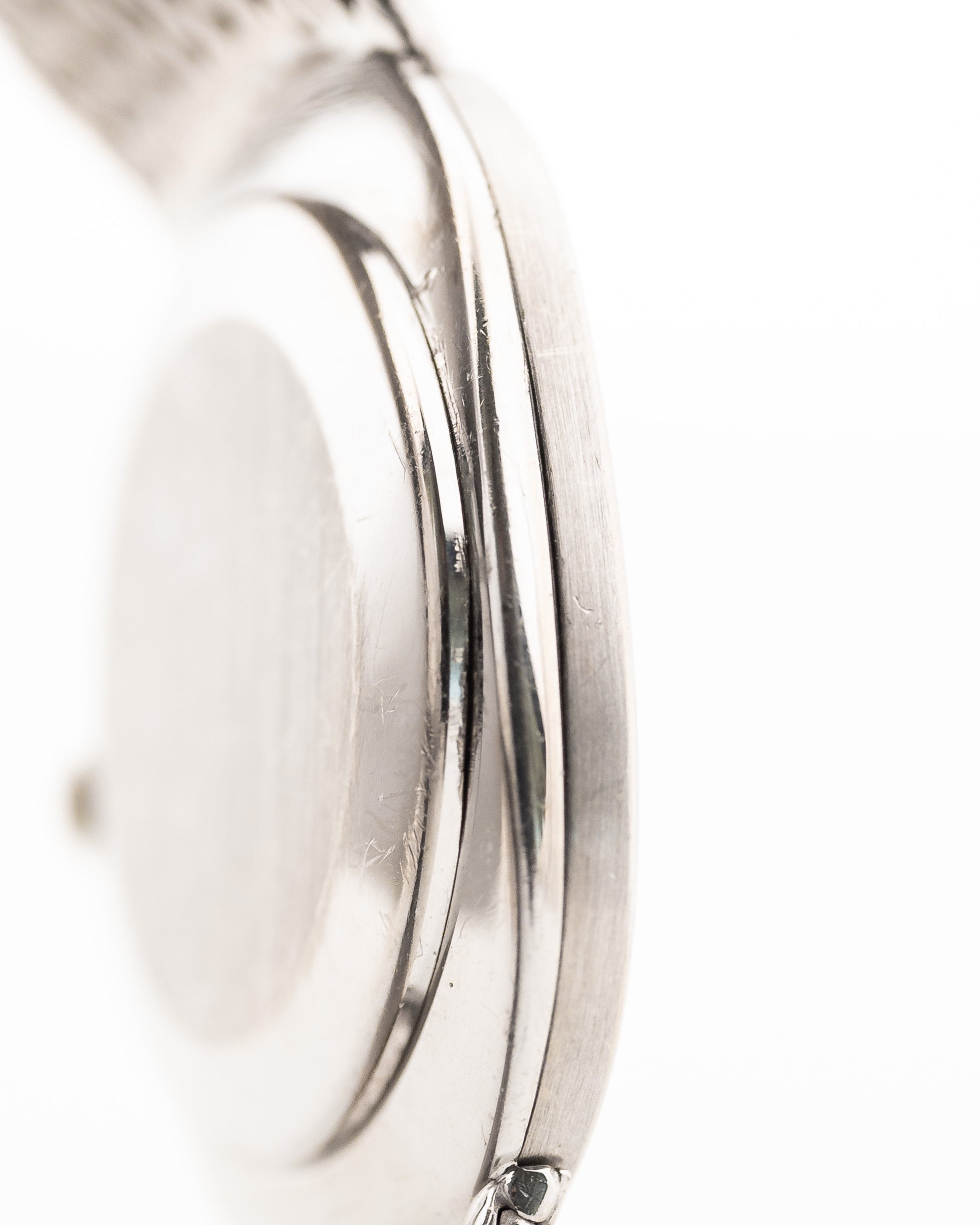 • 3- body 18k white gold case with snap-on case back from case maker Baumgartner