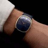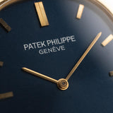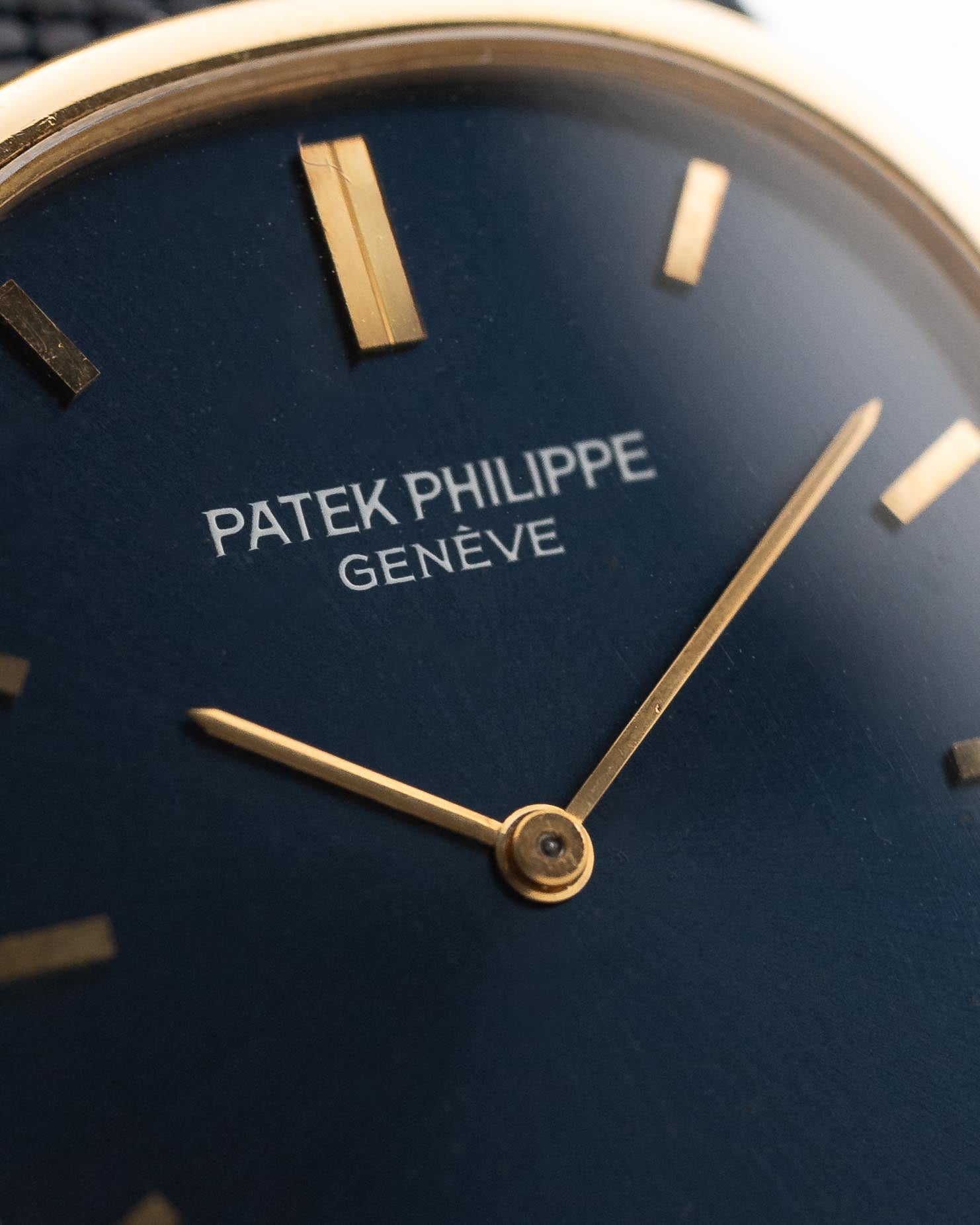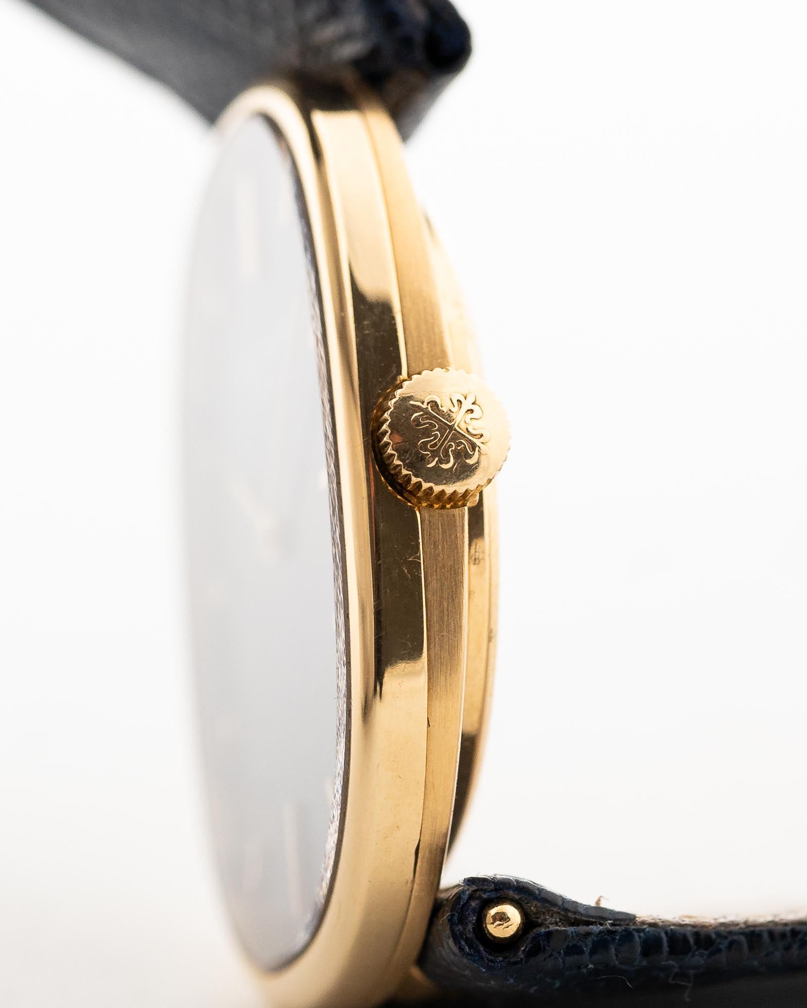 Our reference 3848, also known as the mid-size model comes in outstanding condition and a stunning blue sigma sunburst dial with the Patek Philippe automatic Cal. 215.