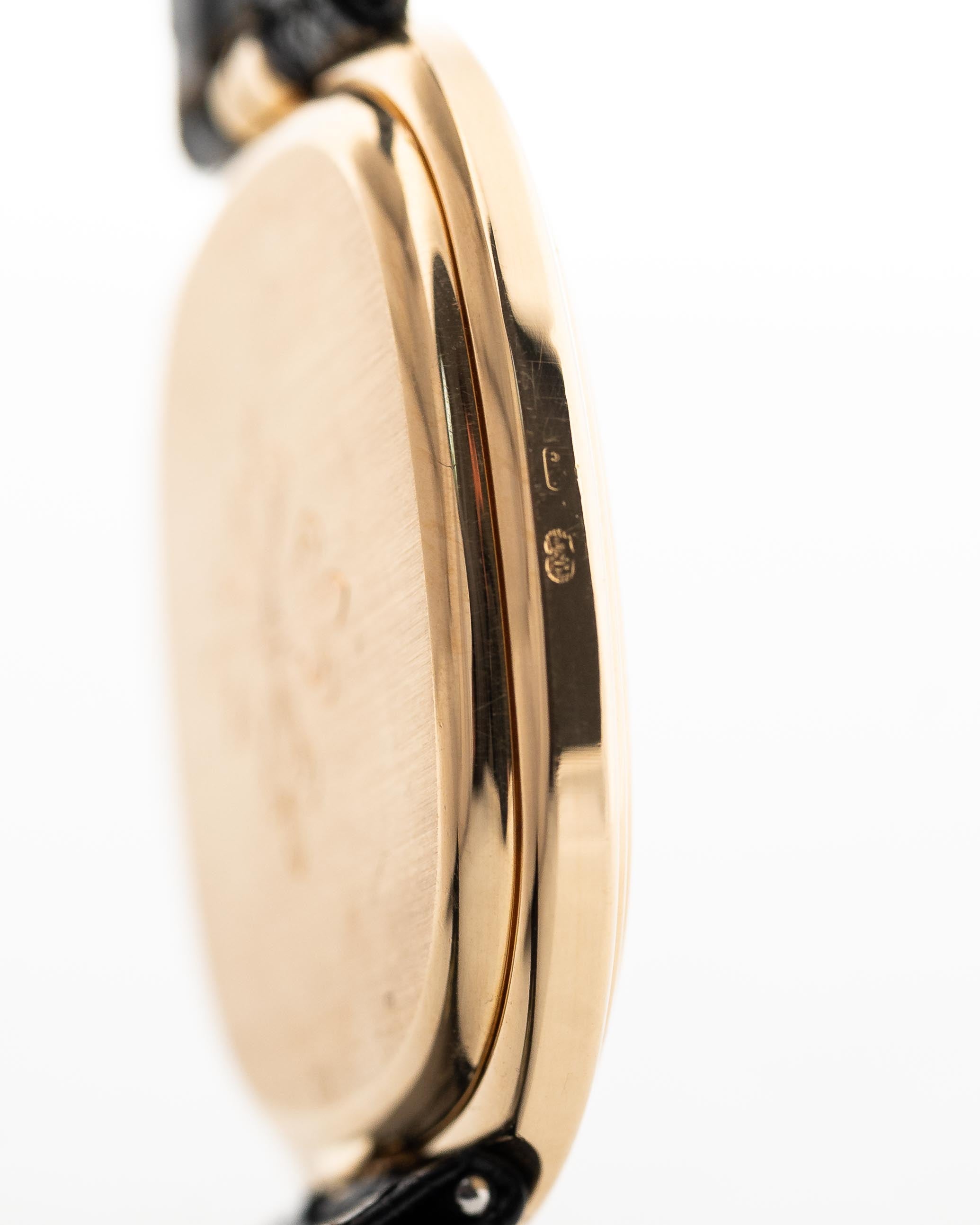 • 3- body 18k yellow gold case with snap-on case back (Favre & Perret SA)