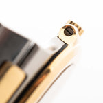 • monobloc case in 18k yellow gold and stainless steel withe screwed-on bezel