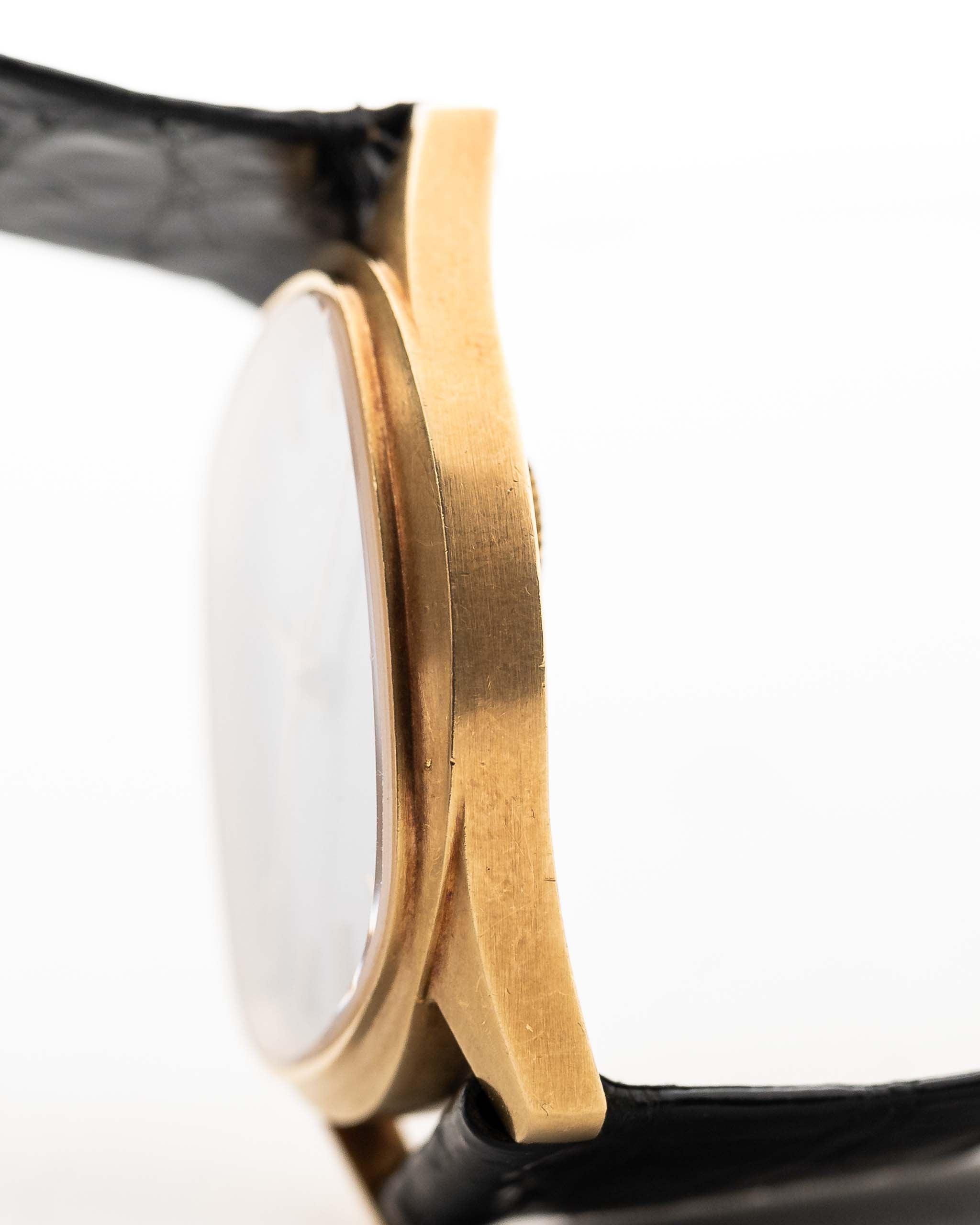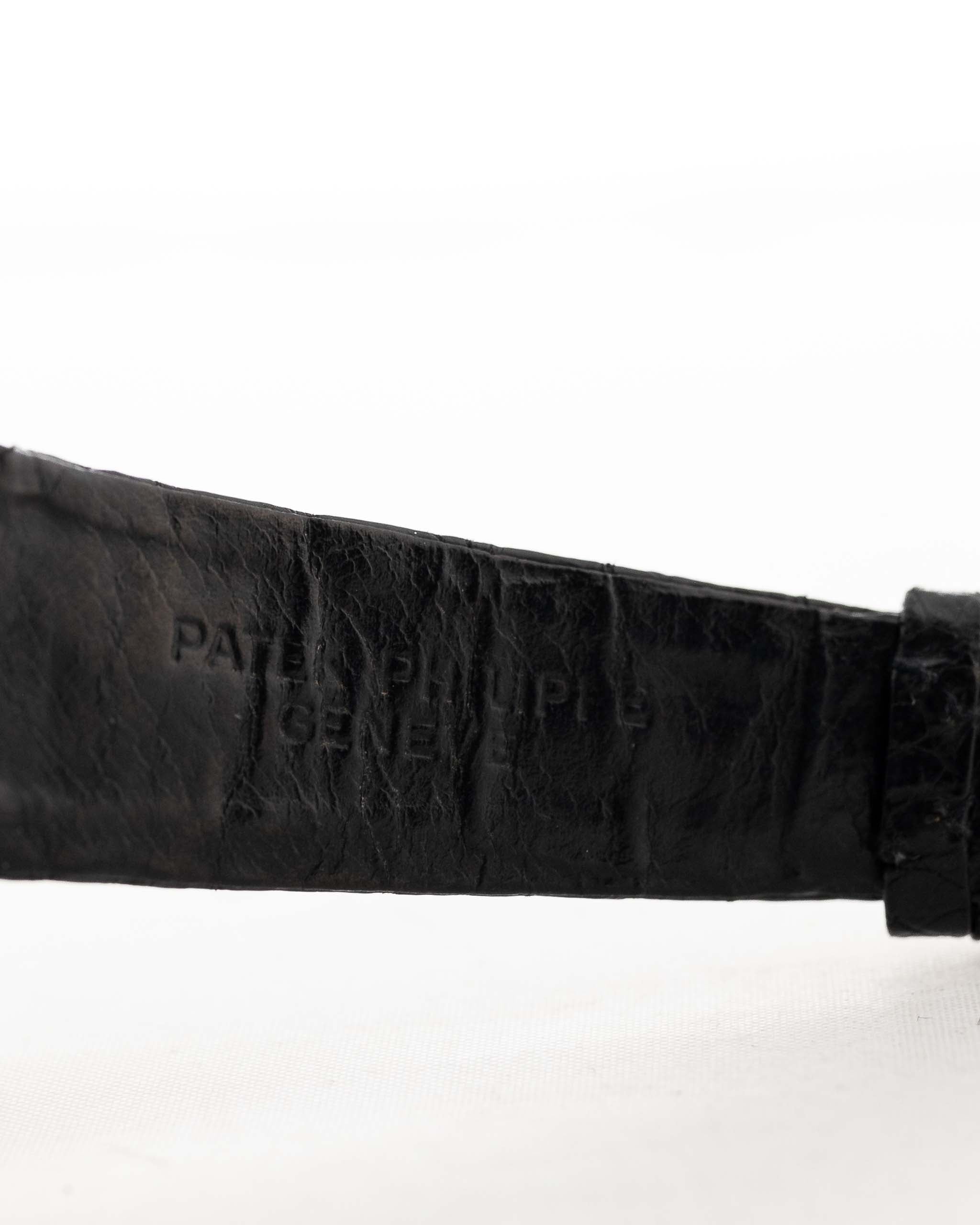 Worn on its original Patek Philippe leather strap with matching 18k buckle, this rare reference is not just oversized for its time — it’s oversized in character.