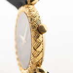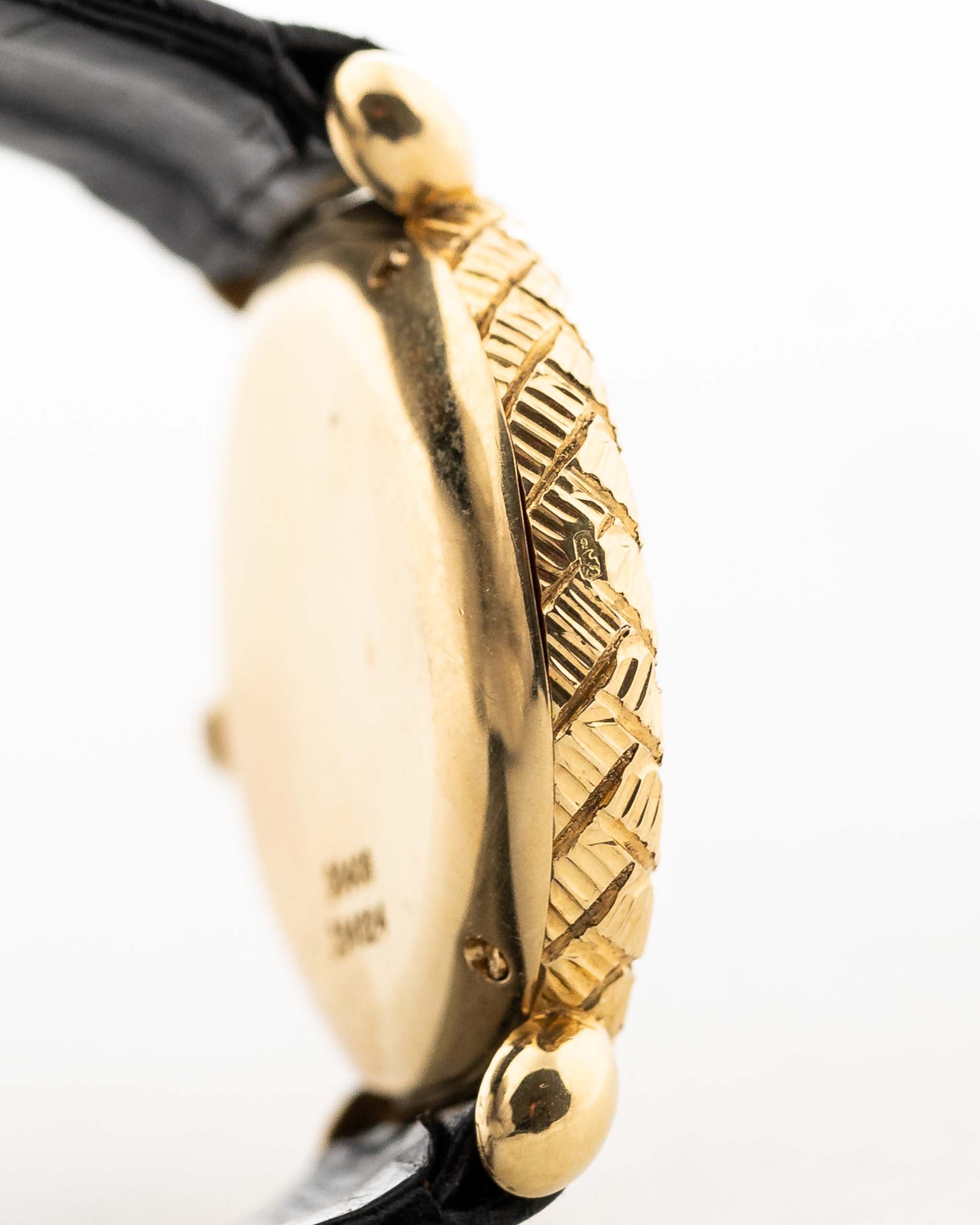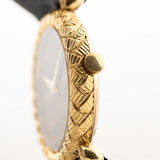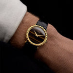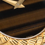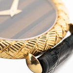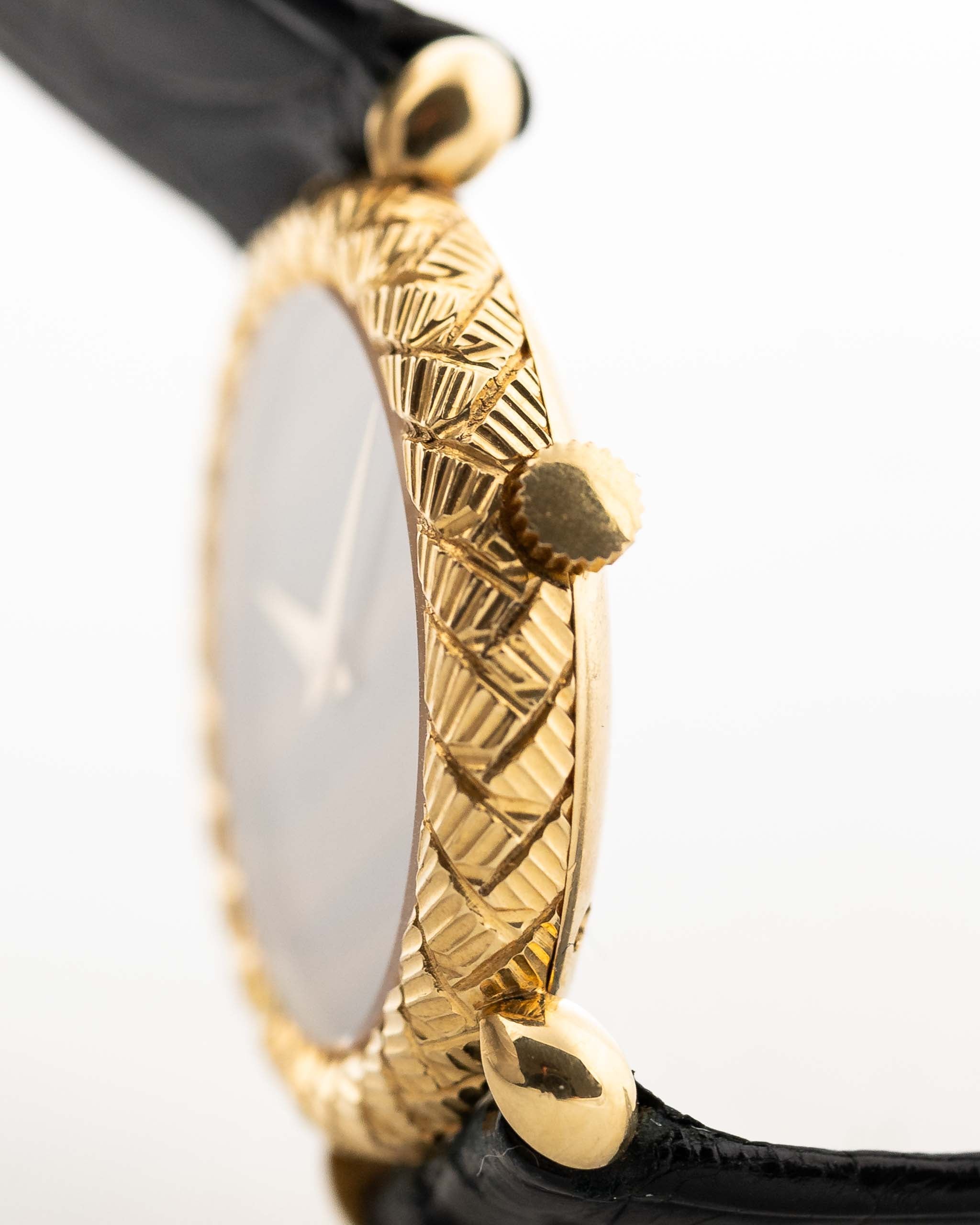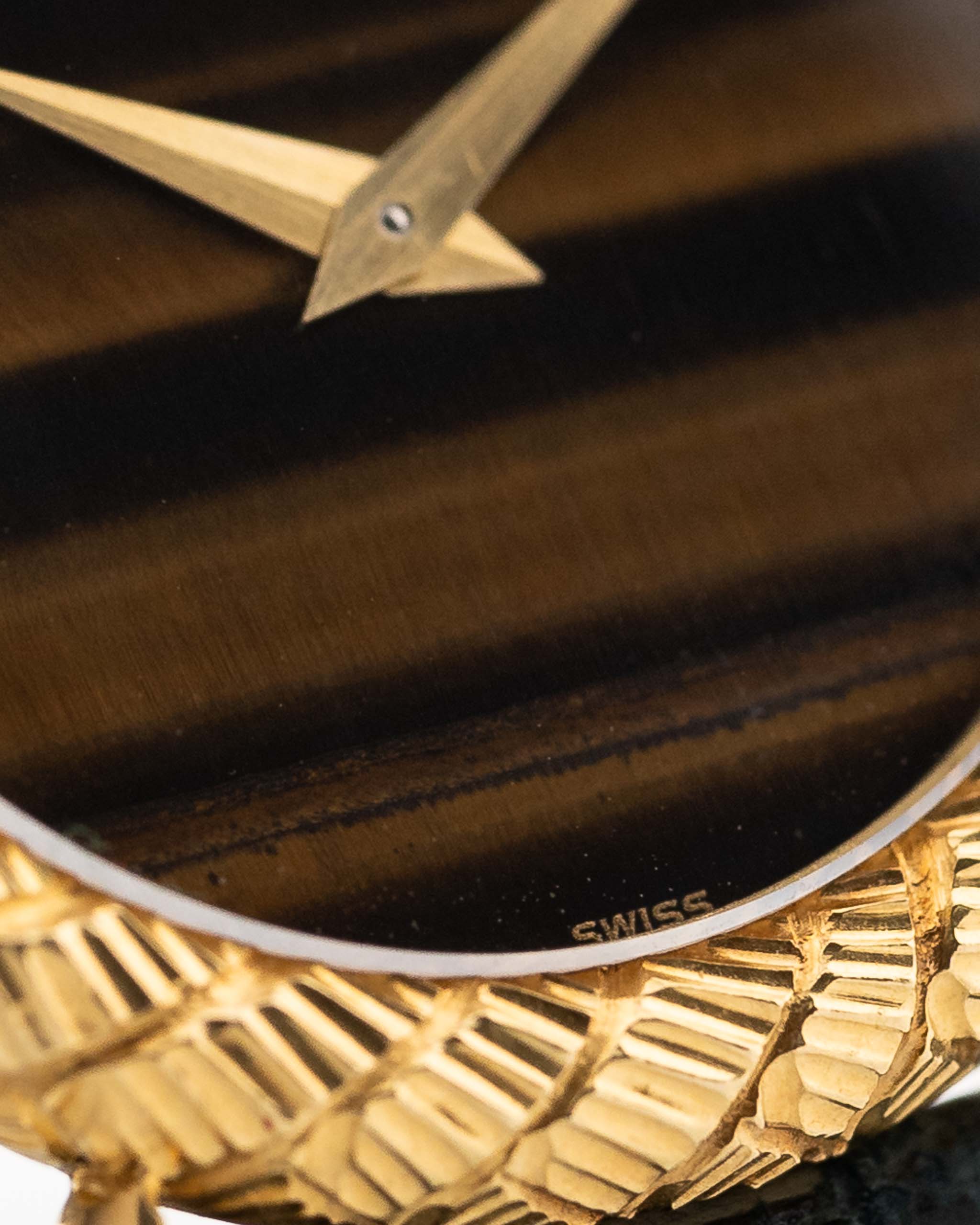Its slimness was not only a technical accomplishment, it also allowed the manufacture to fit dials made of hard stones while retaining a thin profile like this flawless 18k Piaget with a beautiful tiger eye stone dial. Special on this one is the filigree bezel finish in combination with the beautiful teardrop lugs.