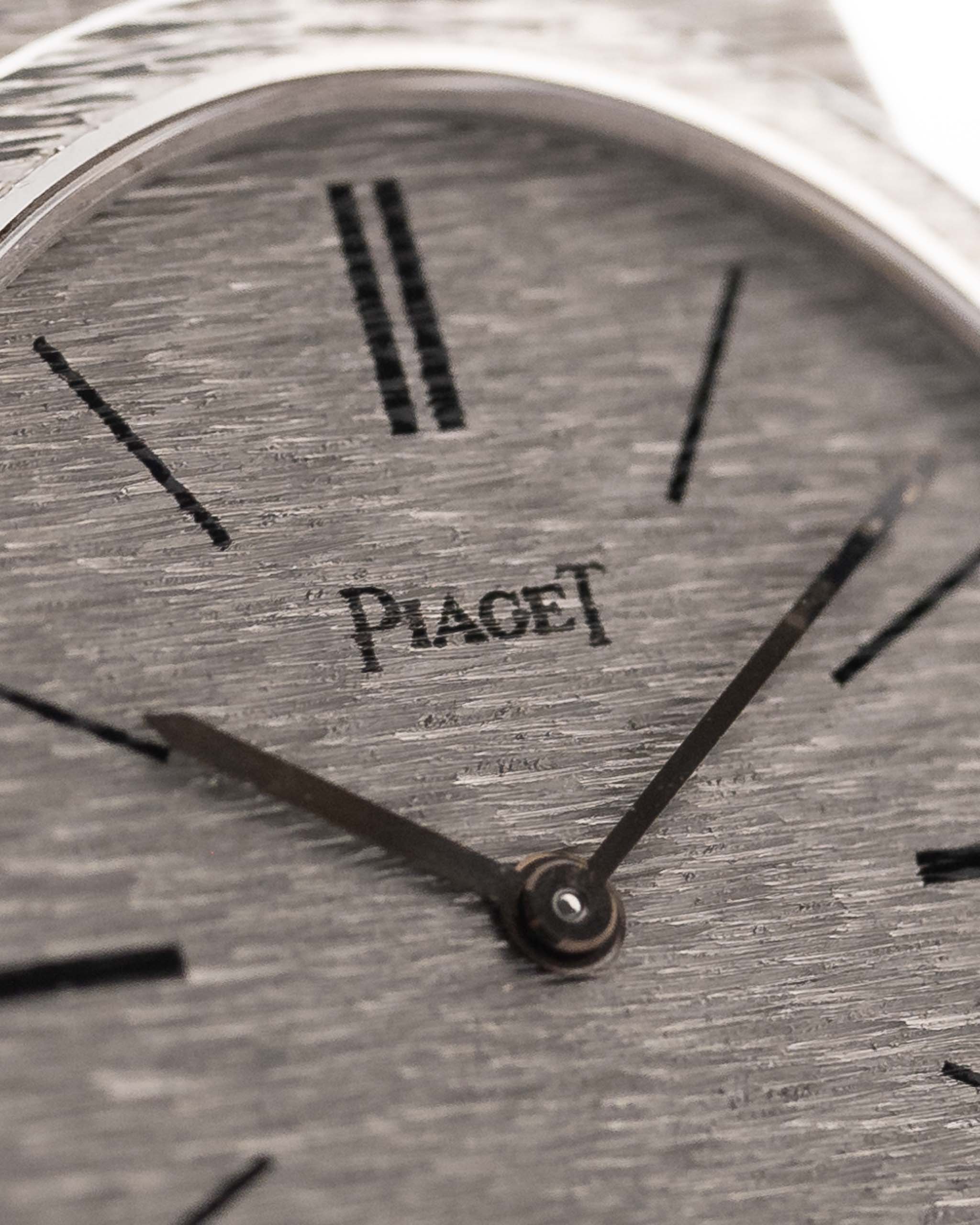 Piaget Watch - Piaget Ellipse 9821 Bark White Gold 1970s - white gold case and white gold bracelet closeup