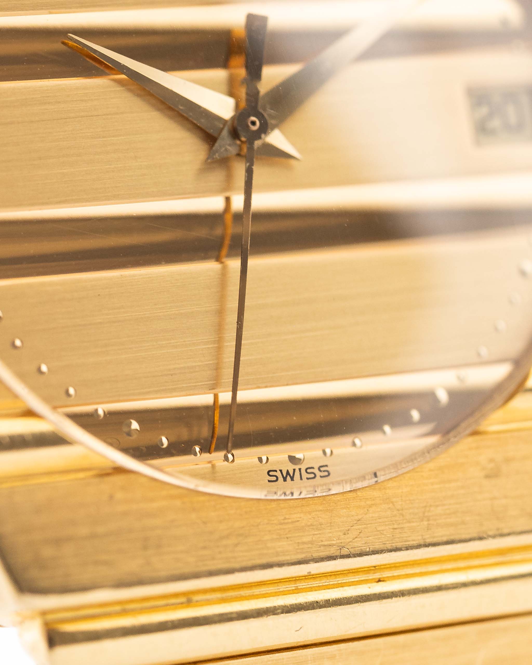 Photo of a Vintage Piaget Polo 15561 Date from the 1980s on a wrist. In Yellow Gold with 31mm Case, Quartz movement, Original Gold Dial and  Integrated 18k Gold Bracelet.