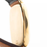 Vintage Piaget TV Watch 13773 Automatic Date 18k from the 1970s on a wrist. 31.5mm with 18k Yellow Gold Case, Automatic Caliber 12P1, Flawless Golden Dial and Original Leather Strap.