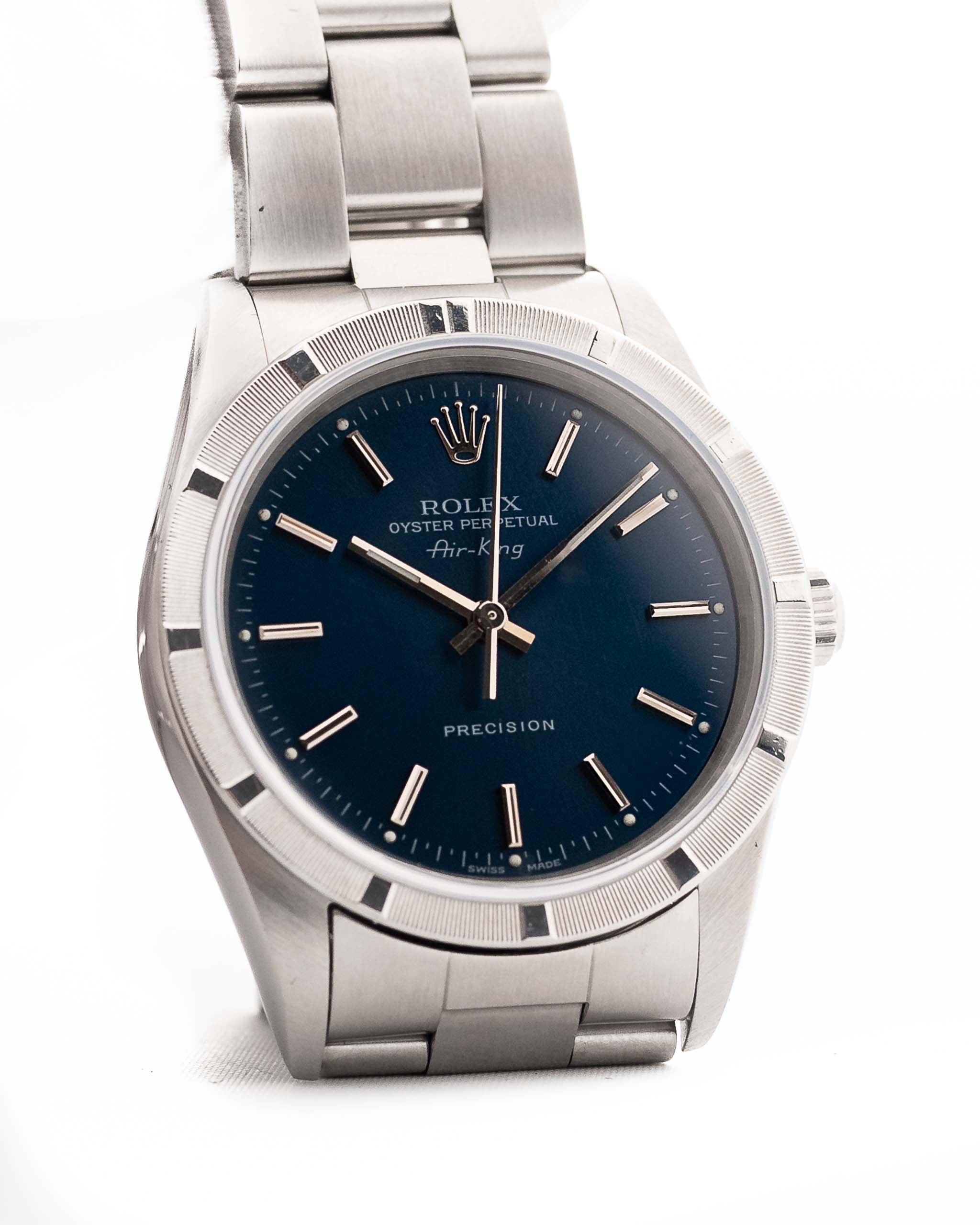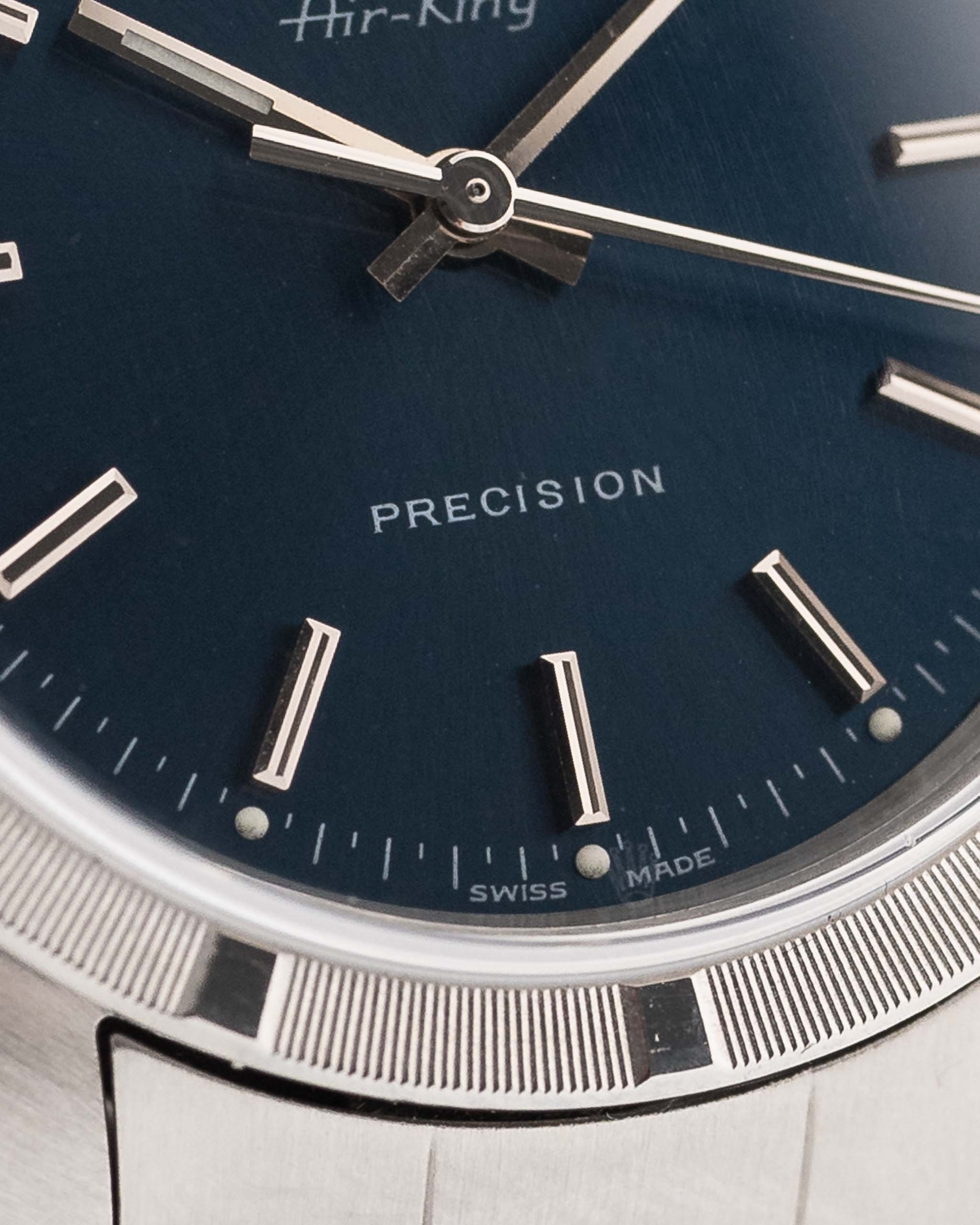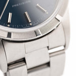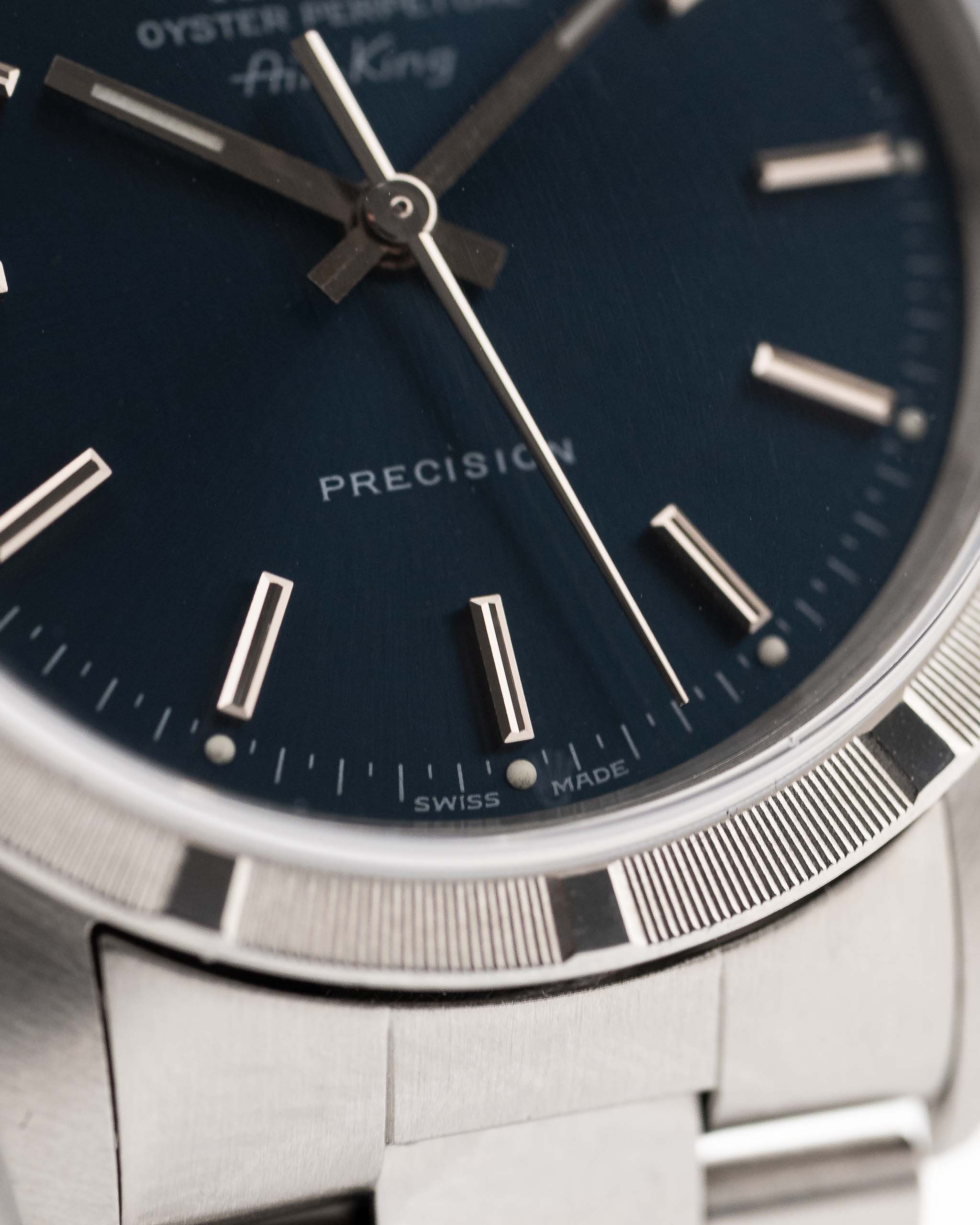 The Air-King is one of the last under-the-radar models by Rolex and has all the classic styling one could ask for from the Oyster Perpetual family. This reference made simplicity its asset - in this case, the clean deep blue dial is accented with applied indexes for clear legibility and the broad batten handset adds an overall elegant look.