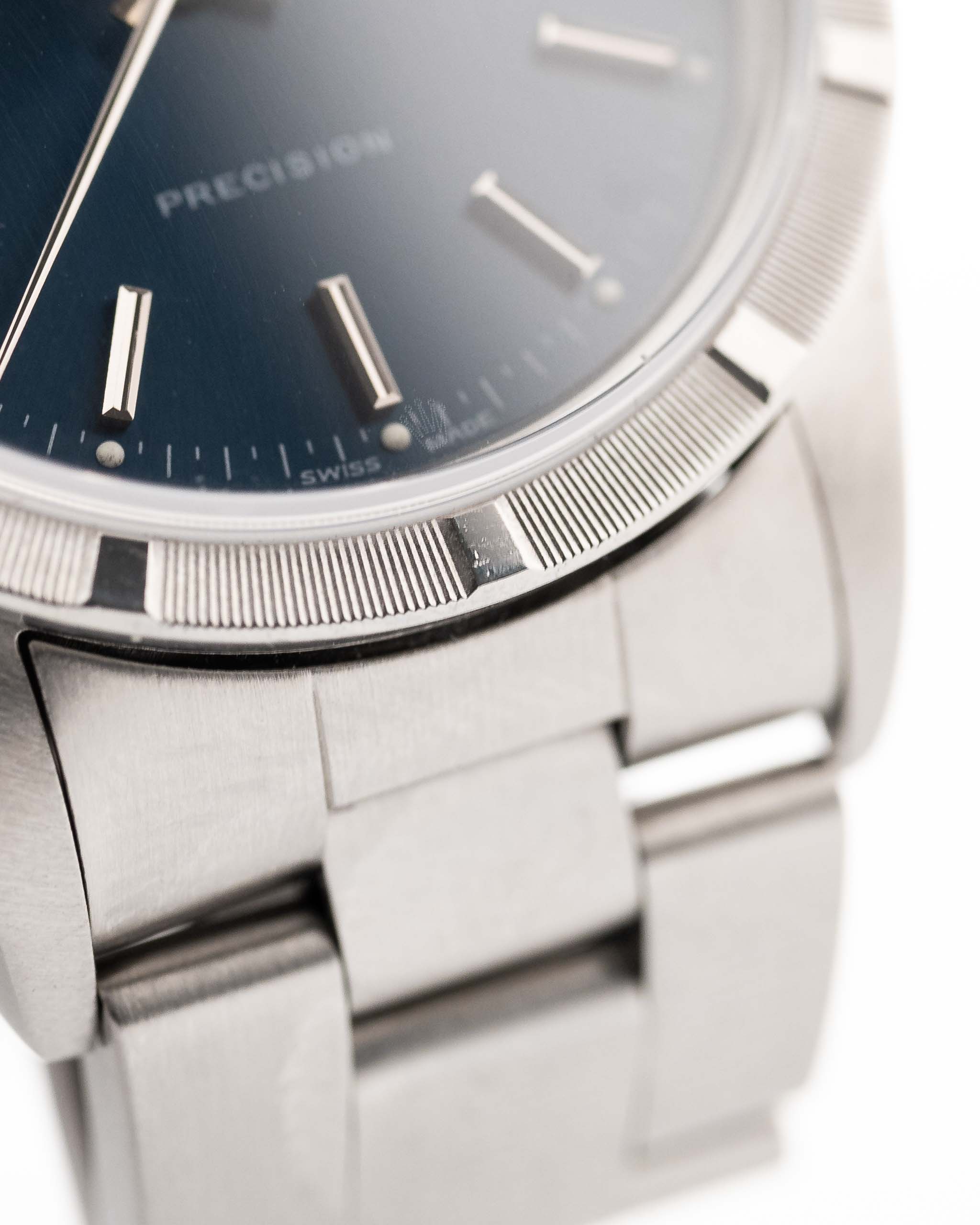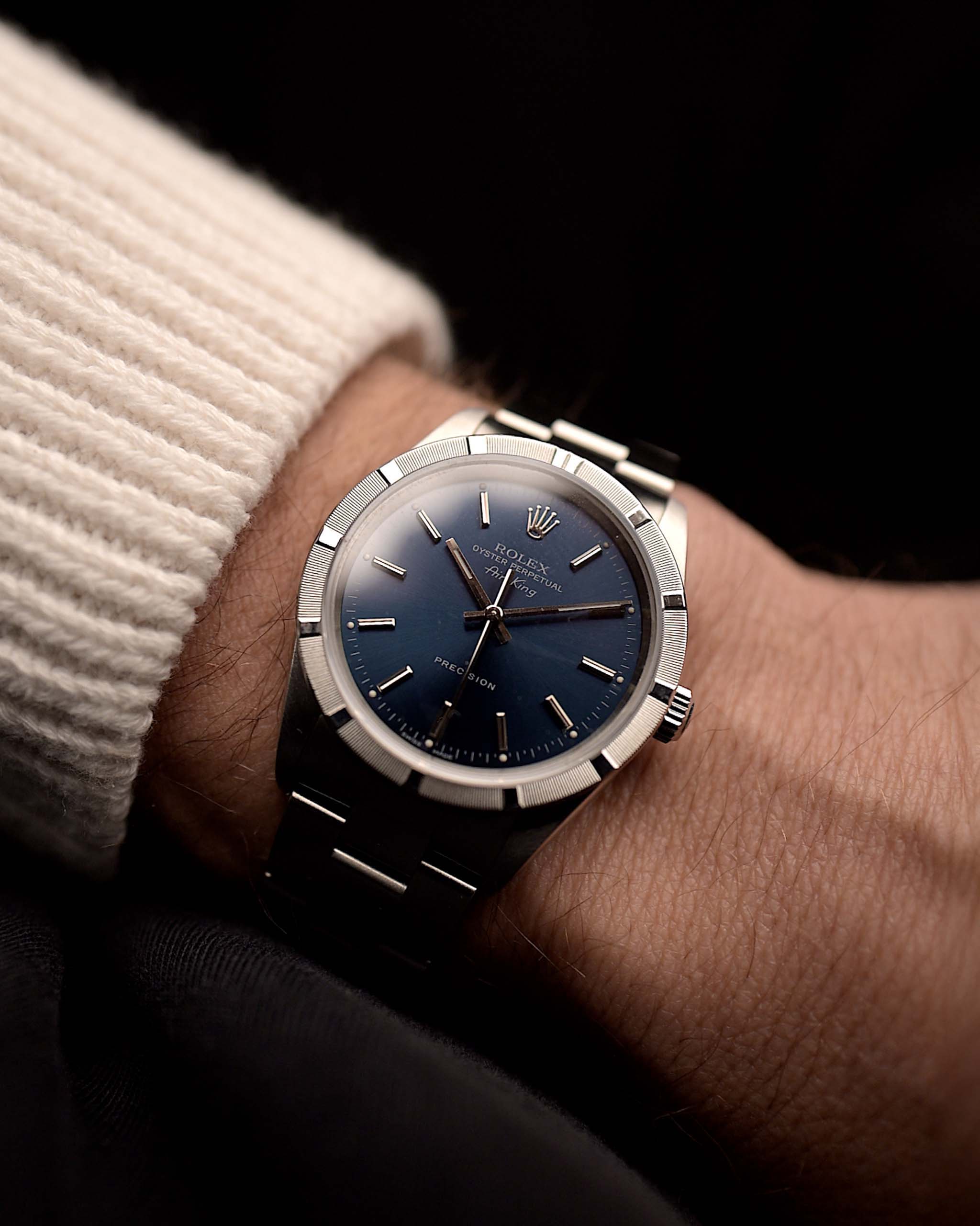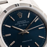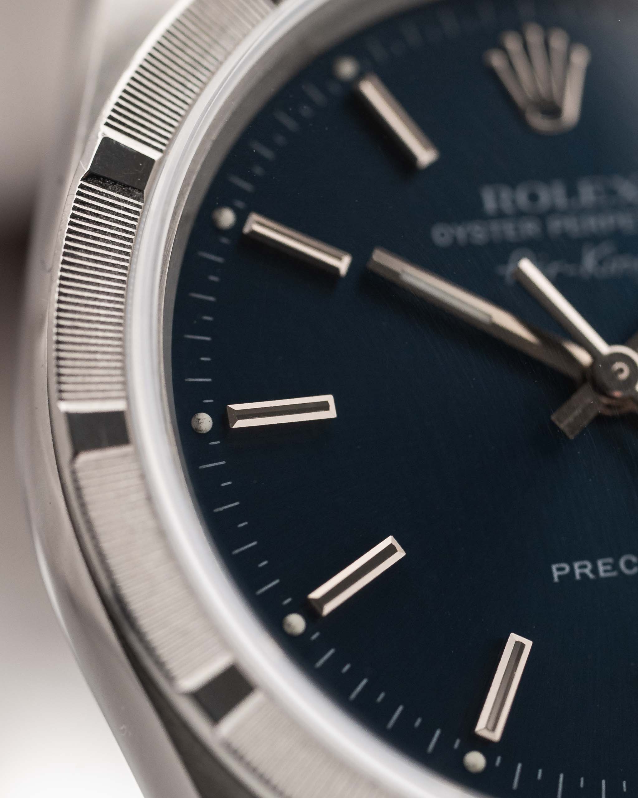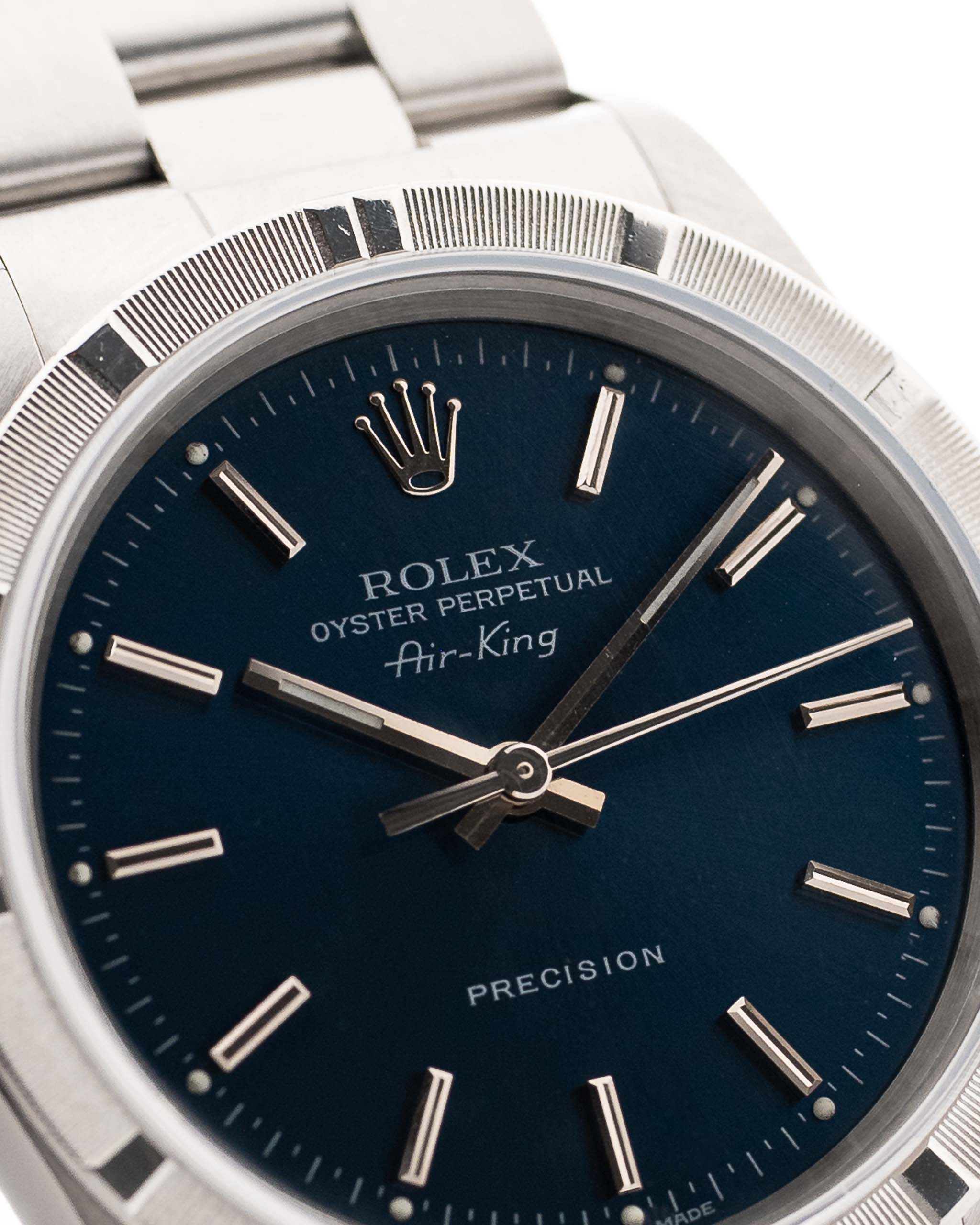 The Air-King is one of the last under-the-radar models by Rolex and has all the classic styling one could ask for from the Oyster Perpetual family. This reference made simplicity its asset - in this case, the clean deep blue dial is accented with applied indexes for clear legibility and the broad batten handset adds an overall elegant look.