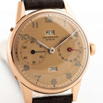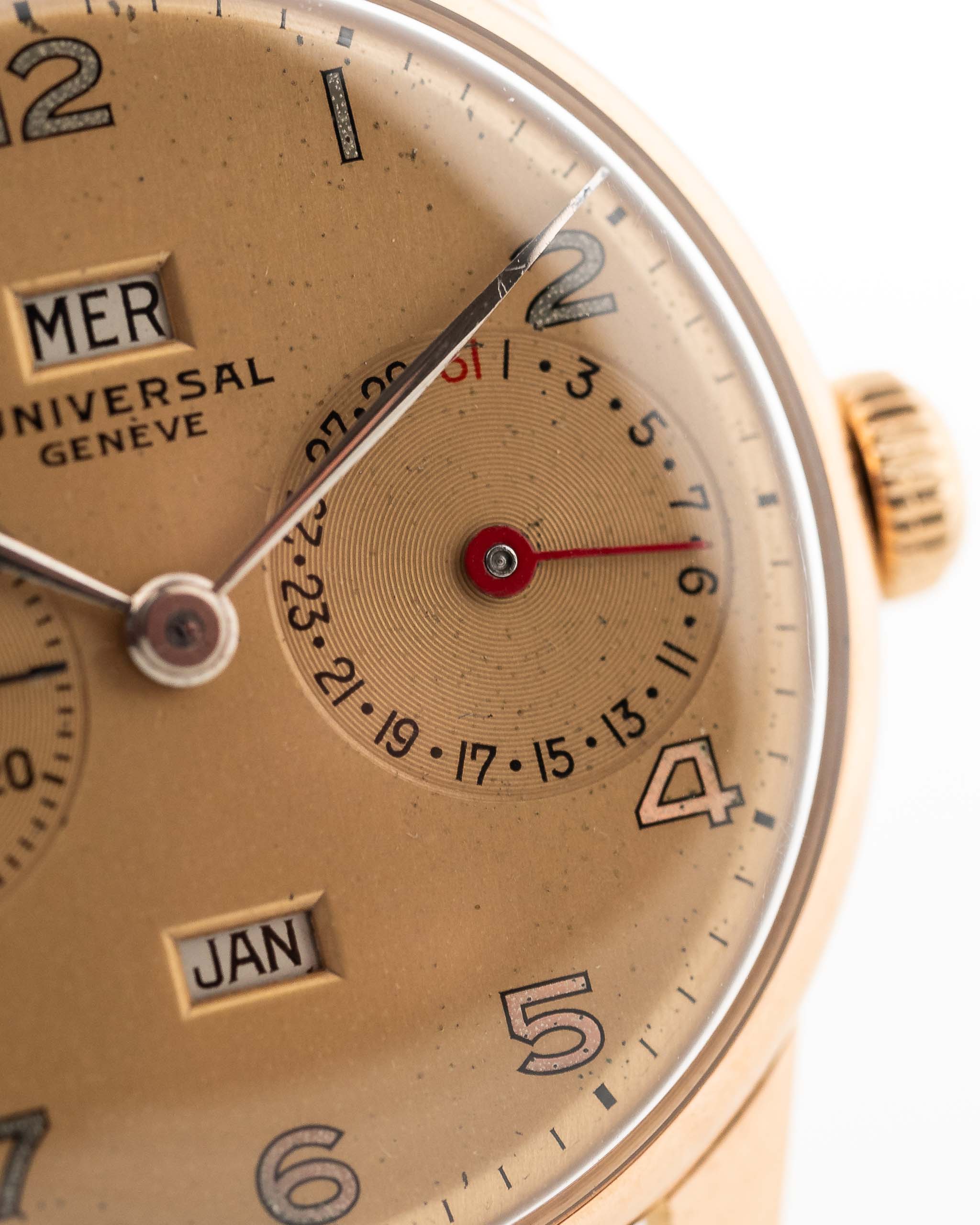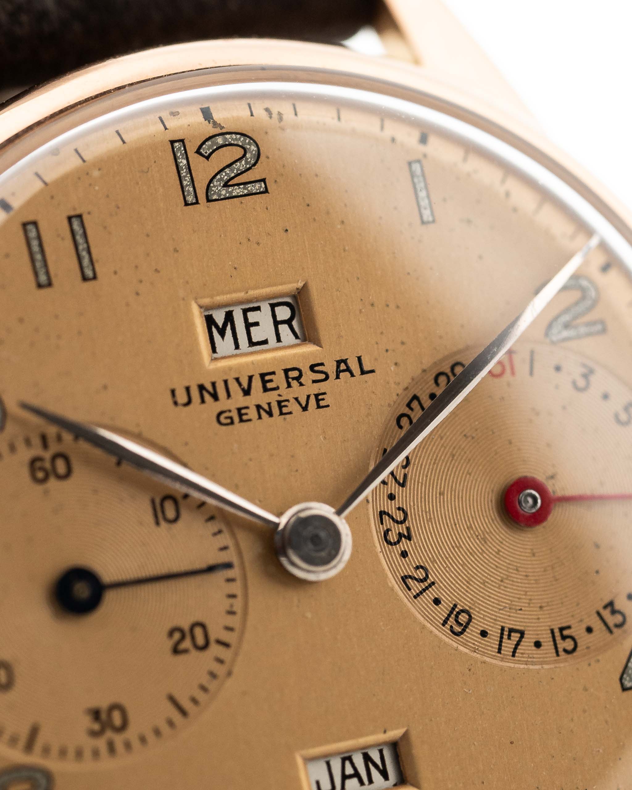 Photo of Universal Genève 18k Rose Triple Calendar 1940s on wrist - reference- 11301 - GOLDAMMER
