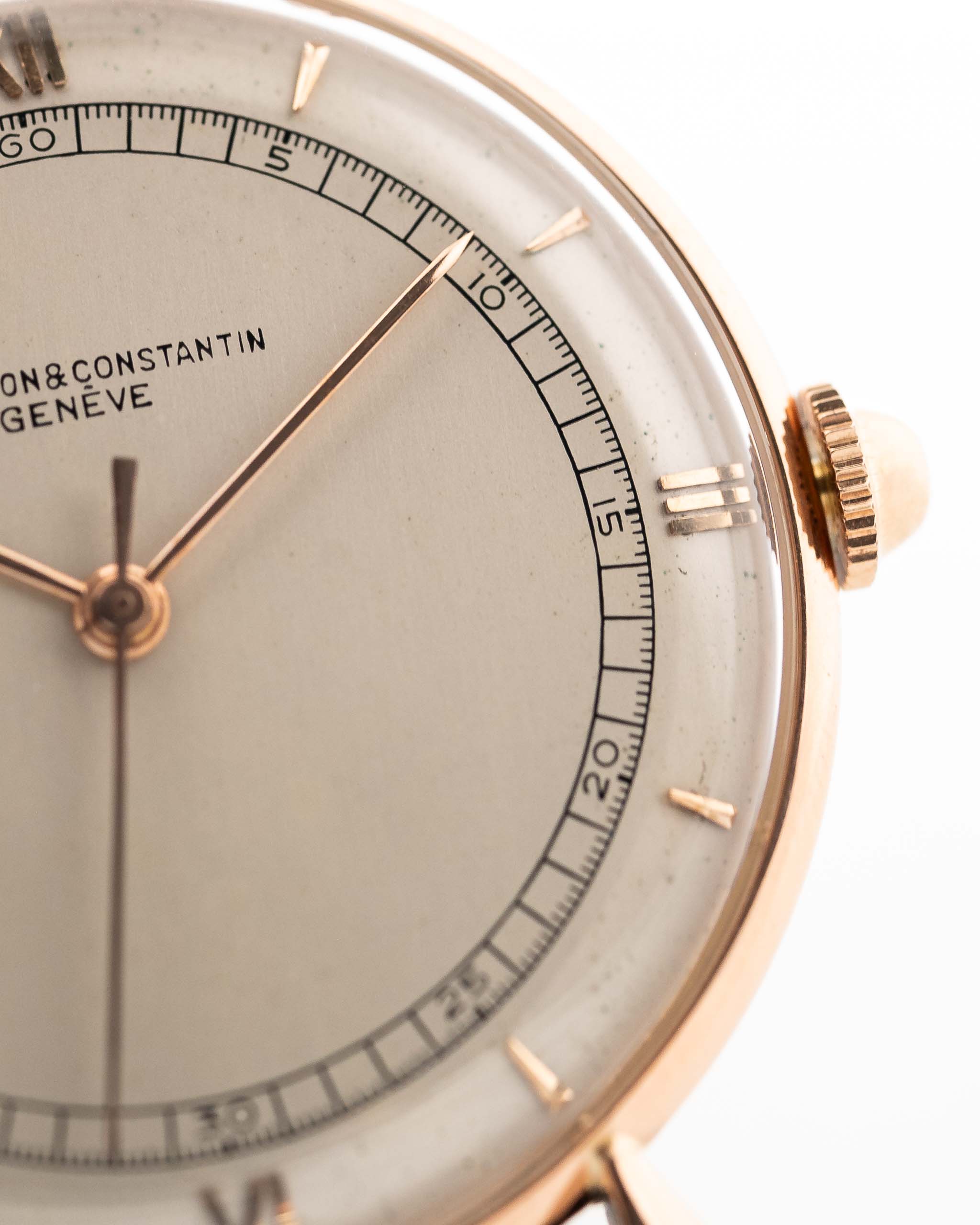 Vintage Cacheron Constantin watch - Vacheron Constantin 18k Rose Gold Teardrop Railroad 1940s white/silver colored dial closeup