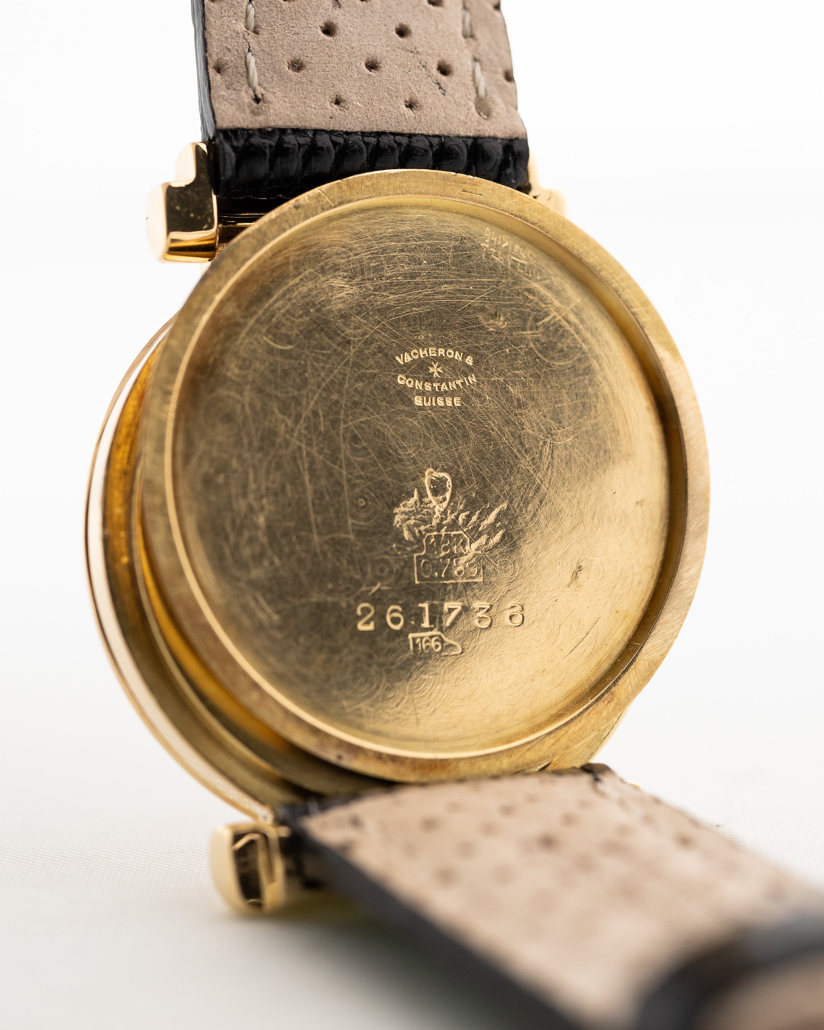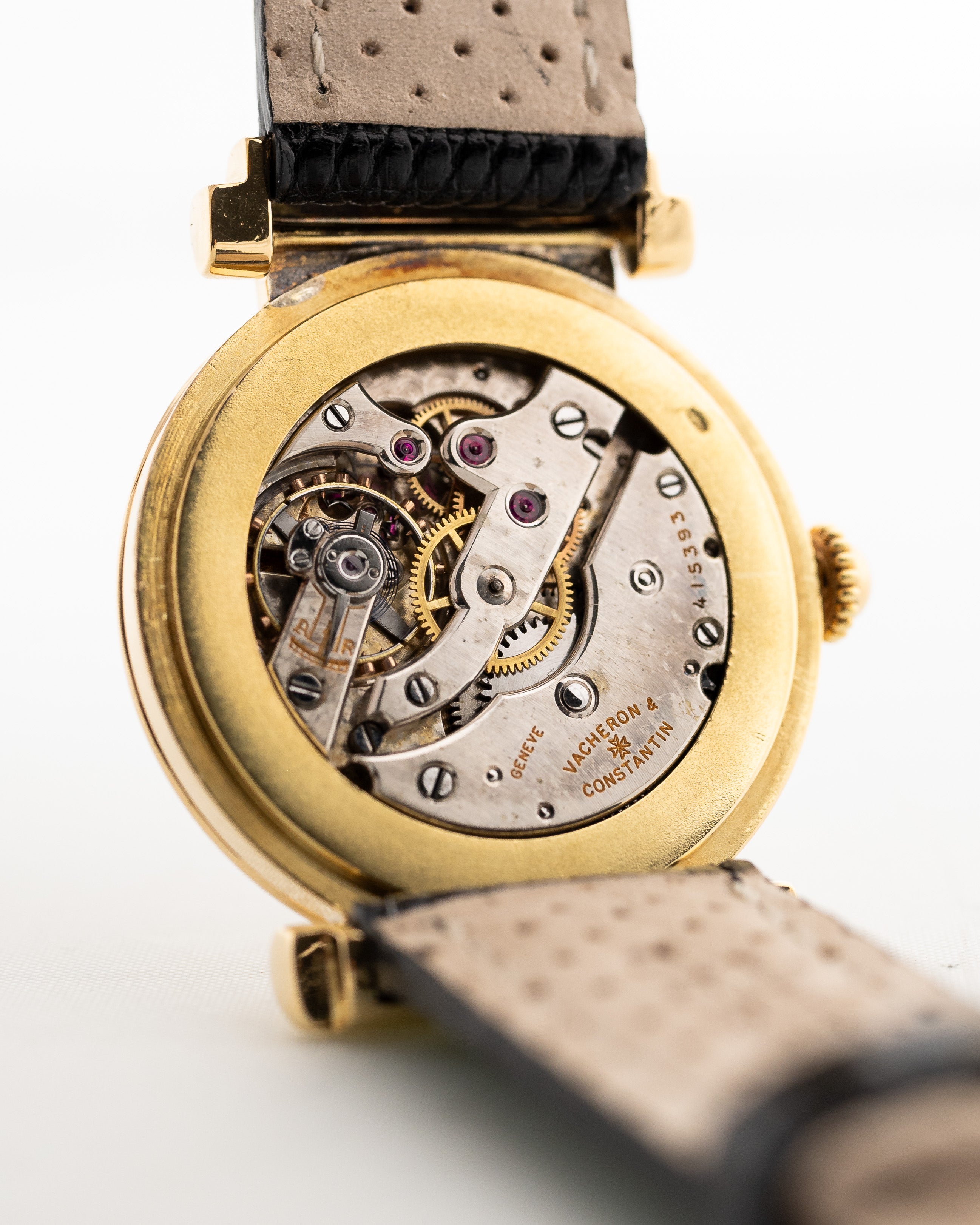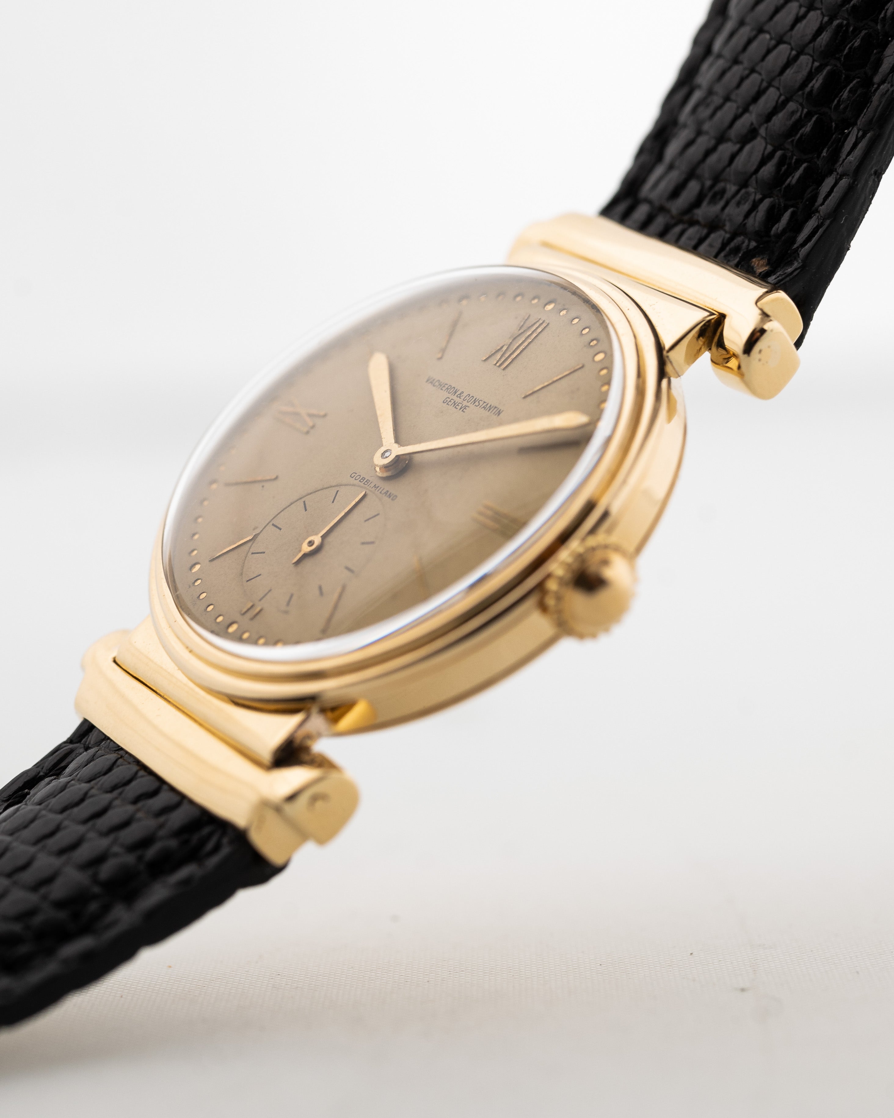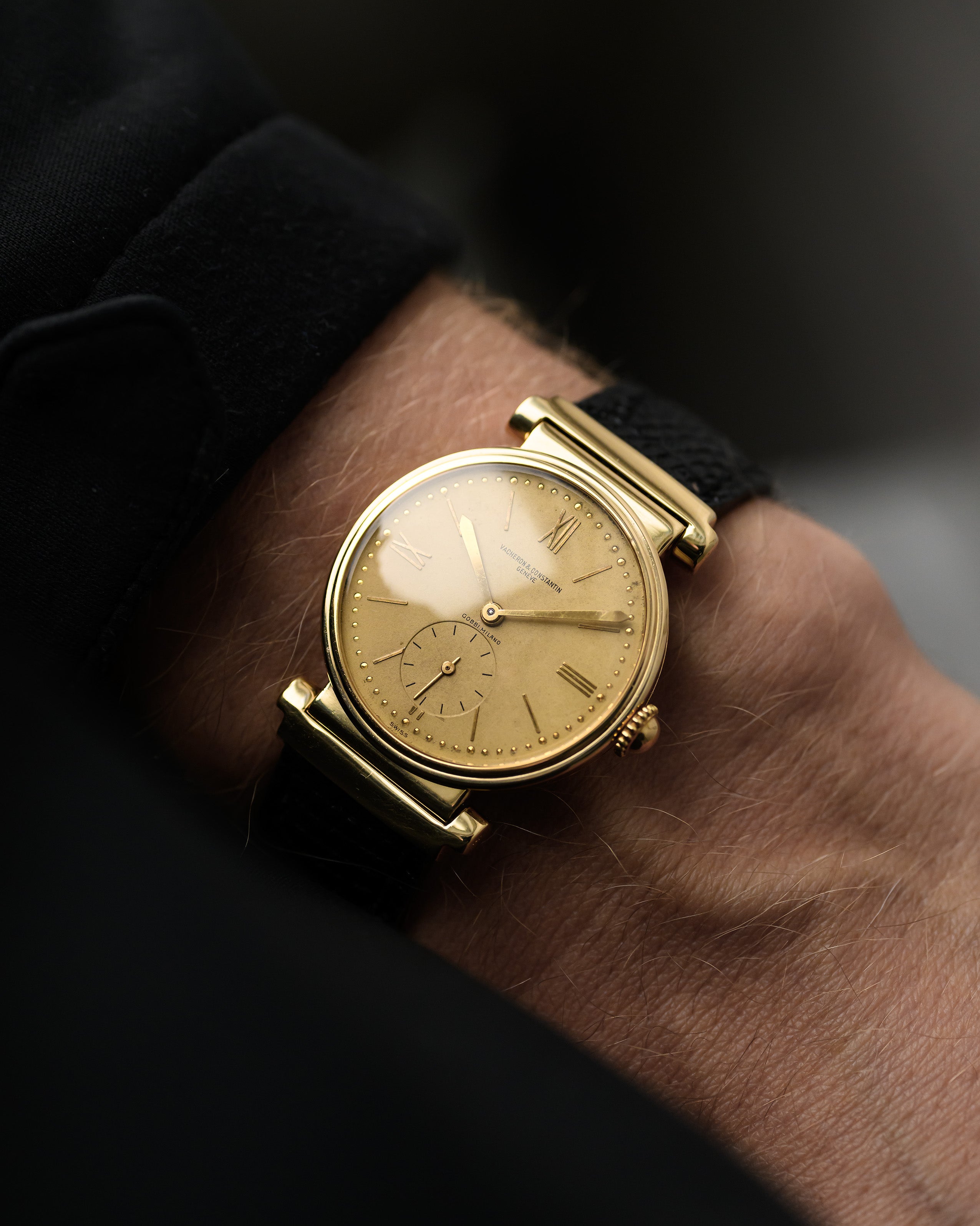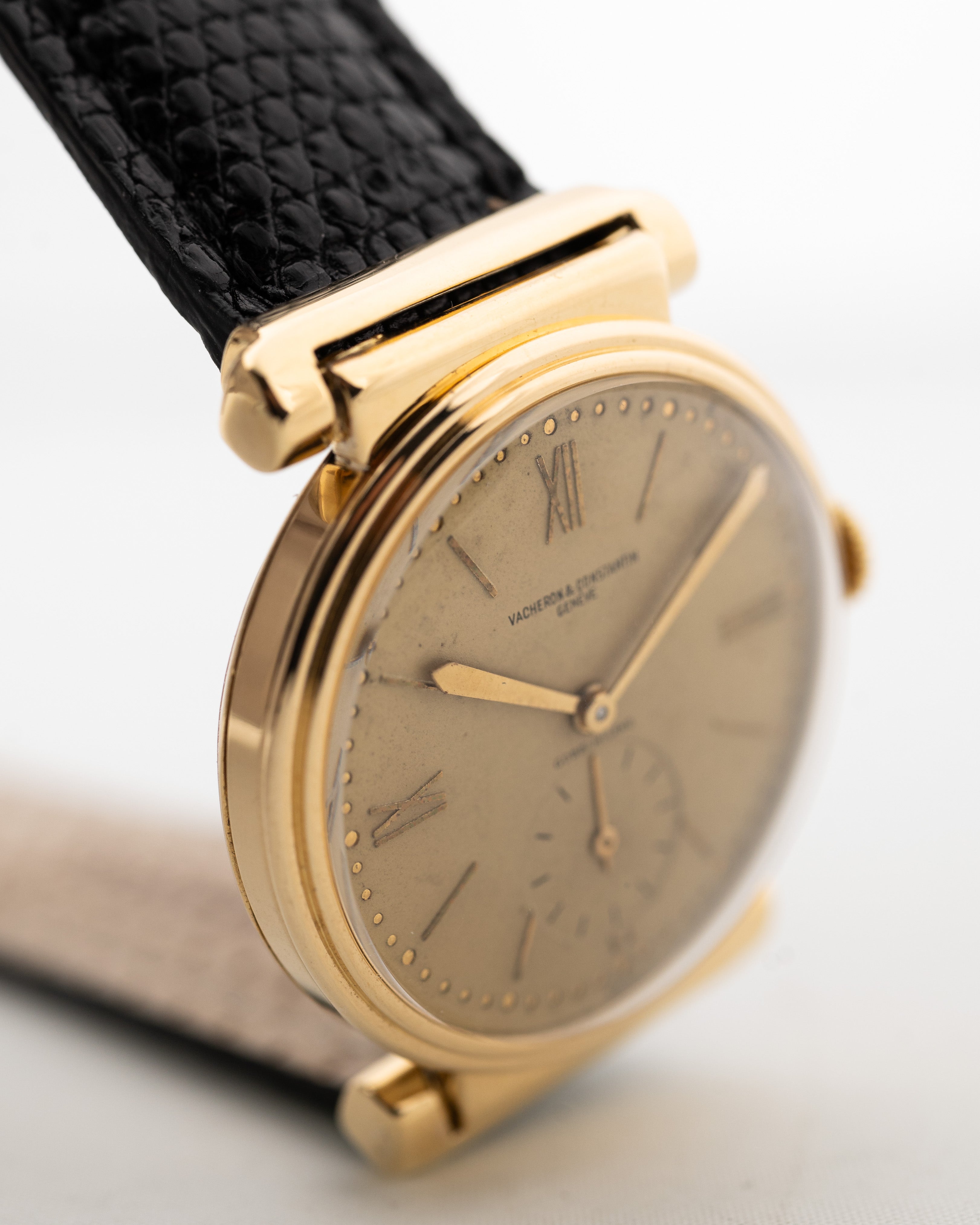 Here we have a beautifully finished 18k yellow gold Vacheron Constantin dress watch from the 1930s. This might be a 1/1 piece due to the very rare hooded lugs and the double signature dial by the Italien Dealer Gobbi Milano.