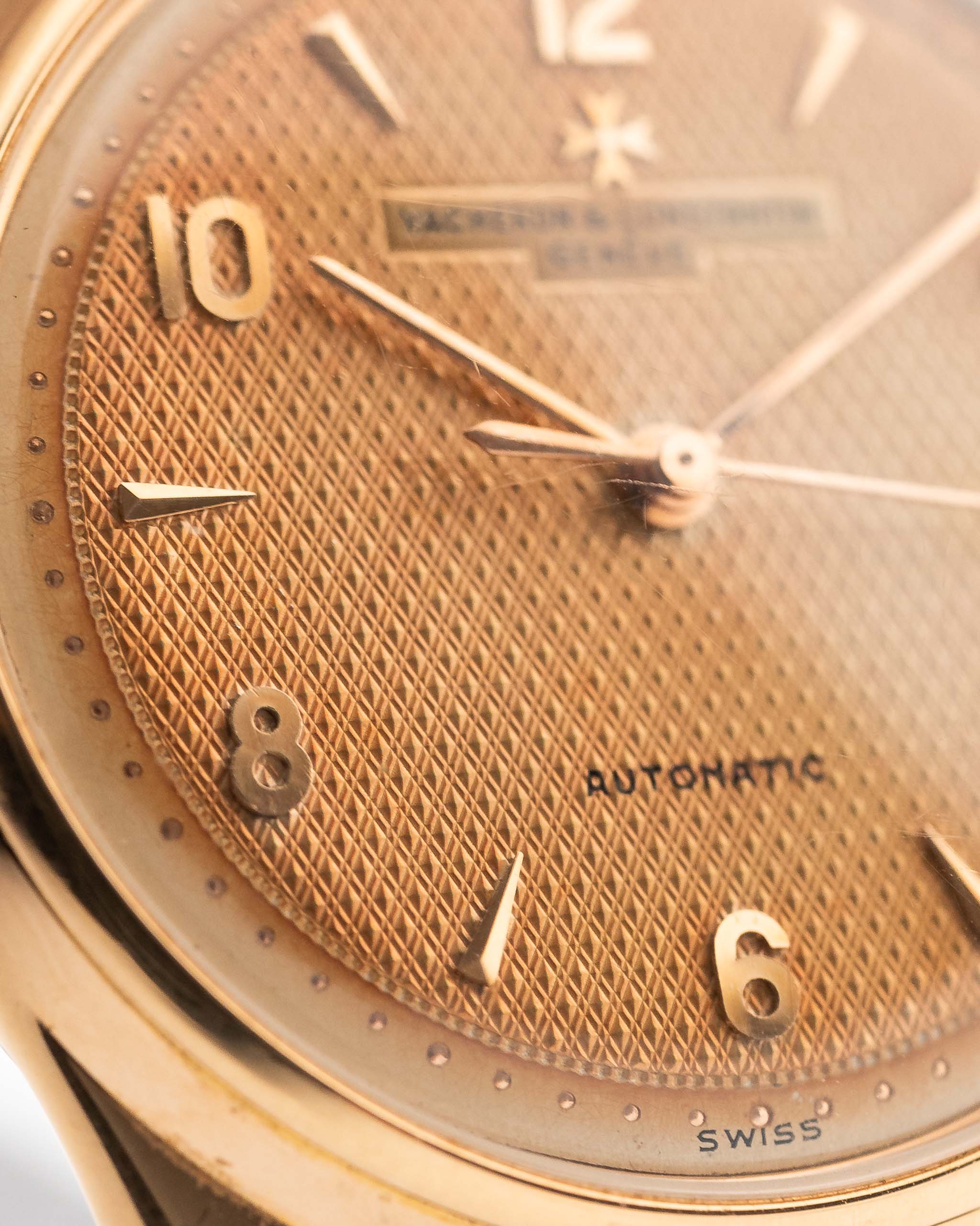 Here we have a beautifully finished very rare Vacheron Constantin dress watch from the 1950s with stunning 18k rose gold case and an amazingly designed Guilloché dial with harmonious layout and a gorgeous warm patina.