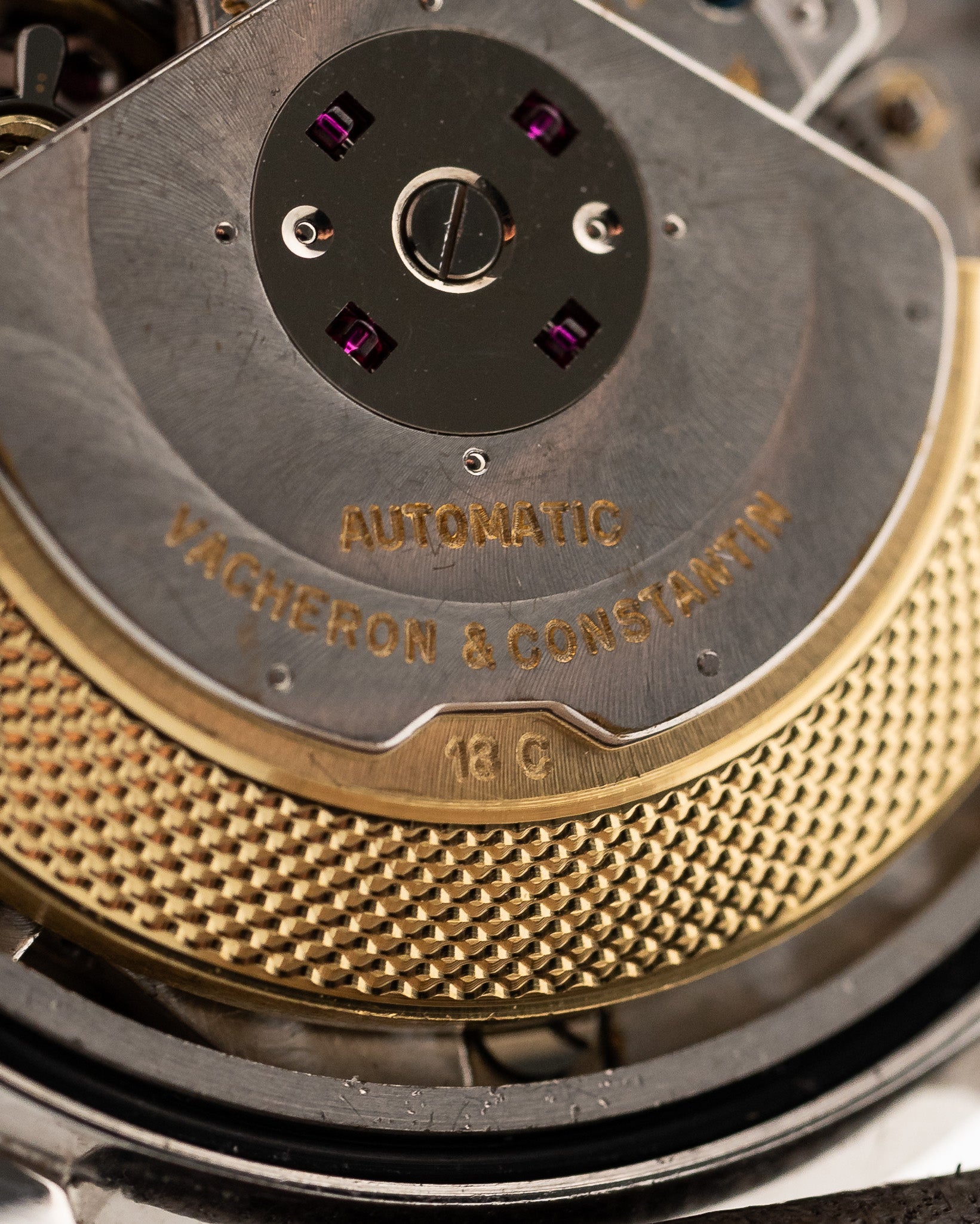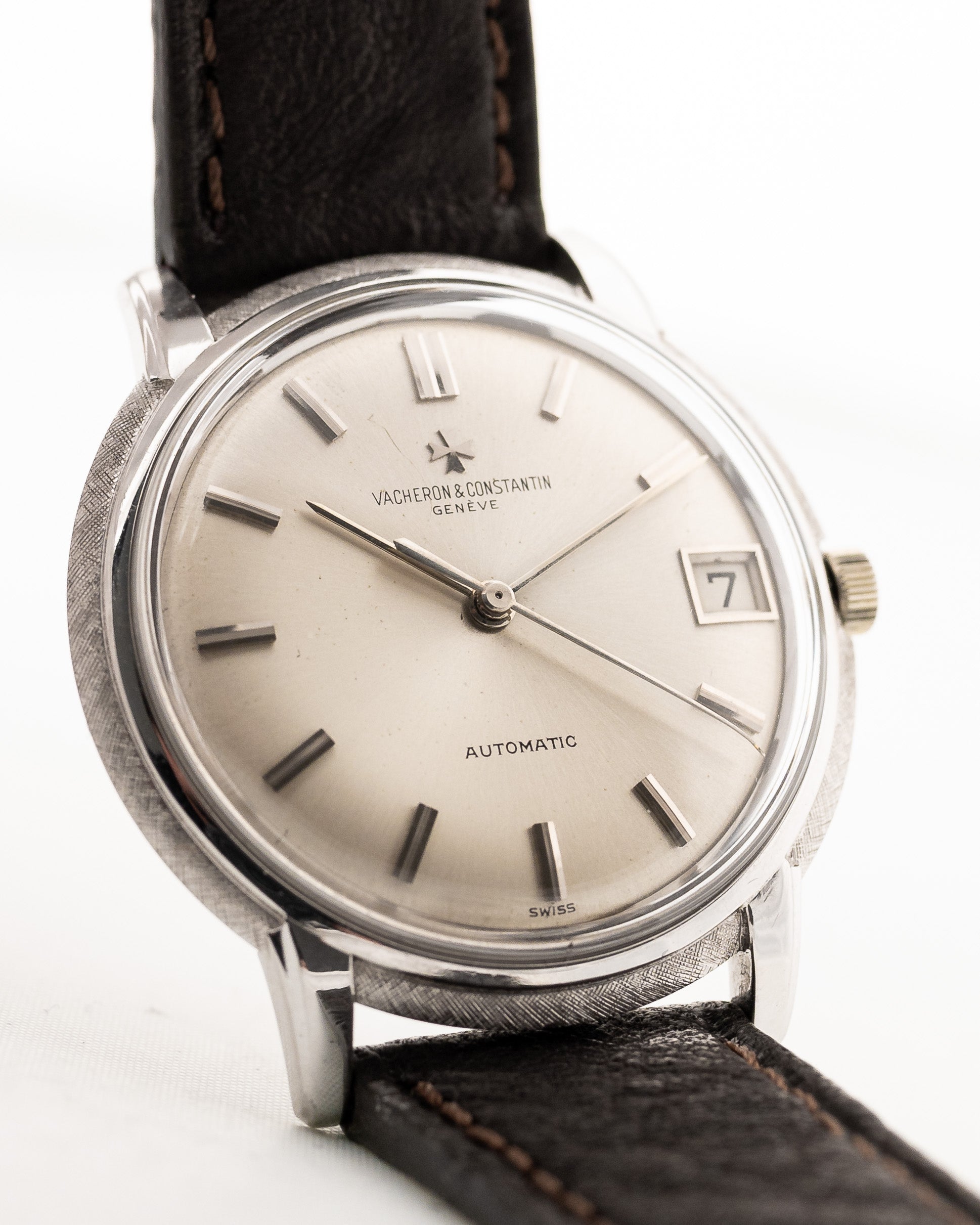 This piece has a silver sunburst dial with applied 18k stick hour markers and clean hands. The icing on the cake is the applied Vacheron Constantine logo with the maltese cross and the Florentine finished bezel with a rare 18k white gold case.
