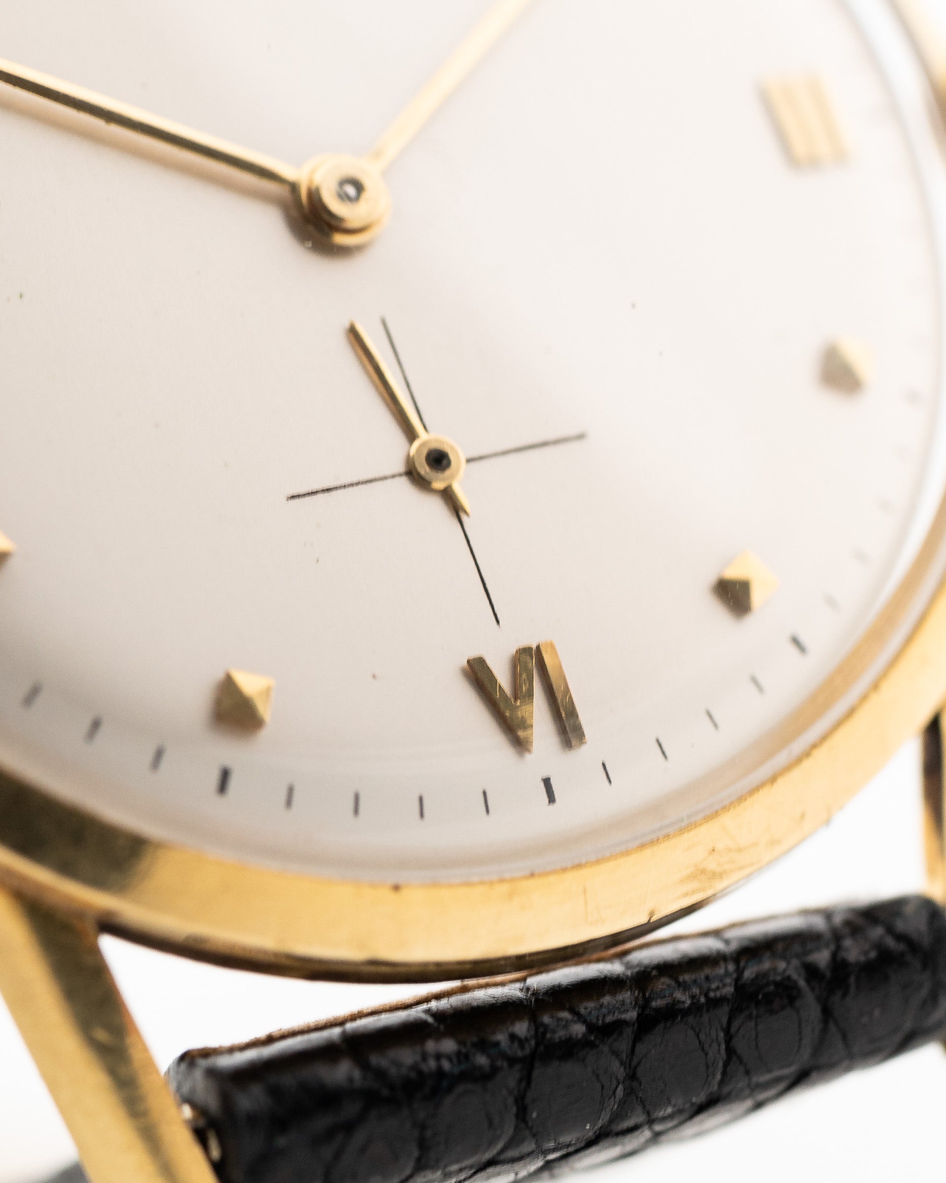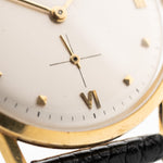 Here we have a beautifully finished Vacheron Constantin dress watch from 1960s with an amazingly designed clean silver colored dial, sub second and filigree yellow gold roman numeral and square hour markers and hands.