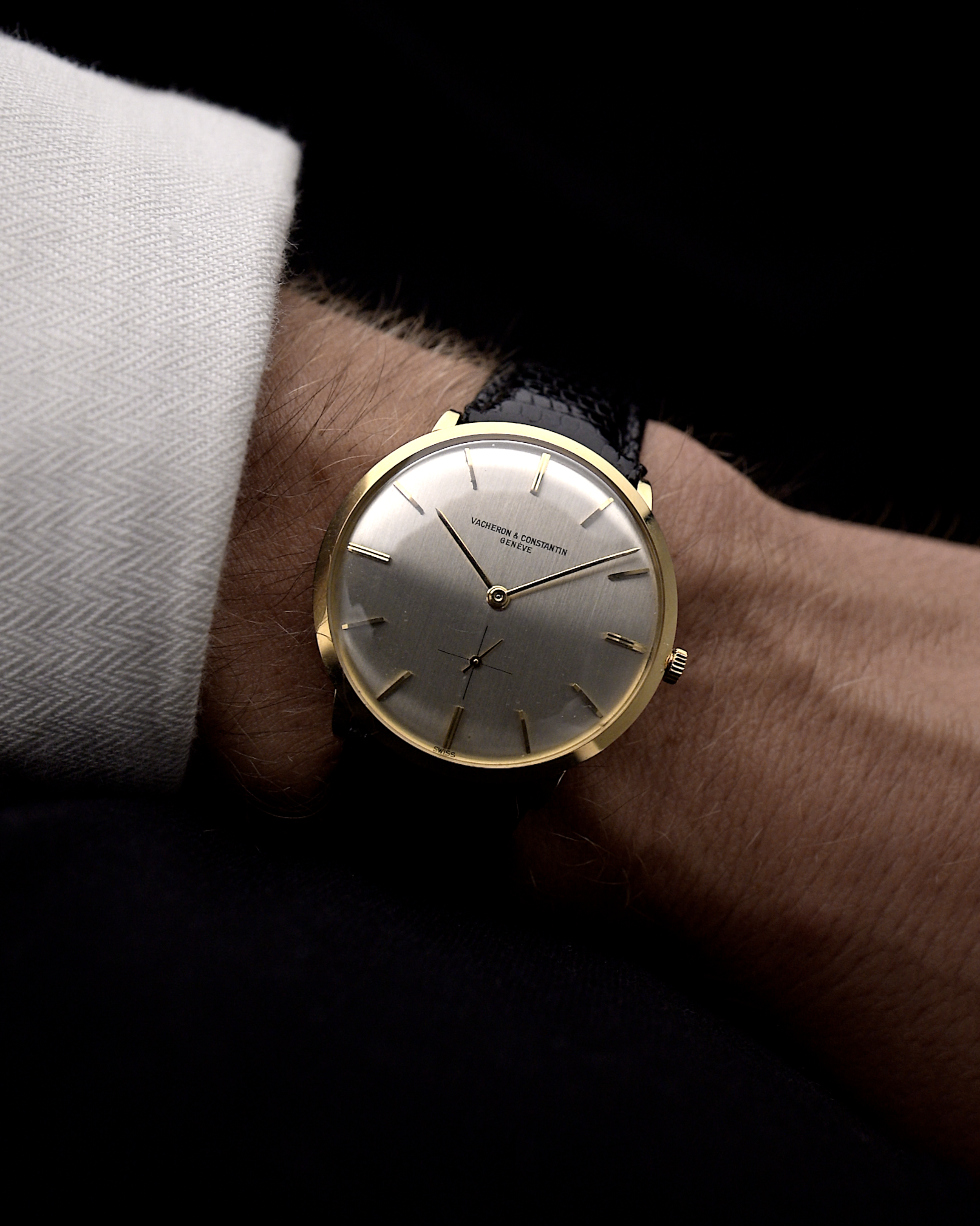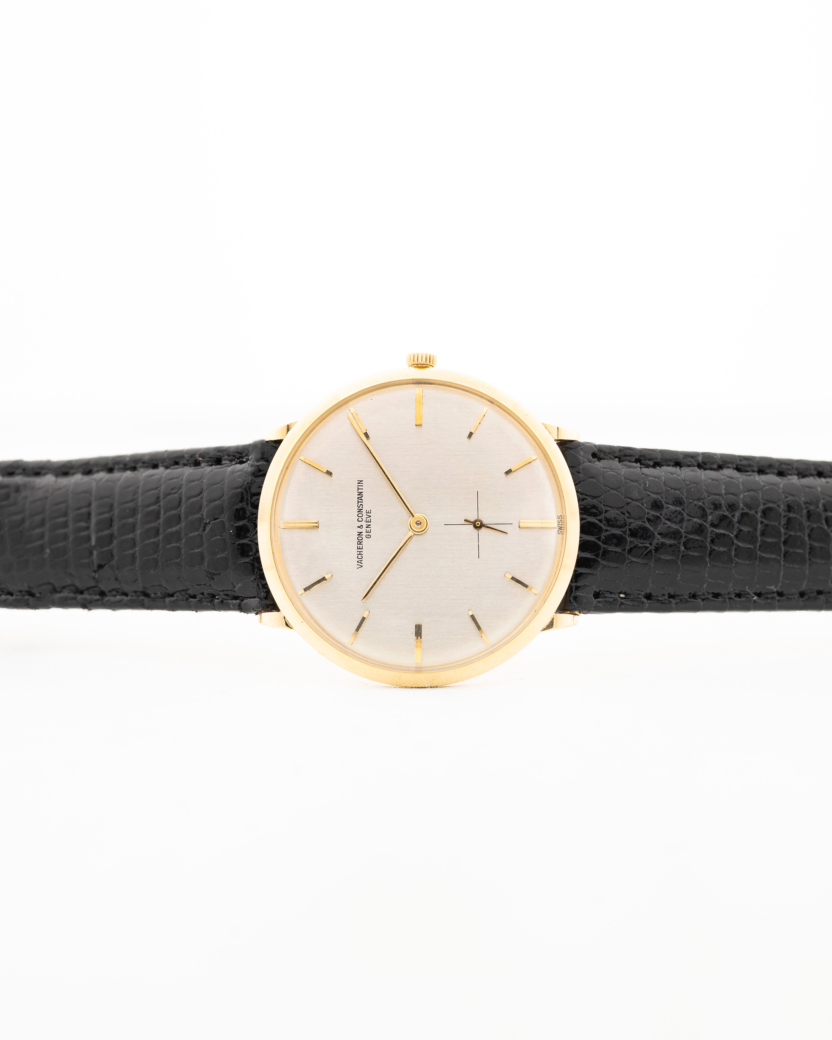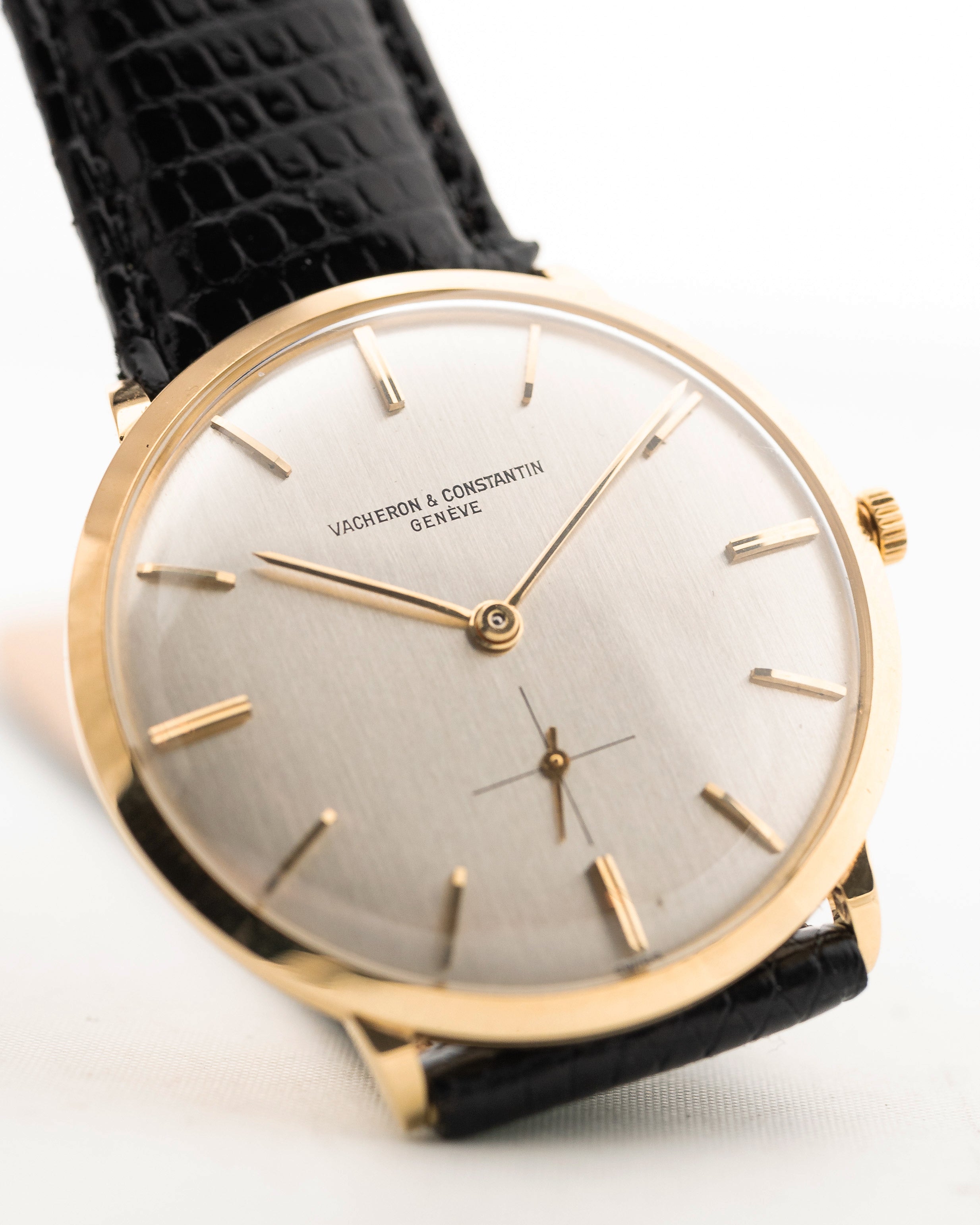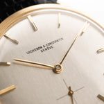 Here we have a beautifully finished Vacheron Constantin dress watch from the 1970s with an amazingly designed silver dial, sub second and filigree yellow gold hour markers and hands.