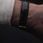 • black leather strap fitting up to 21 cm wrist size / 1.6 mm thick