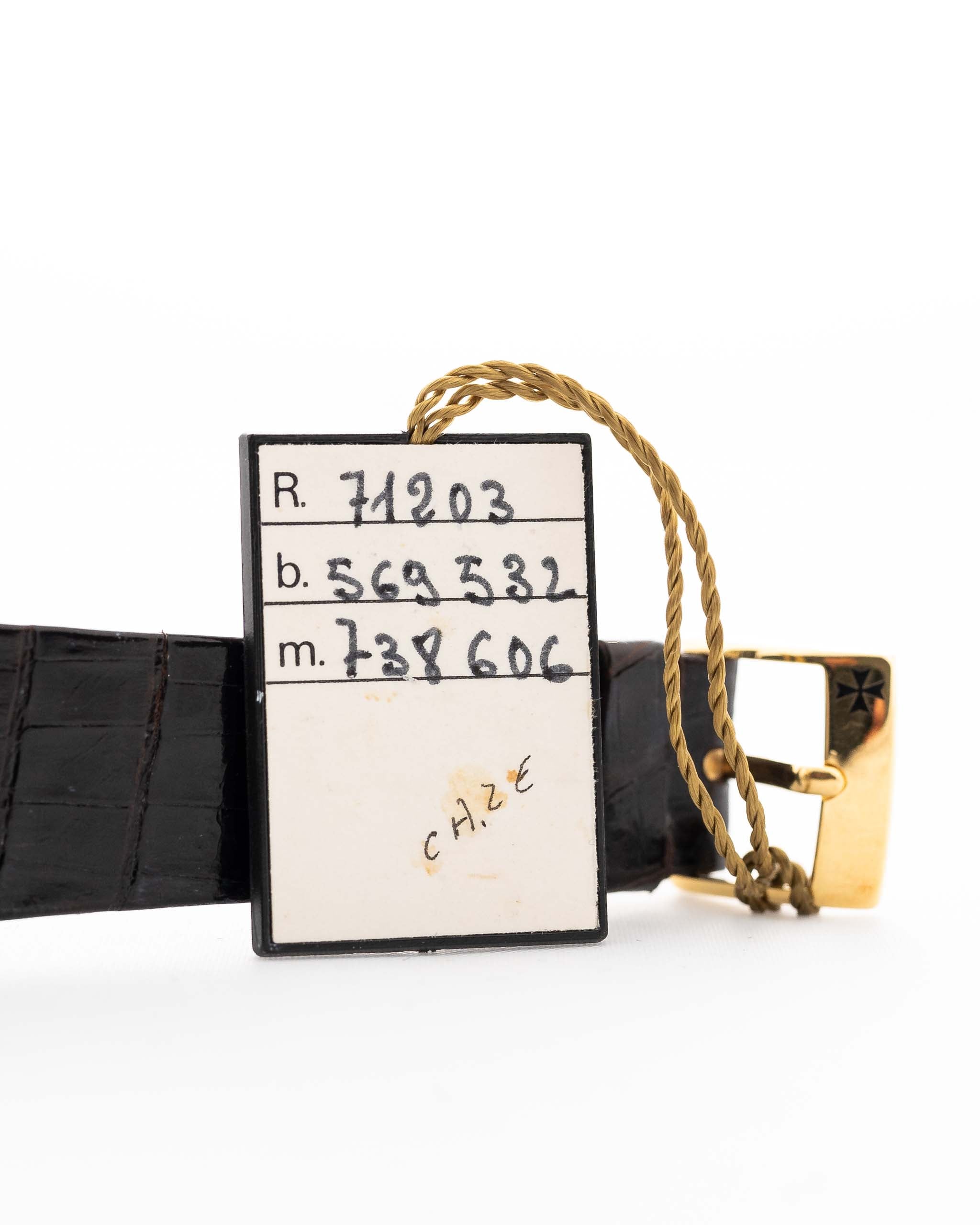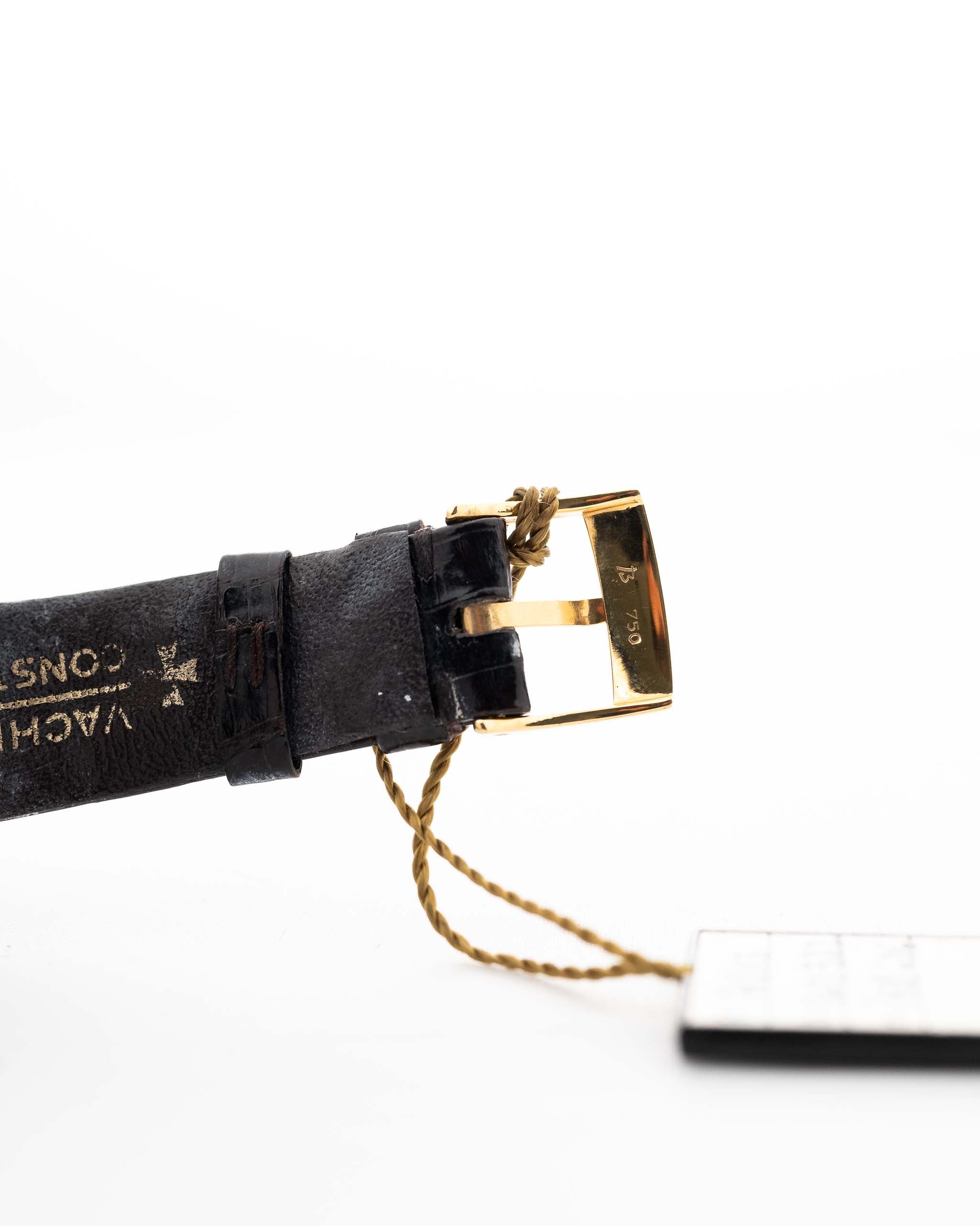 This particular piece is notable for its elegant dial layout -  golden major roman twelve and six with a fine golden frame and stick hand set. It comes in fantastic overall condition with original Vacheron Constantin leather strap and 18k yellow gold buckle.