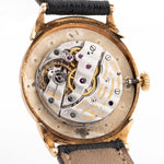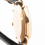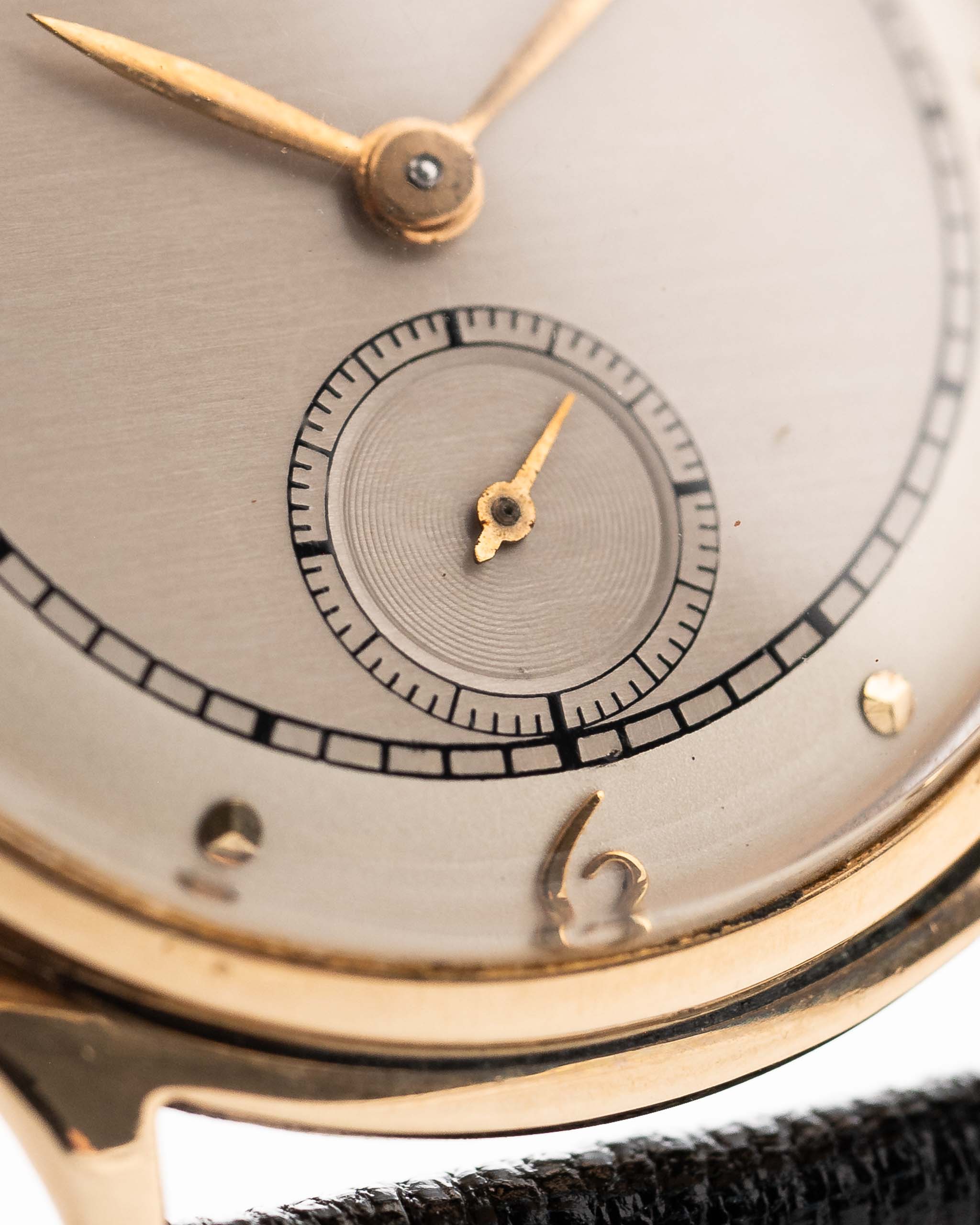 Closeup Photo of a Vacheron Constantin Sub Second 18k Railroad from the 1940s. 29mm case in 14k Rose Gold with Manual wind movement, Original white-silver dial and Leather Strap.