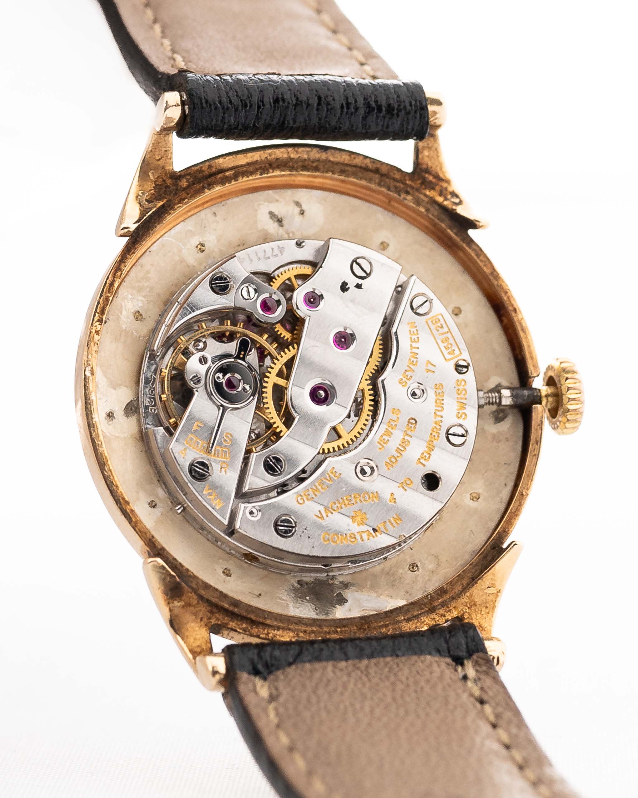 Here we have a beautifully finished Vacheron Constantin dress watch from the 1940s with fancy lug design, 3, 6, 9 12 dial layout with railroad minute track.