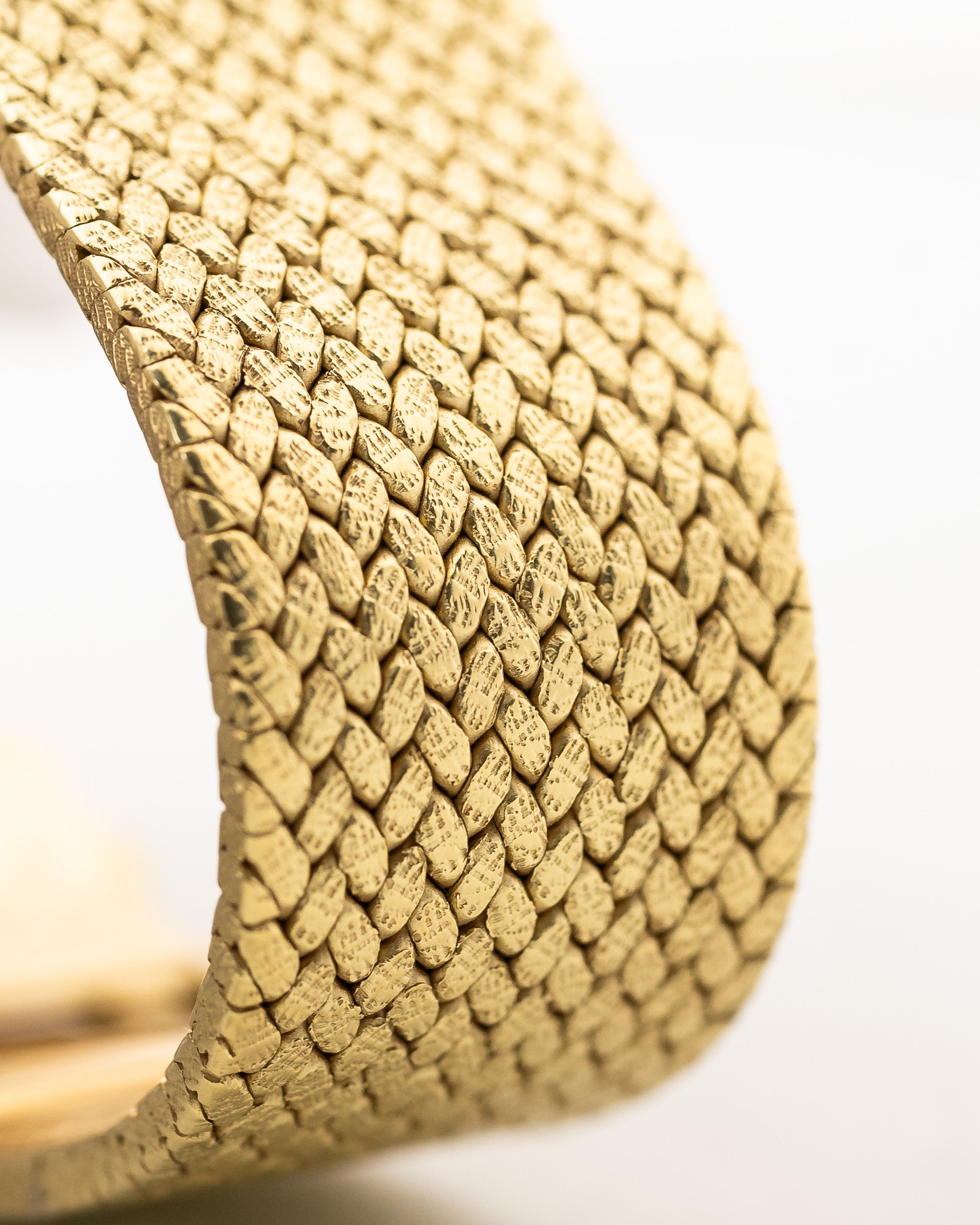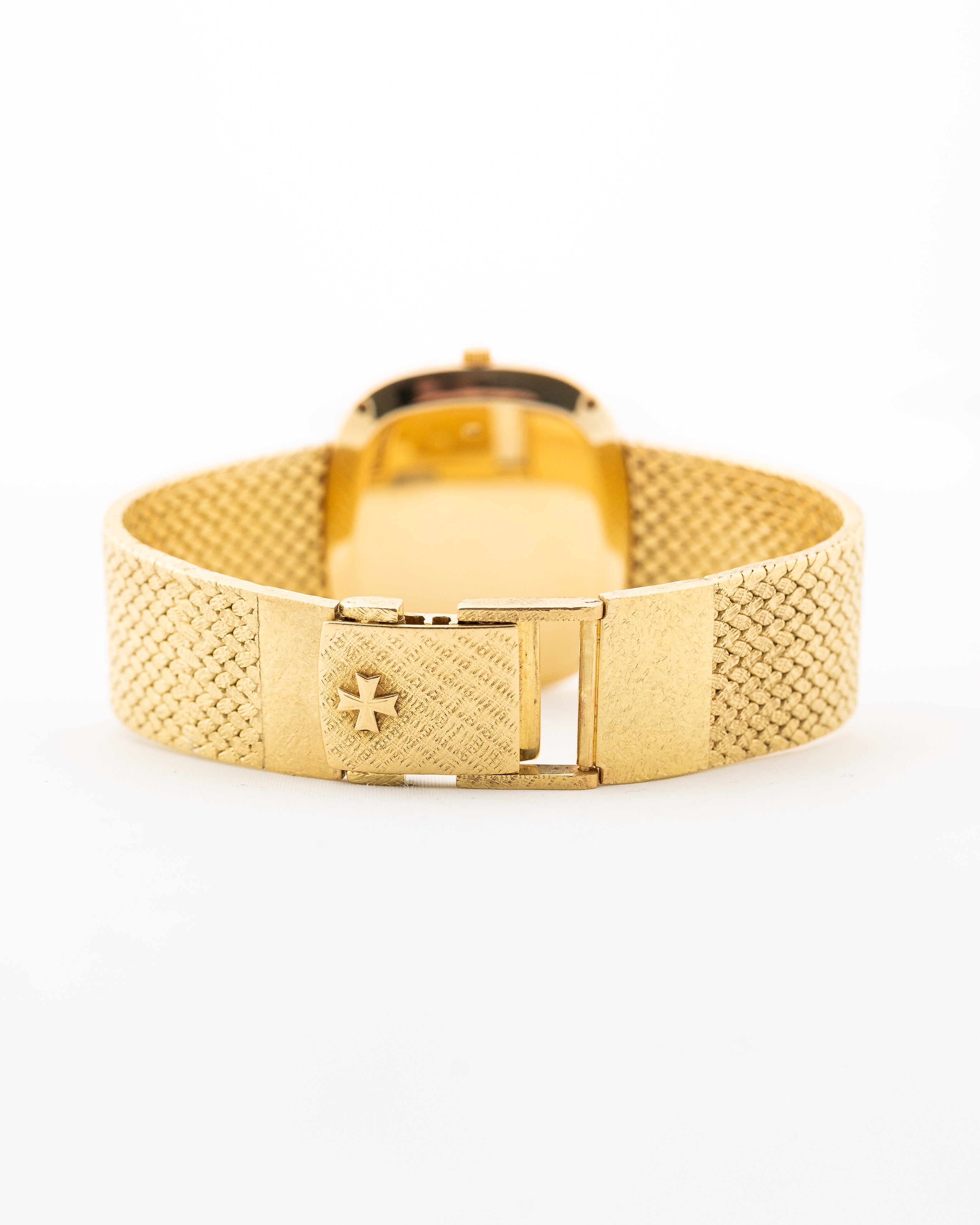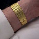 Here we have a beautifully finished hammered 18k yellow gold Vacheron Constantin dress watch from the 1970s with stunning 18k solid yellow gold woven bracelet.