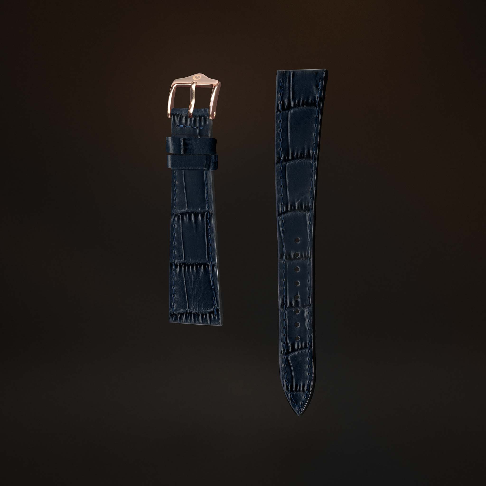 The Kardinal Alligator-embossed strap is inspired by the elegance and refined textures of the golden age of watchmaking. Each piece is made by hand, with great care and attention to detail. It has a unique character and a lively appearance — it is the perfect companion for your vintage beauty.