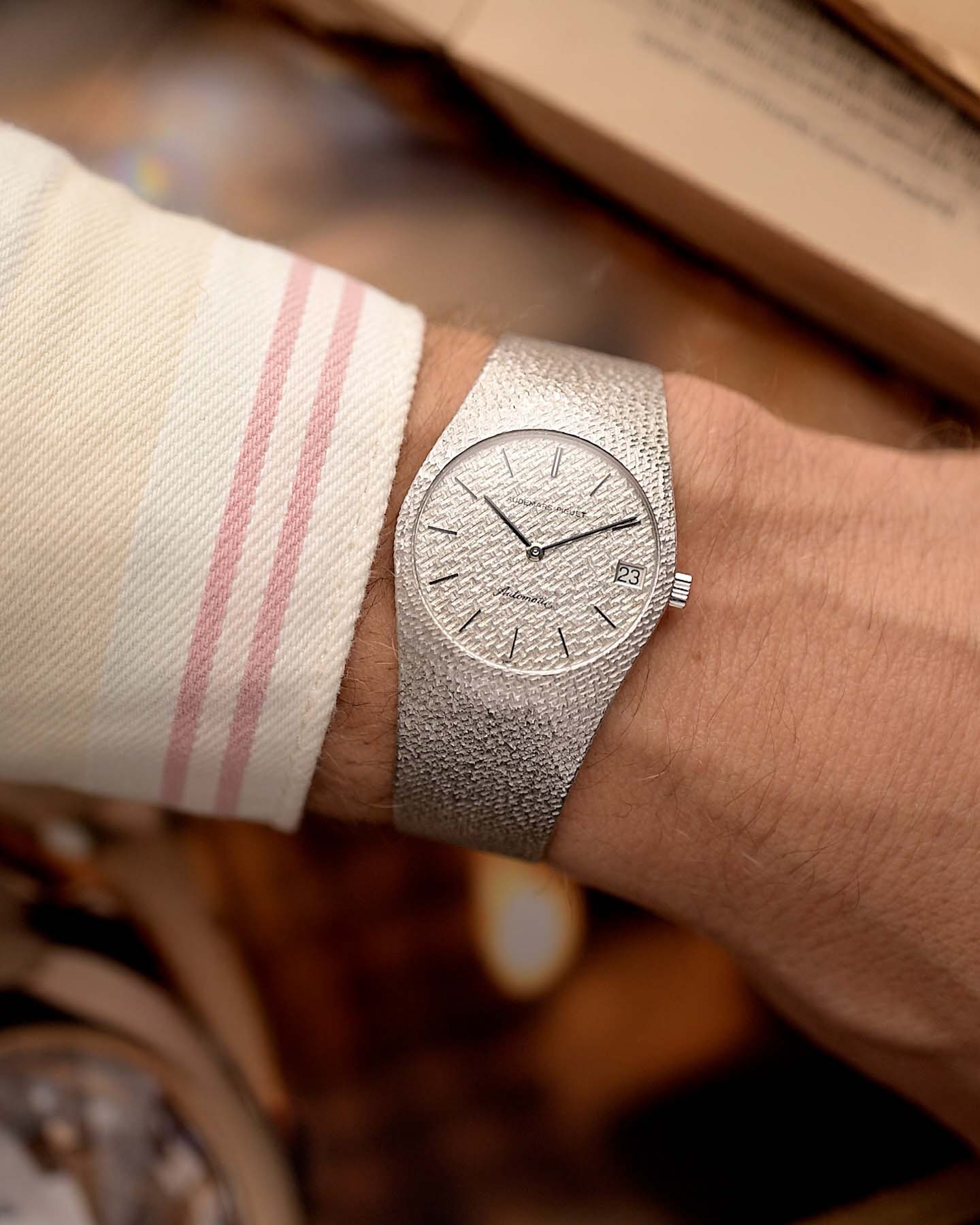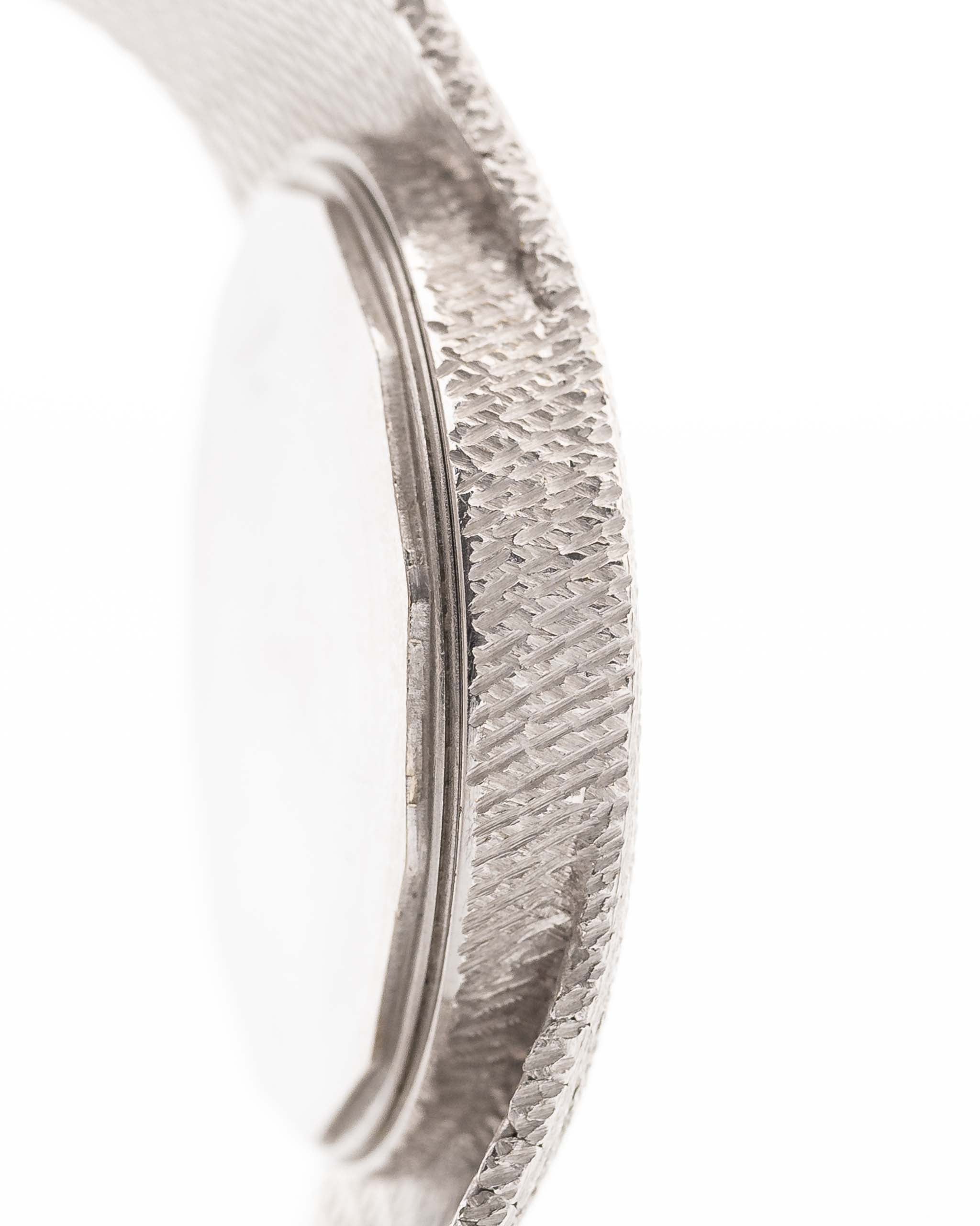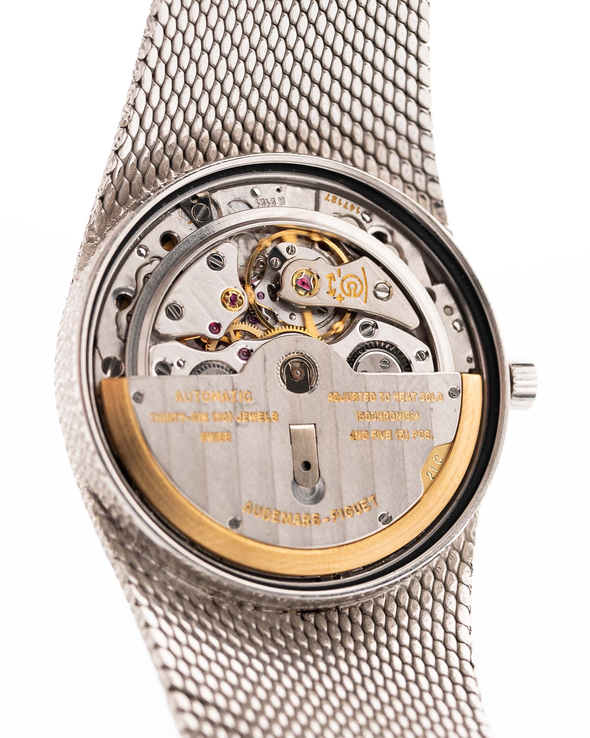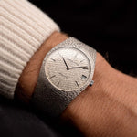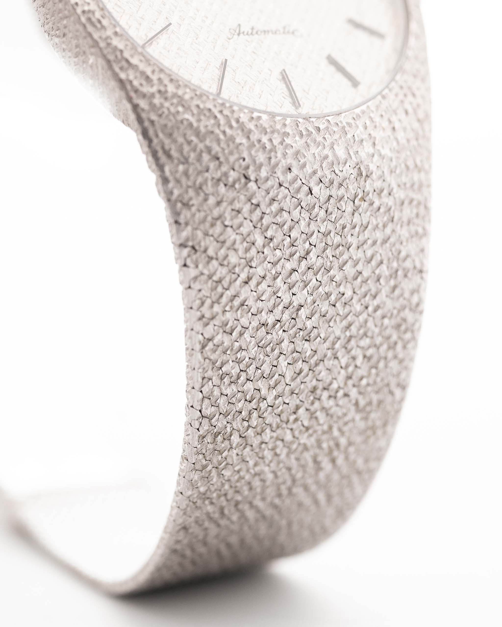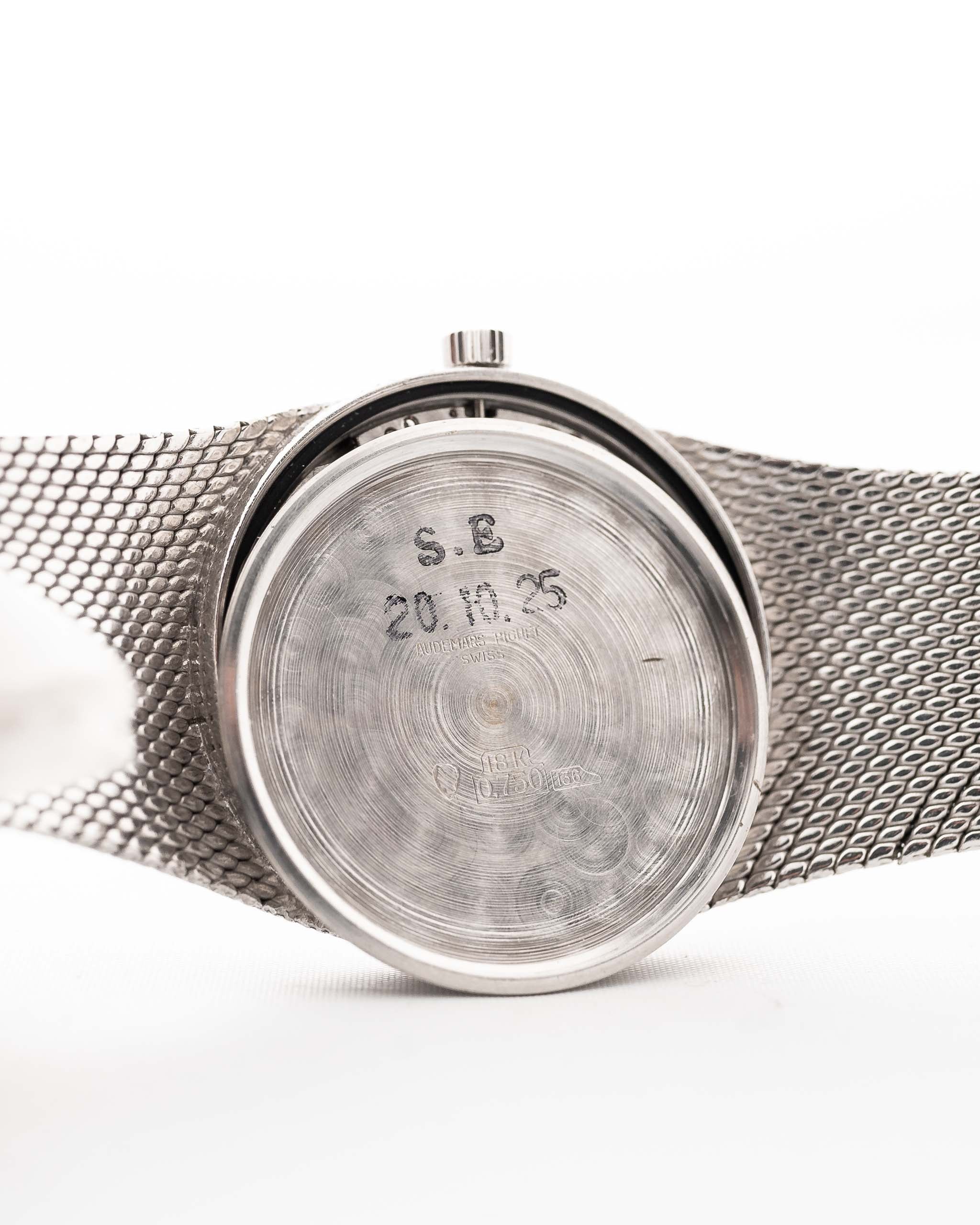 Schlank, selten und unverkennbar raffiniert - diese Audemars Piguet-Kleideruhr aus den 1970er Jahren verbindet pures Design mit bahnbrechender Uhrwerkstechnik. Gefertigt aus 18 Karat Weißgold mit integriertem Armband, verkörpert sie diskreten Luxus in seiner schönsten Form.