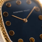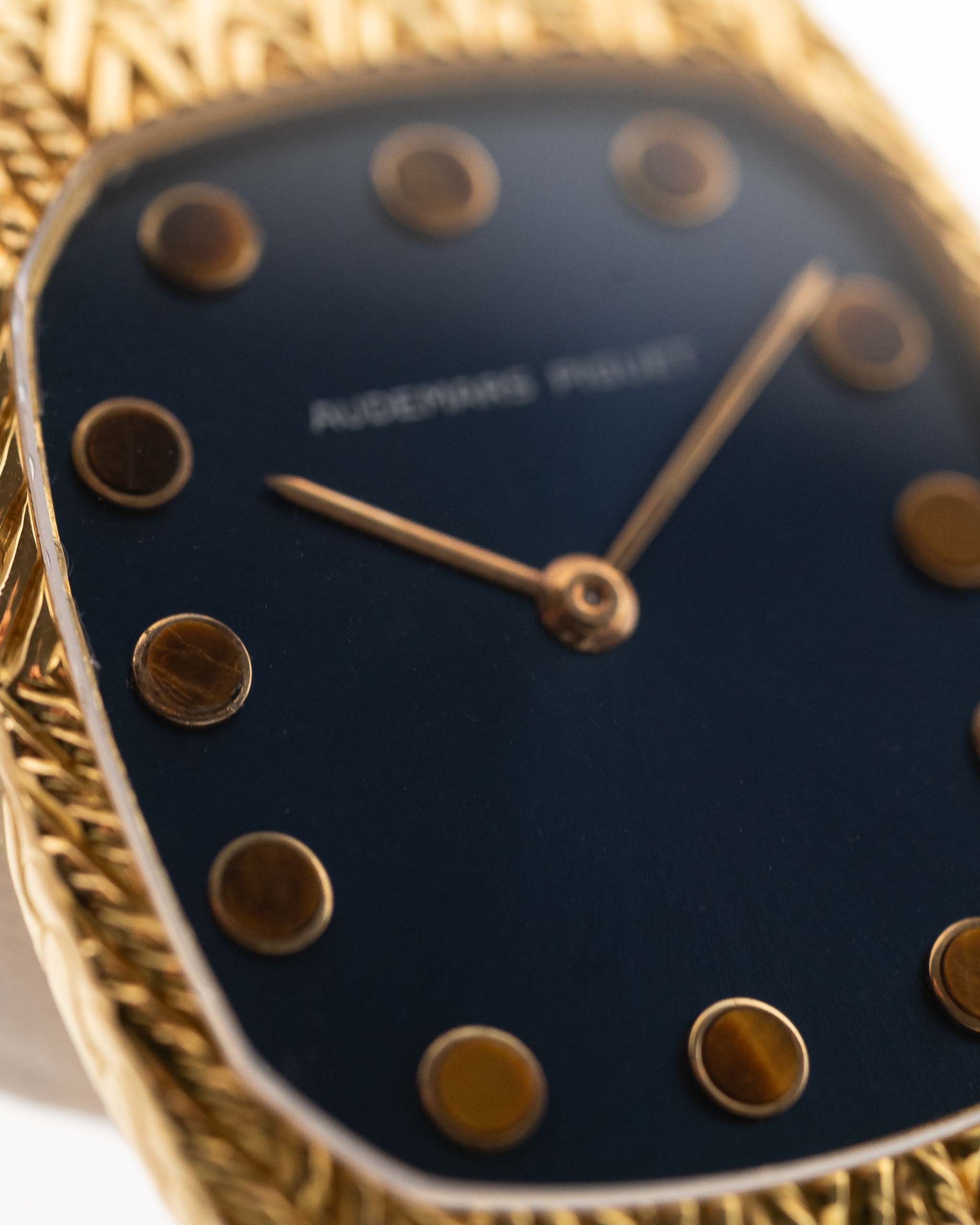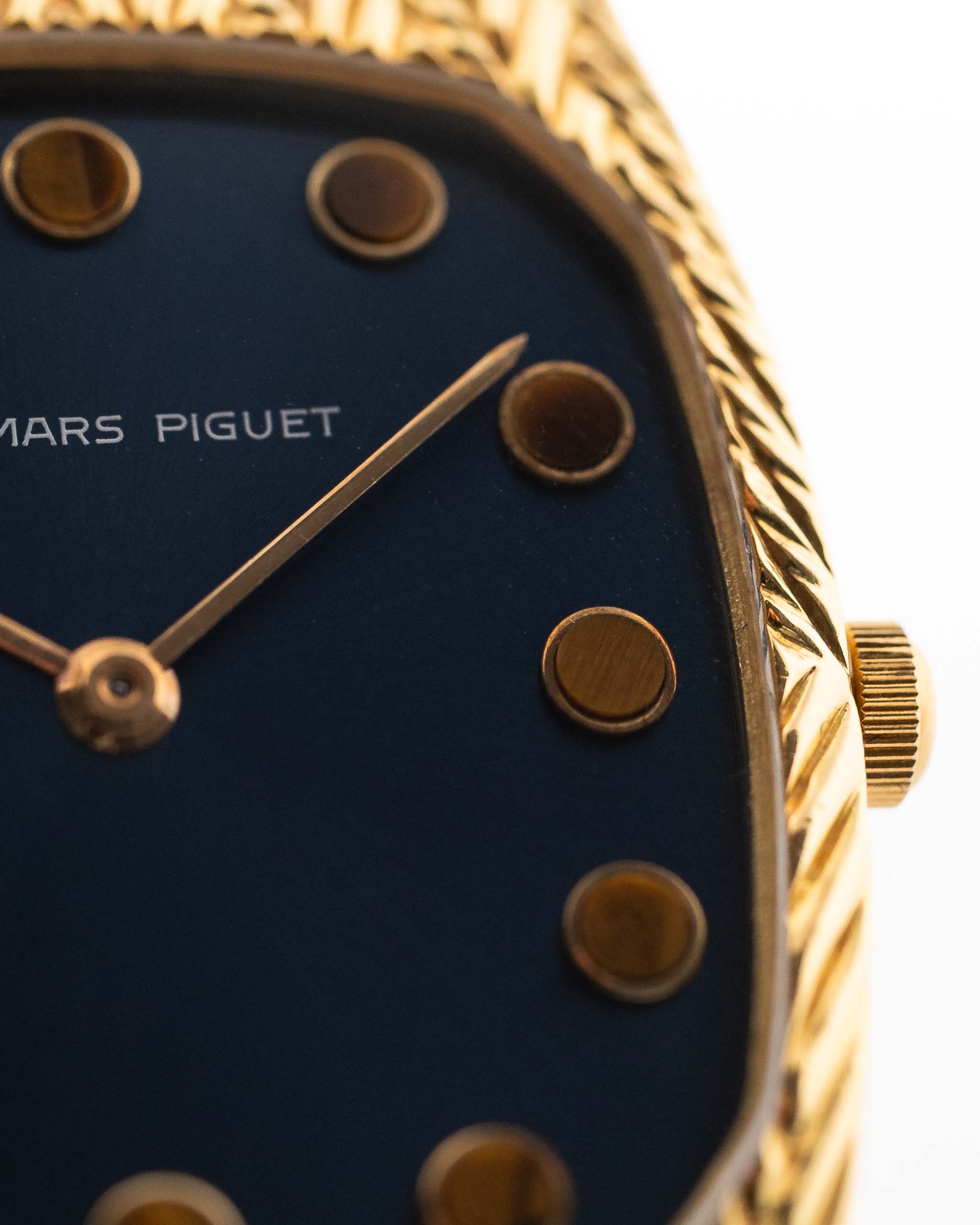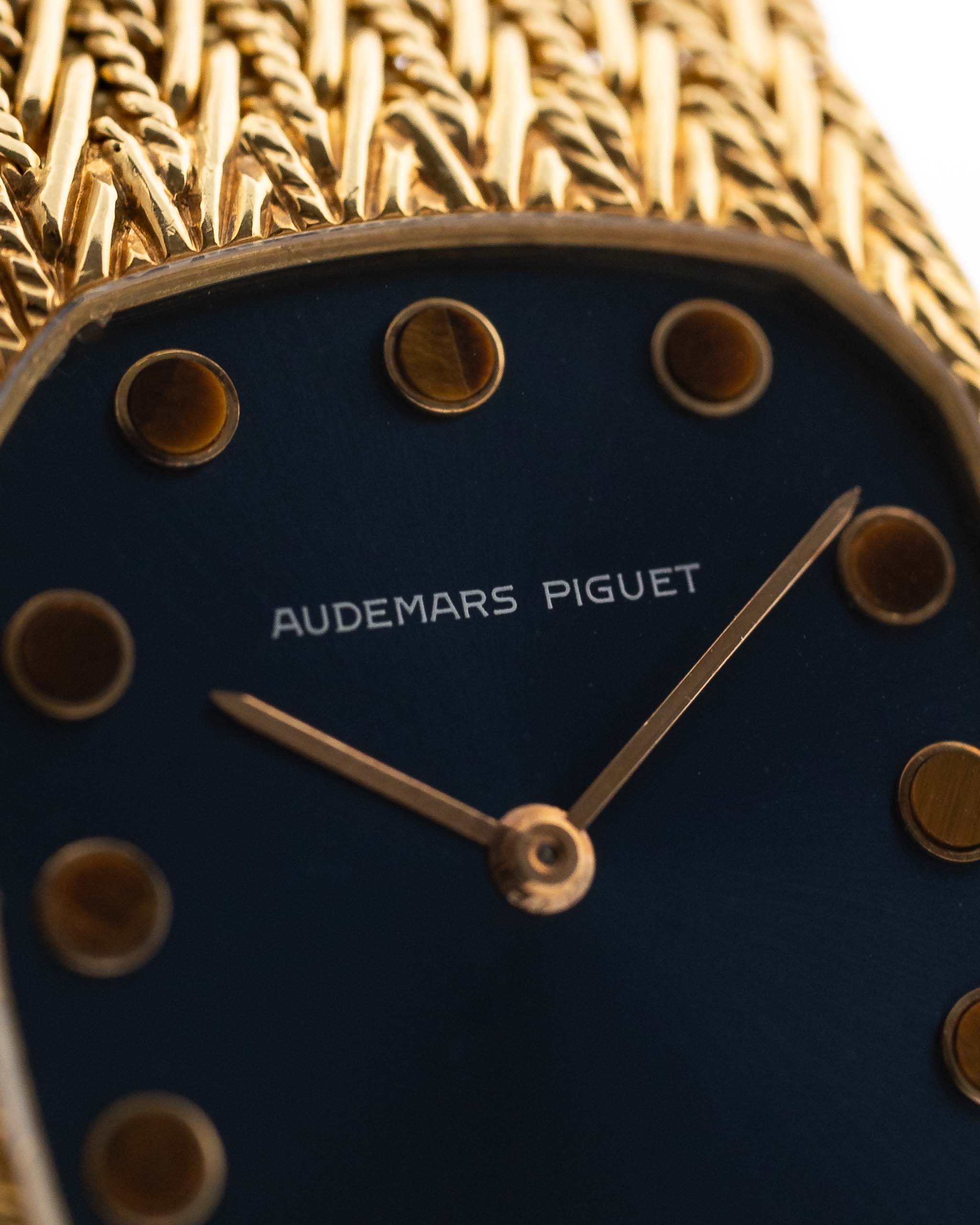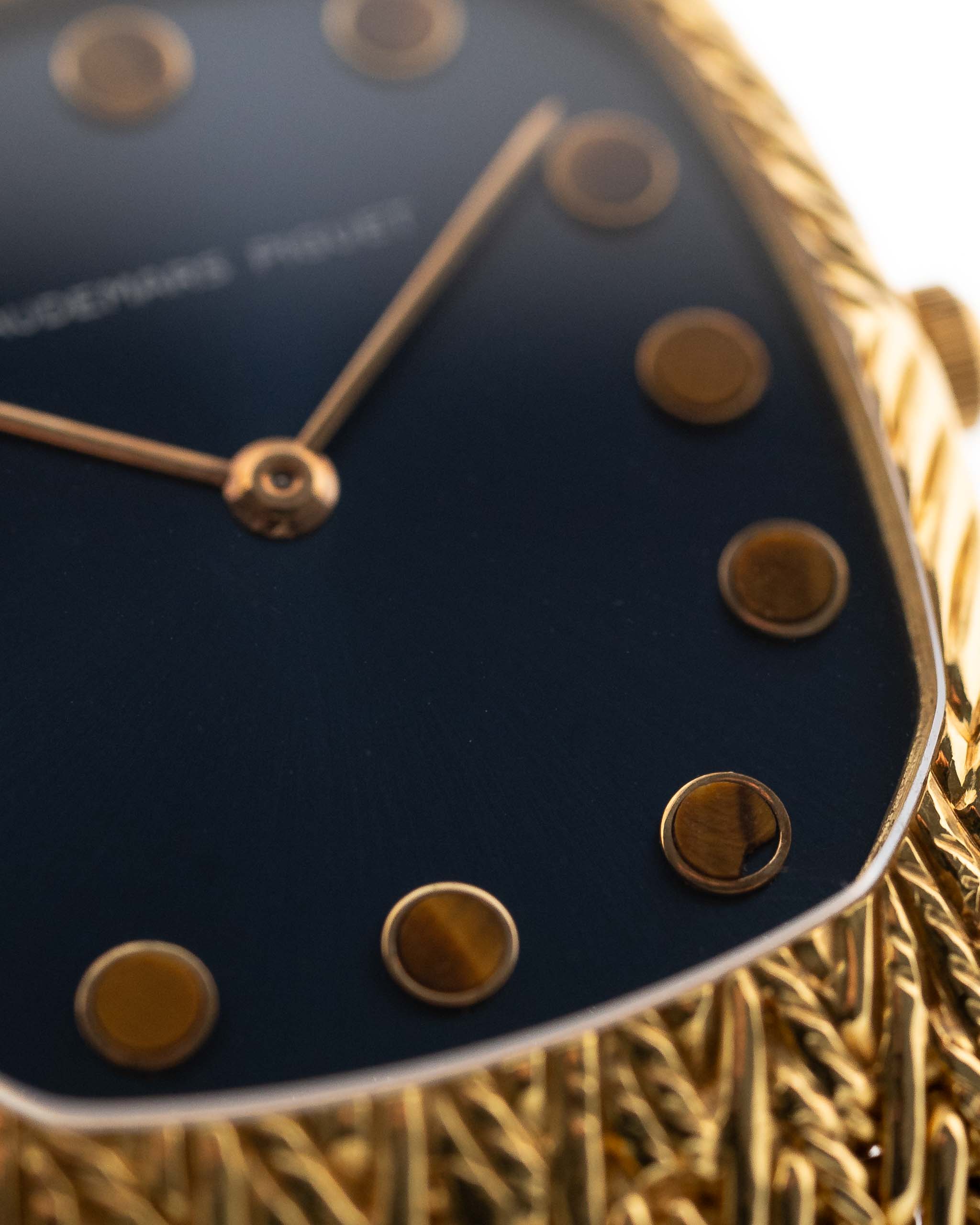 Audemars Piguet Vintage Uhren - Audemars Piguet Cobra gold Tiger Eye 1970s - blaues Sonnenschliff-Zifferblatt - geflochtenes Goldarmband